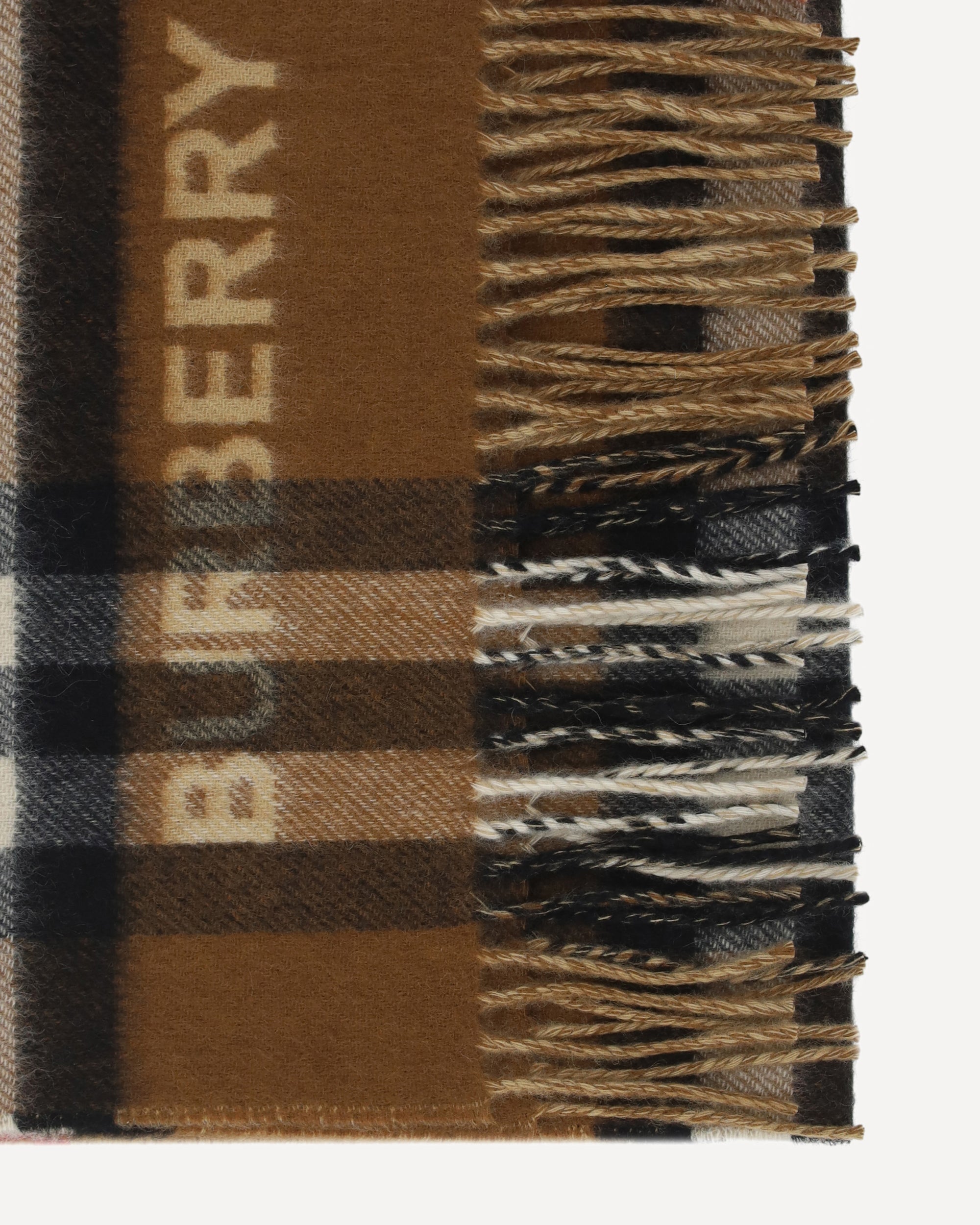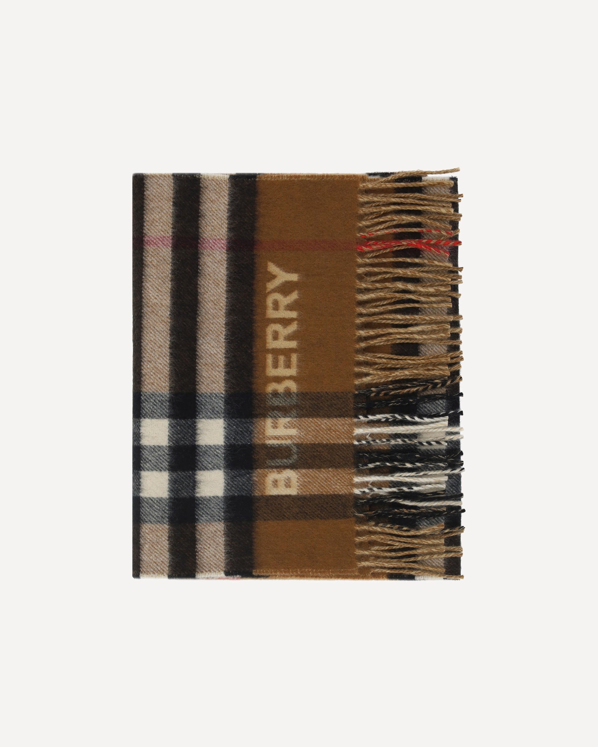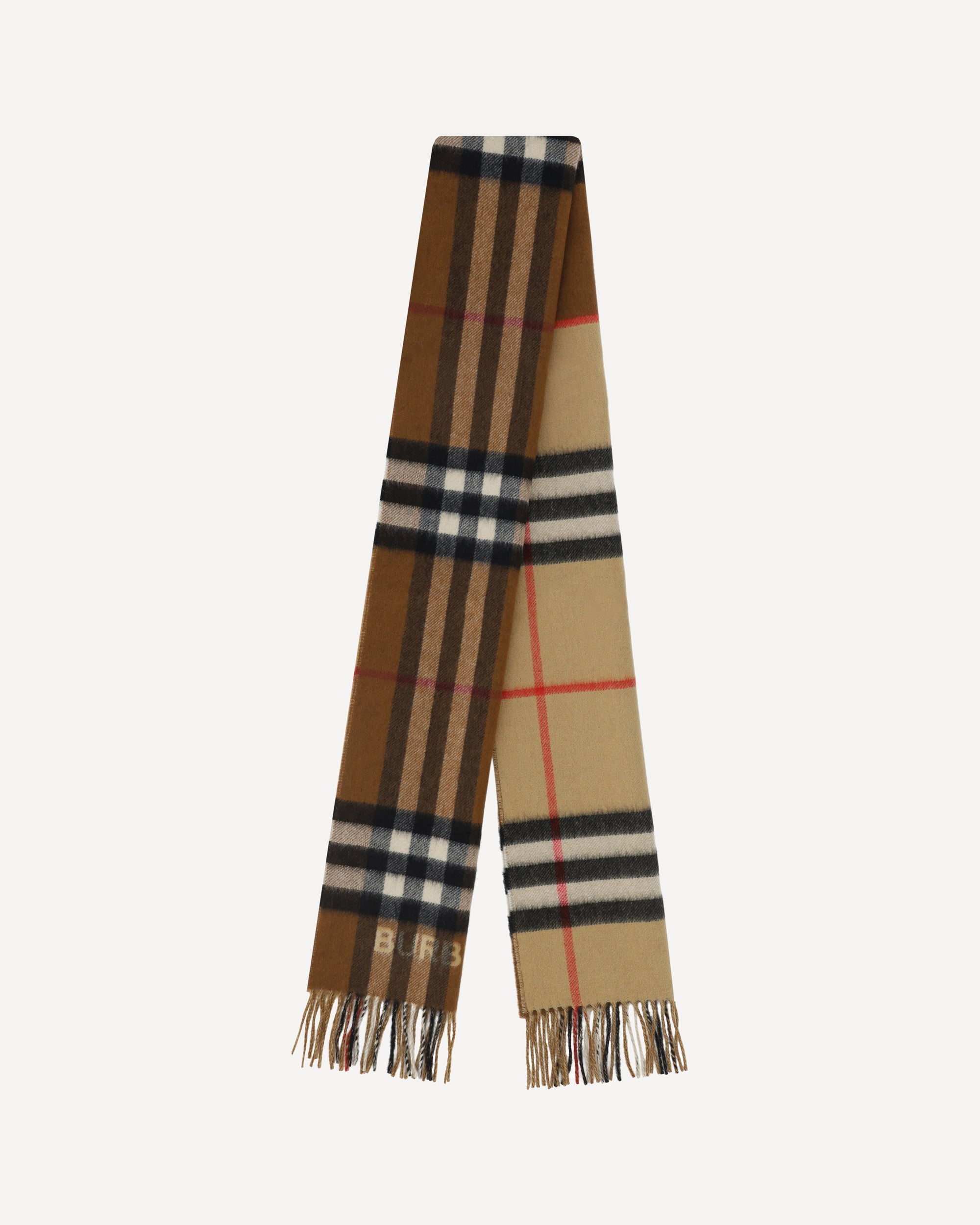 The Burberry Cashmere Scarf is embellished with the iconic Archivio Check pattern on both the front and back, a distinctive symbol of the brand. The frayed edges add a touch of natural elegance, while the contrasting embroidered monogram on the front adds a refined and recognizable detail. A perfect accessory to complete every look with warmth and class.