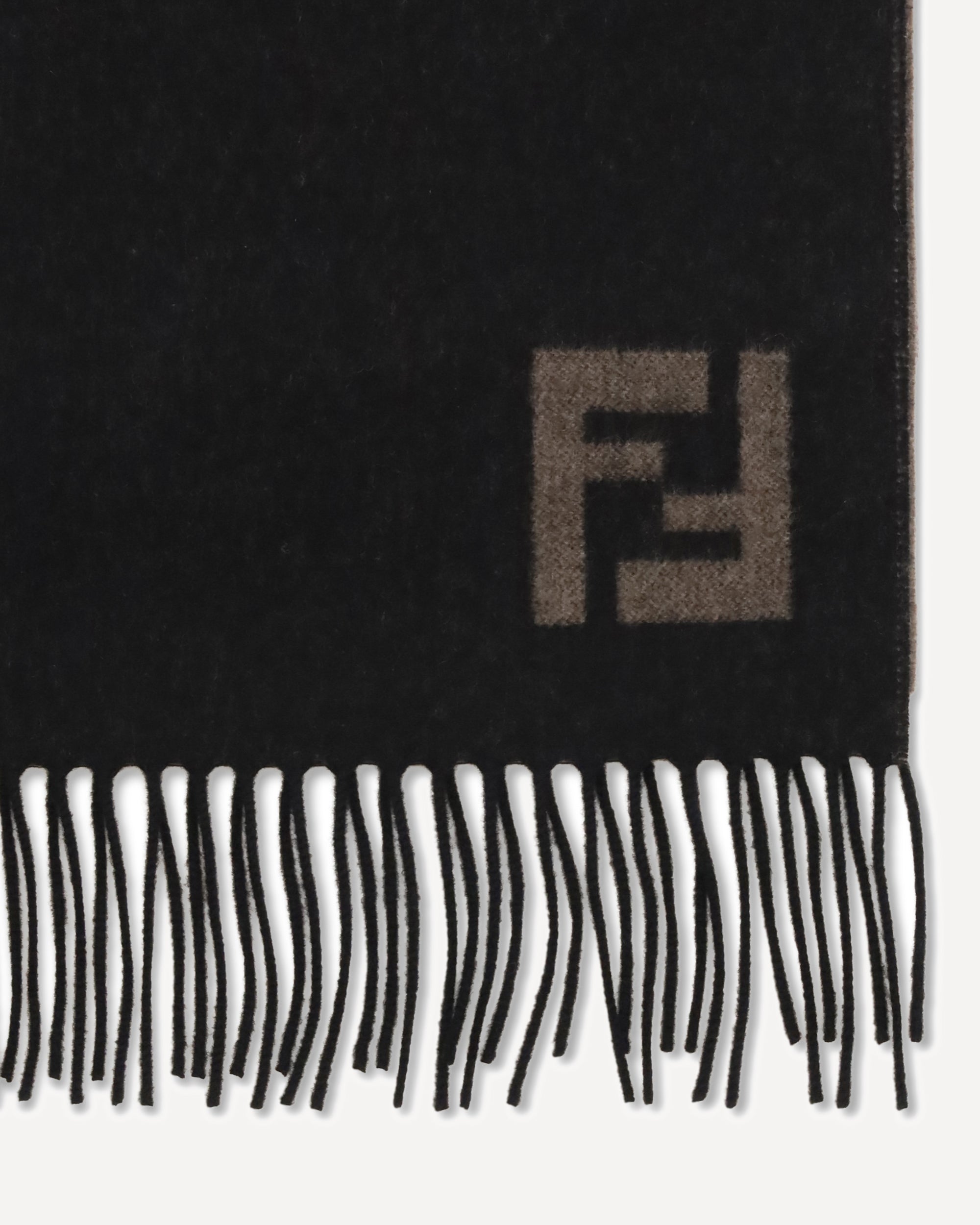 The FF wool blend Scarf by Fendi is an elegant and warm garment made from a soft blend of wool and cashmere. FF embroidery on the bottom adds a distinctive and iconic touch, while frayed ends complete the design with sophisticated detail. Perfect for adding an accent of luxury and comfort to your winter looks.