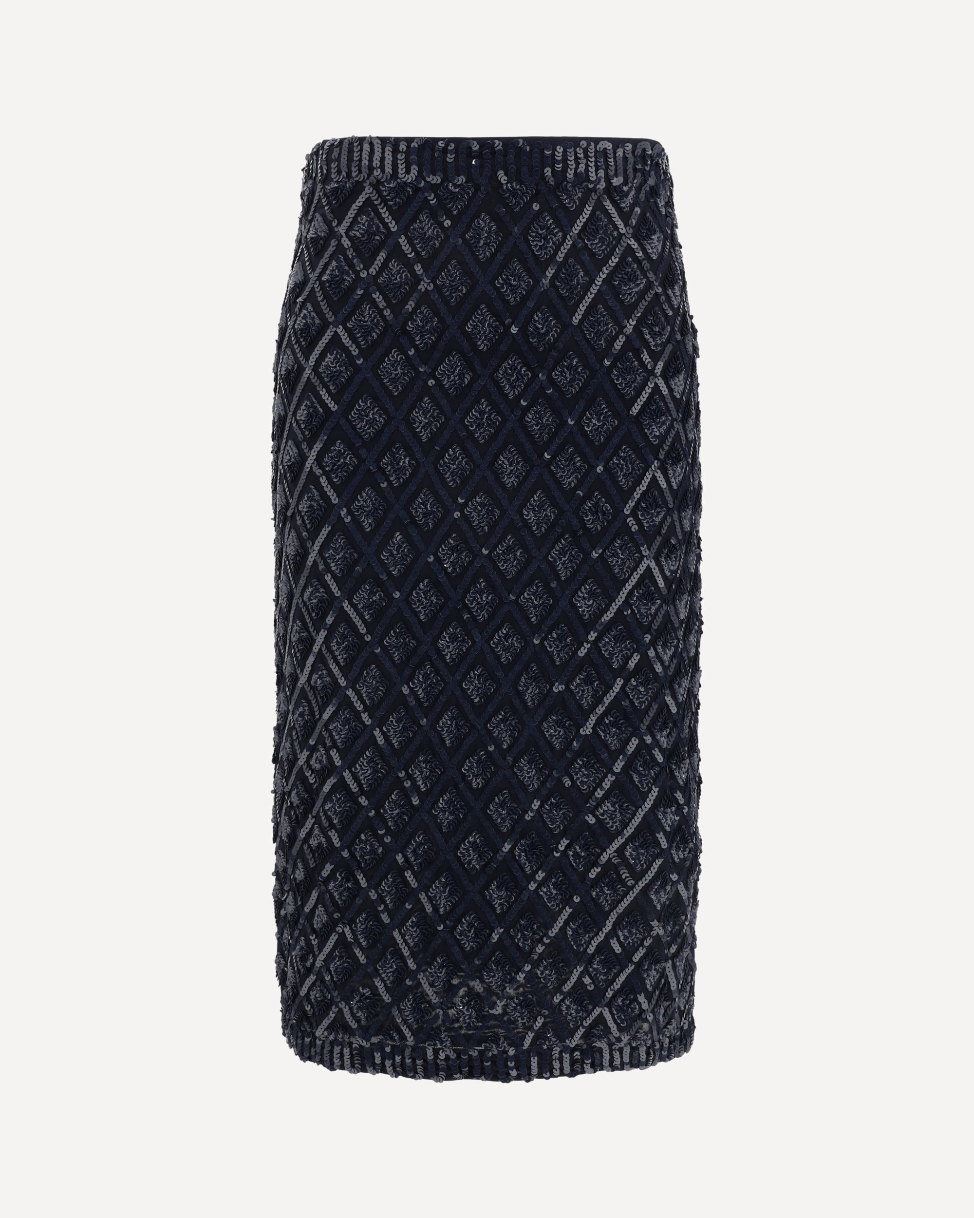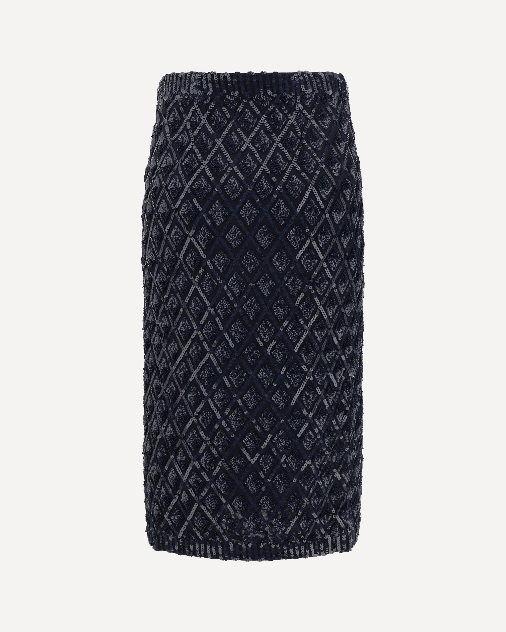 The Sequined midi Skirt by P.A.R.O.S.H. is a garment with a sparkling and sophisticated character, perfect for those looking for a glamorous look. The elasticated waistband ensures a comfortable and versatile fit, while the sequin diamond design adds a touch of originality and brightness to the model. The midi length lends understated elegance, making this skirt ideal for special events, elegant evenings or even for a bolder everyday look.