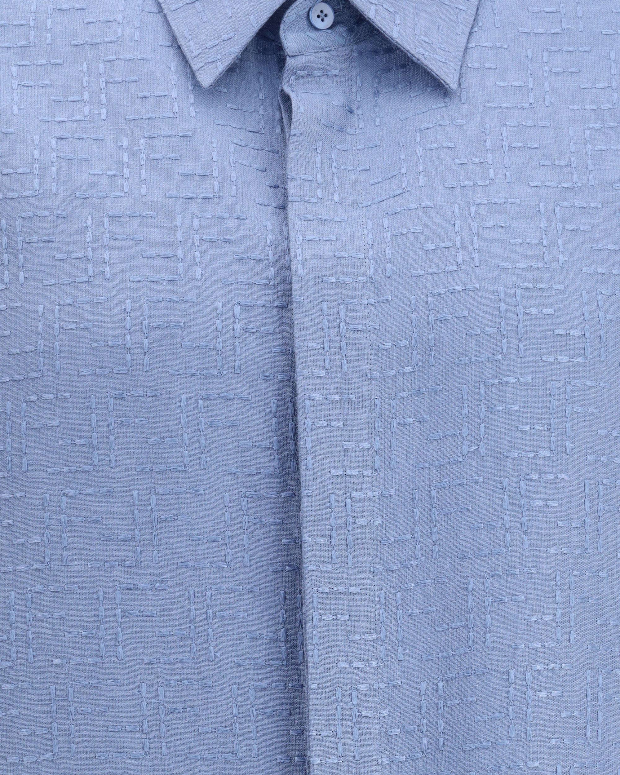 Fendi's linen Shirt is an elegant and refined garment perfect for the warm season. The short-sleeved design and classic collar lend a classic touch, while the front closure with hidden buttons adds an element of discretion and modernity. The two side slits ensure comfort and freedom of movement, while the iconic FF logo embroidered tone-on-tone on the linen fabric expresses Fendi's distinctive elegance without being too obvious.