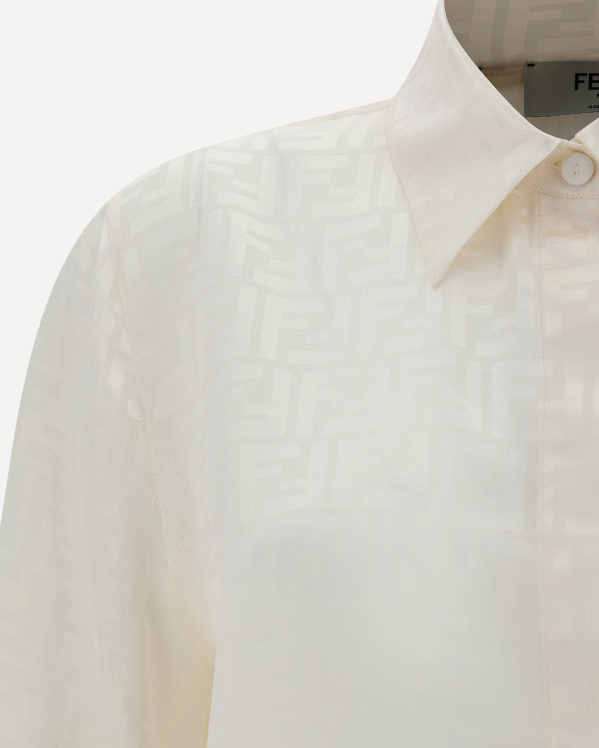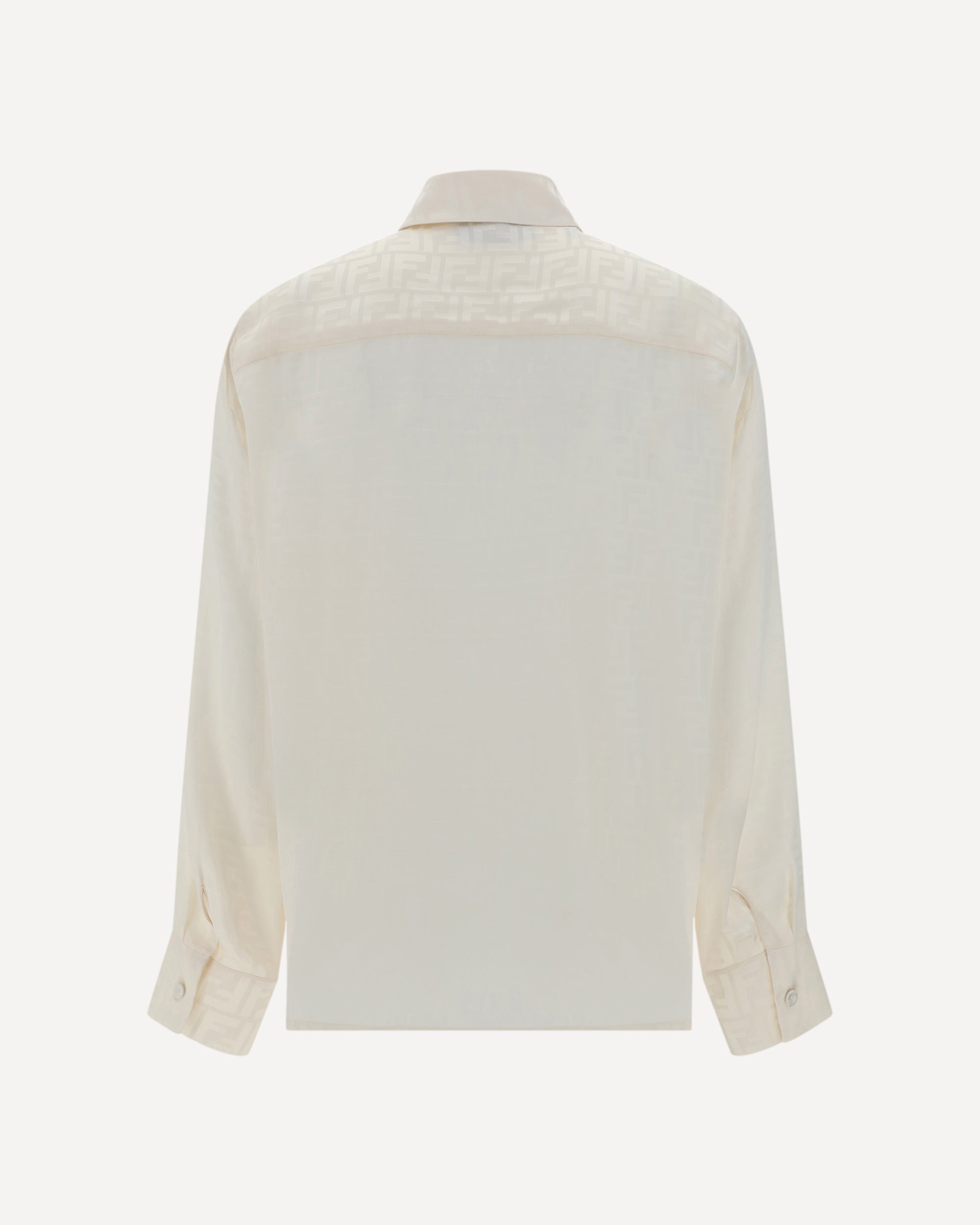 Silk Shirt by Fendi, featuring classic collar, concealed front button closure, adjustable button cuffs, all-over FF brand iconic logo pattern, regular fit.