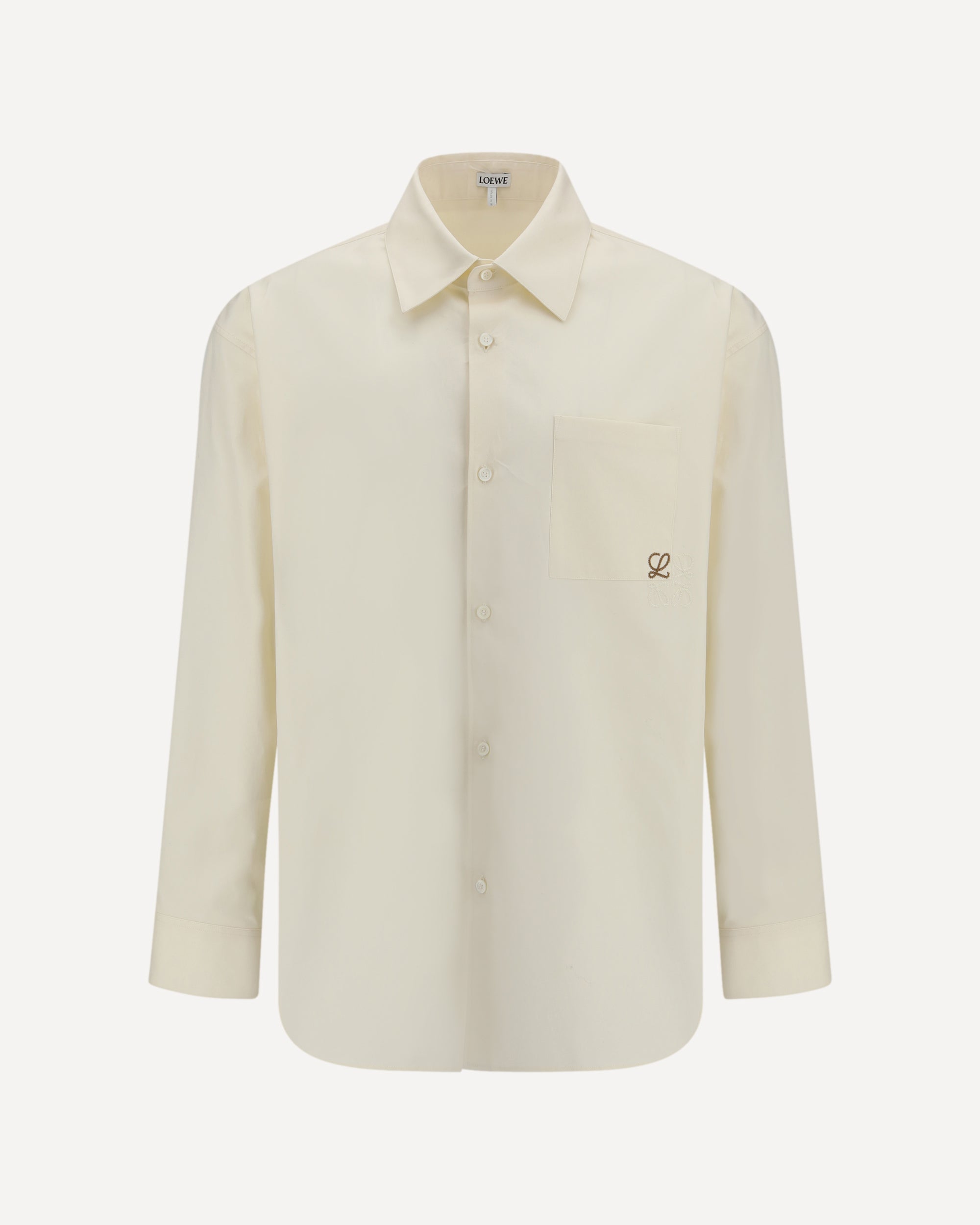 The Cotton Shirt by Loewe is crafted from woven cotton and features long sleeves, a chest pocket adorned with an embroidered Anagram logo, and a front button closure. Its relaxed fit and refined construction make it a timeless wardrobe essential.