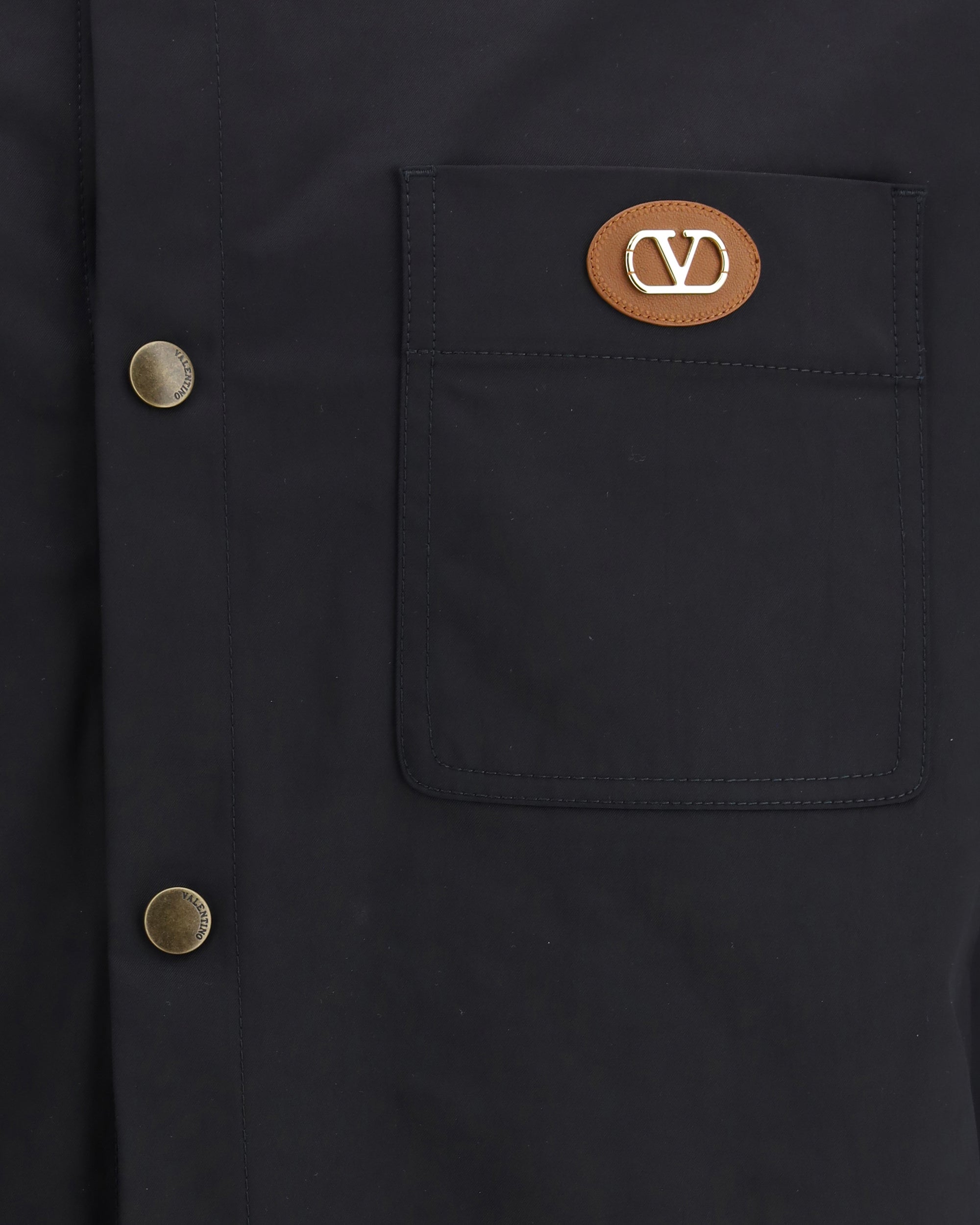 The Valentino Garavani Jacket is a sleek and contemporary shirt style. It features a classic collar and a snap-button front closure, adding a practical and refined touch. On the front, a welt pocket with applied VLogo plaque highlights the brand, while two side welt pockets offer functionality. Adjustable button cuffs allow you to customize the fit, while the monochrome pattern lends an understated and versatile design. A sophisticated garment that combines elegance and comfort.