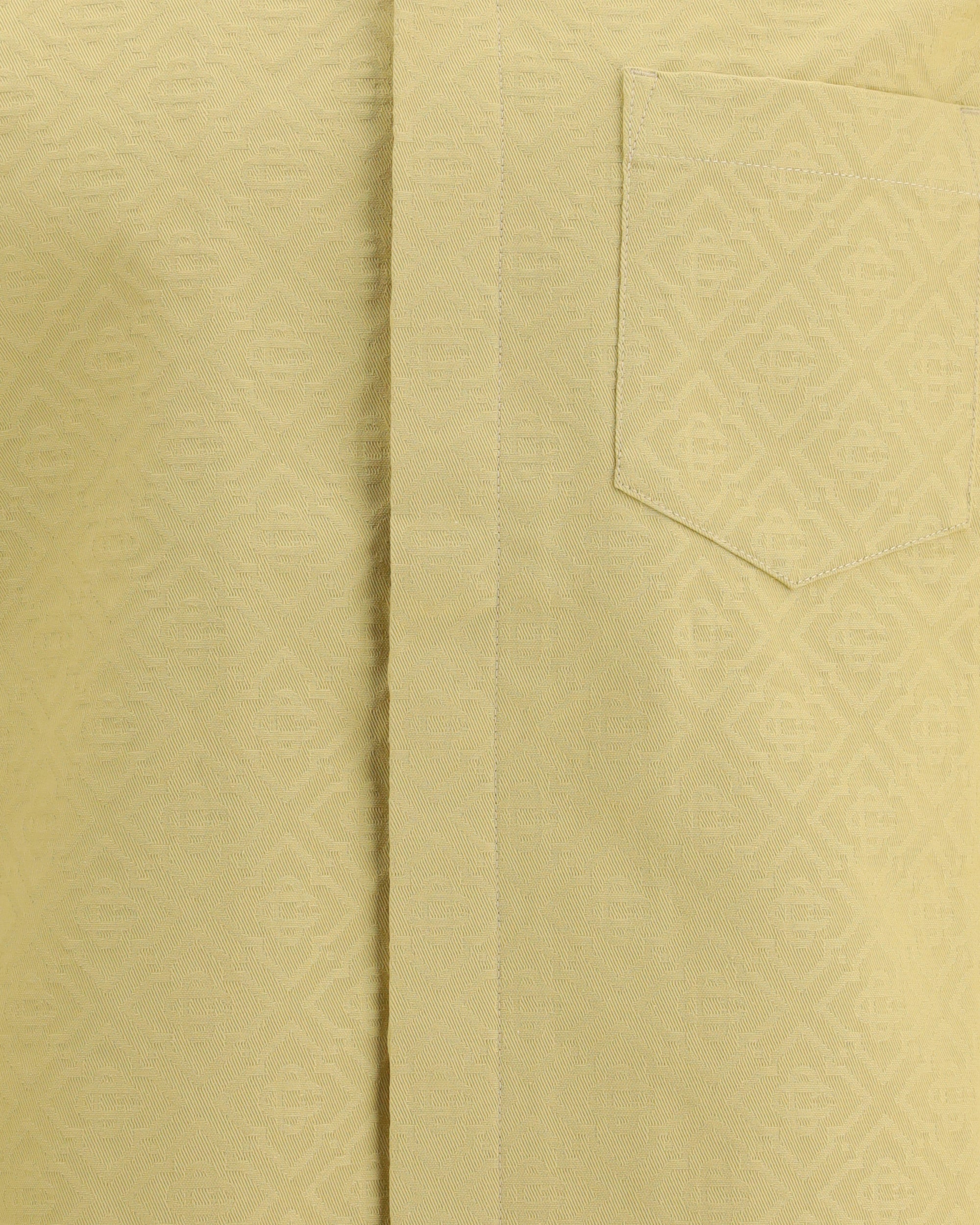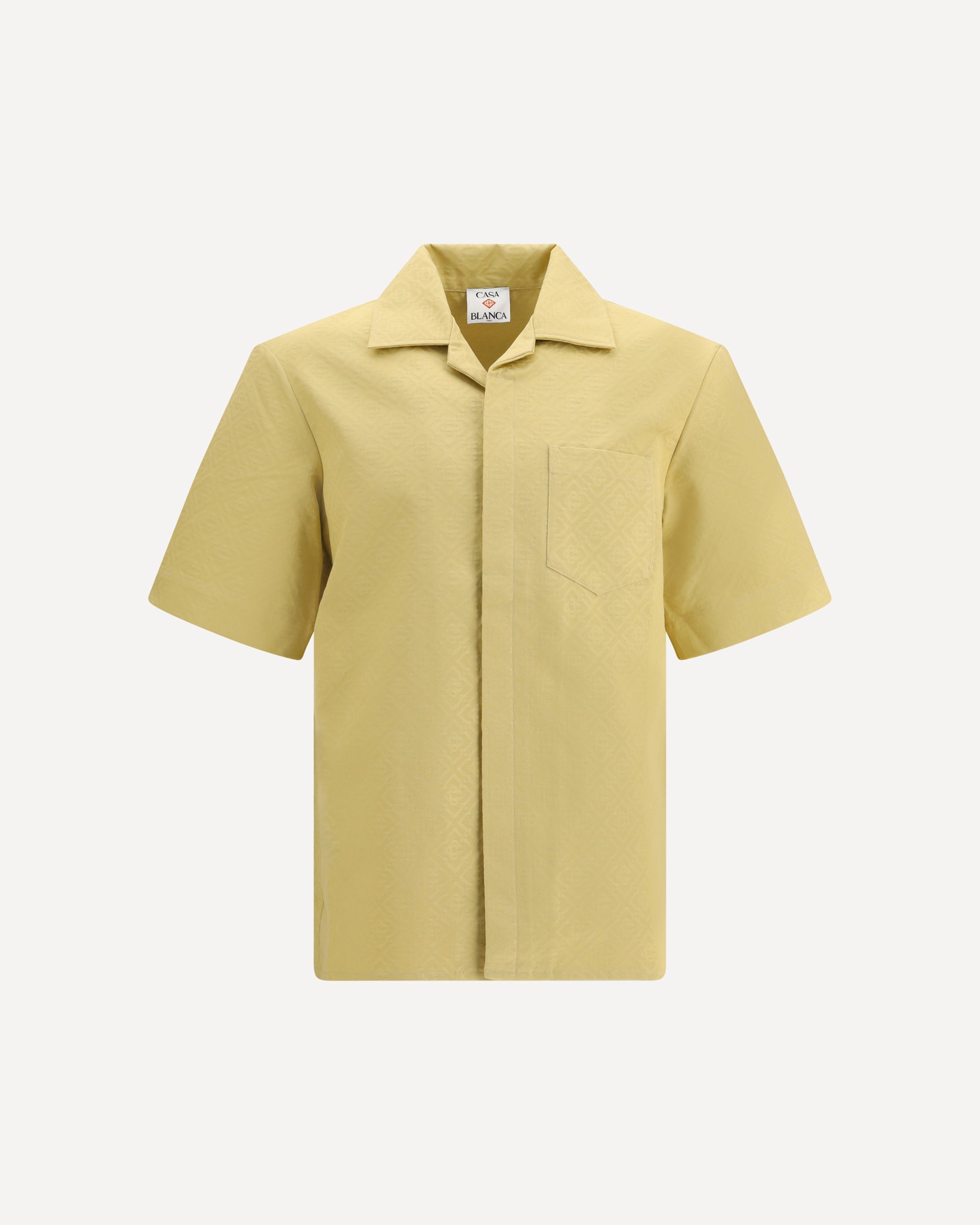 Casablanca's Short Sleeve Shirt is a garment that combines sophistication with a relaxed spirit. Made of fine cotton jacquard fabric, it stands out for its refined texture and lightweight design, perfect for the warm season. The classic cut with short sleeves is complemented by an applique breast pocket, a functional detail that adds a touch of casual elegance. Ideal for polished yet casual summer looks, it perfectly represents the brand's refined and contemporary aesthetic.
