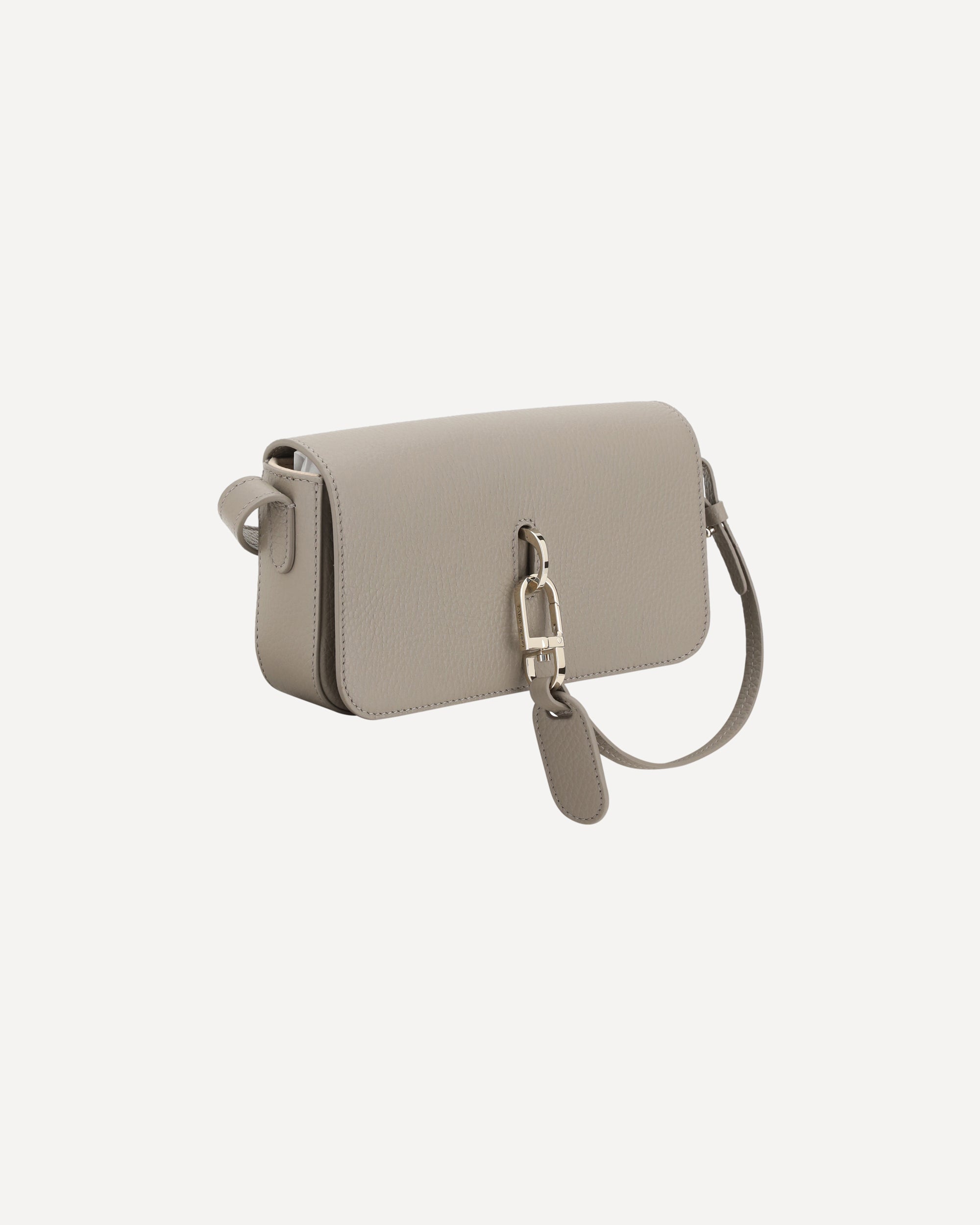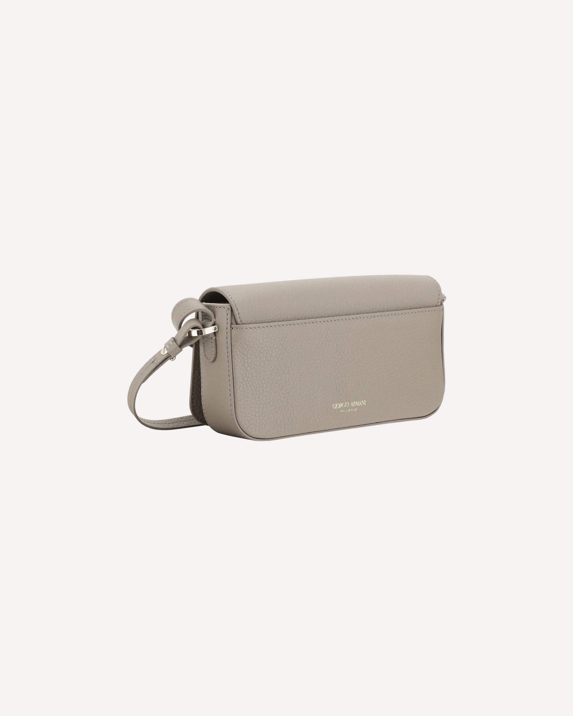 Giorgio Armani's leather Shoulder Bag combines elegance and functionality in a refined design. Made of grained leather, it features an adjustable shoulder strap for comfort and versatility. The front flap and snap hook closure adds a sophisticated and secure touch. The single interior compartment offers essential space for everyday items, while the back features the iconic press-stamped monogram, a discreet yet distinctive detail. Perfect for an elegant and timeless look.