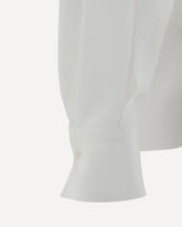 Brunello Cucinelli's silk Blouse is an elegant and sophisticated piece, featuring a front neckline embellished with the iconic detail of appliquéd shiny jewels, which add a touch of understated luxury. Adjustable button cuffs offer a customized fit, while side slits lend movement and lightness to the garment. The oversized fit makes the blouse comfortable and modern, perfect for an elegant yet relaxed look, ideal for special occasions or a refined everyday outfit.