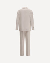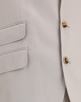 The Brunello Cucinelli Silk Suit consists of a blazer jacket and classic pants, ideal for an elegant and refined look. The blazer jacket has a single-breasted front button closure, three welt pockets with an applique flap on the front and a slit pocket, while the classic lapels add a touch of sophistication. The classically cut pants feature a front zipper and button closure, two side slash pockets and two welt pockets on the back. The waistband has belt loops, allowing you to customize the fit.