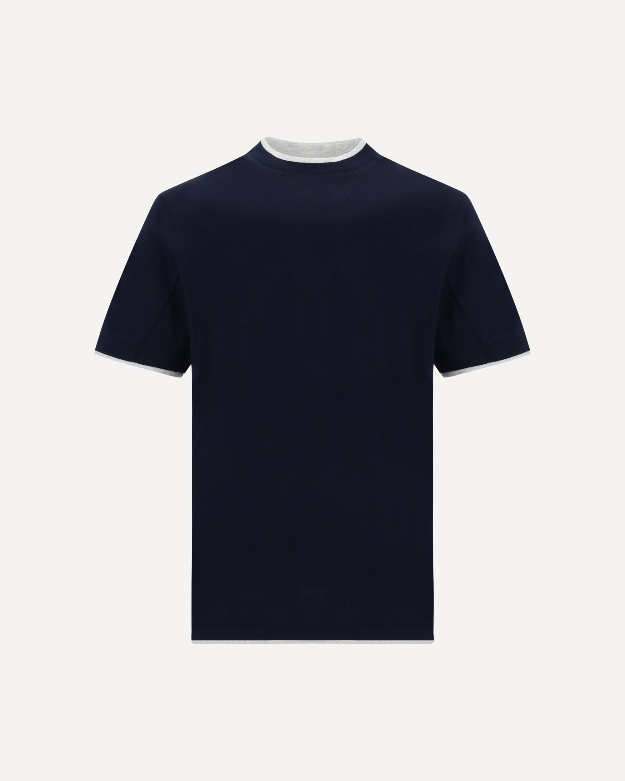 Brunello Cucinelli's silk T-Shirt features a two-tone double-layer design with a monochrome pattern. The regular fit ensures comfort, while the silk adds a touch of luxury. Perfect for an elegant and sophisticated look, suitable for both formal and casual occasions.