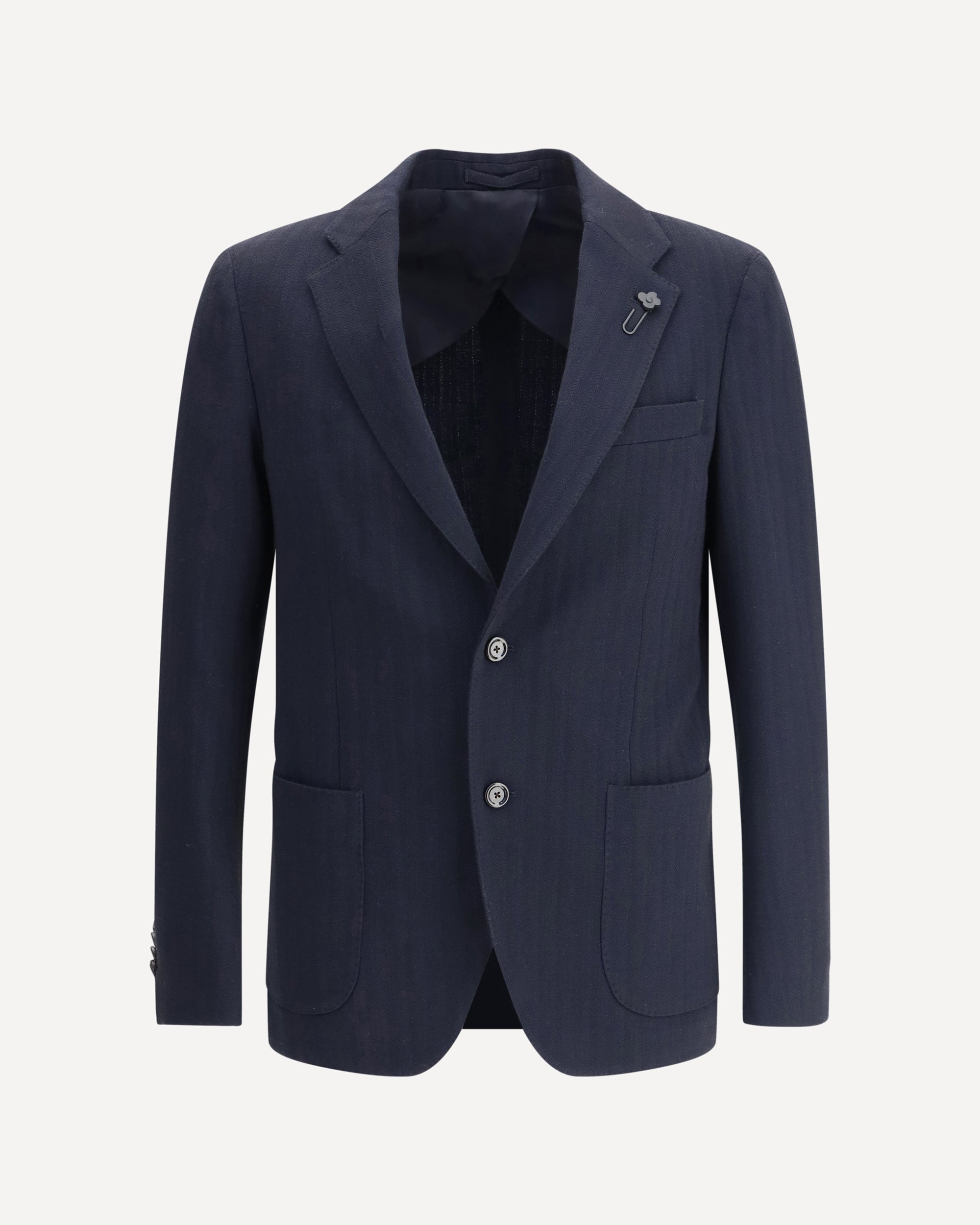 Lardini's single-breasted Blazer is a timeless garment, a symbol of elegance and sartorial mastery. The classic lapels lend a sophisticated line, while the front button closure keeps the look clean and refined. The two front patch pockets and welt pocket are practical yet elegant, adding a functional touch to the design. The iconic flower brooch appliqué on the lapel is the distinctive detail that makes this blazer a true style piece, a nod to Lardini's famous craftsmanship that does not go unnoticed. Perfect for those seeking a sleek and modern look, this blazer is ideal for both formal occasions and sophisticated daytime outfits.