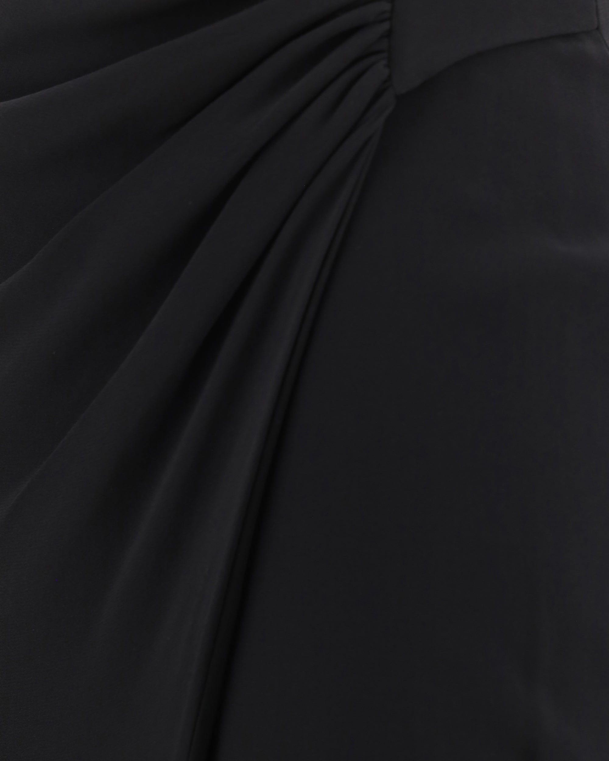 The Silk Skirt from The Andamane is an elegant and sophisticated piece featuring a wrap design that gives movement and fluidity. The zipper closure on the back panel ensures practicality, while the ruching effect detail on the front panel adds a feminine and sophisticated touch. The monochrome pattern lends an understated and versatile look, while the regular fit ensures comfort and a refined silhouette.