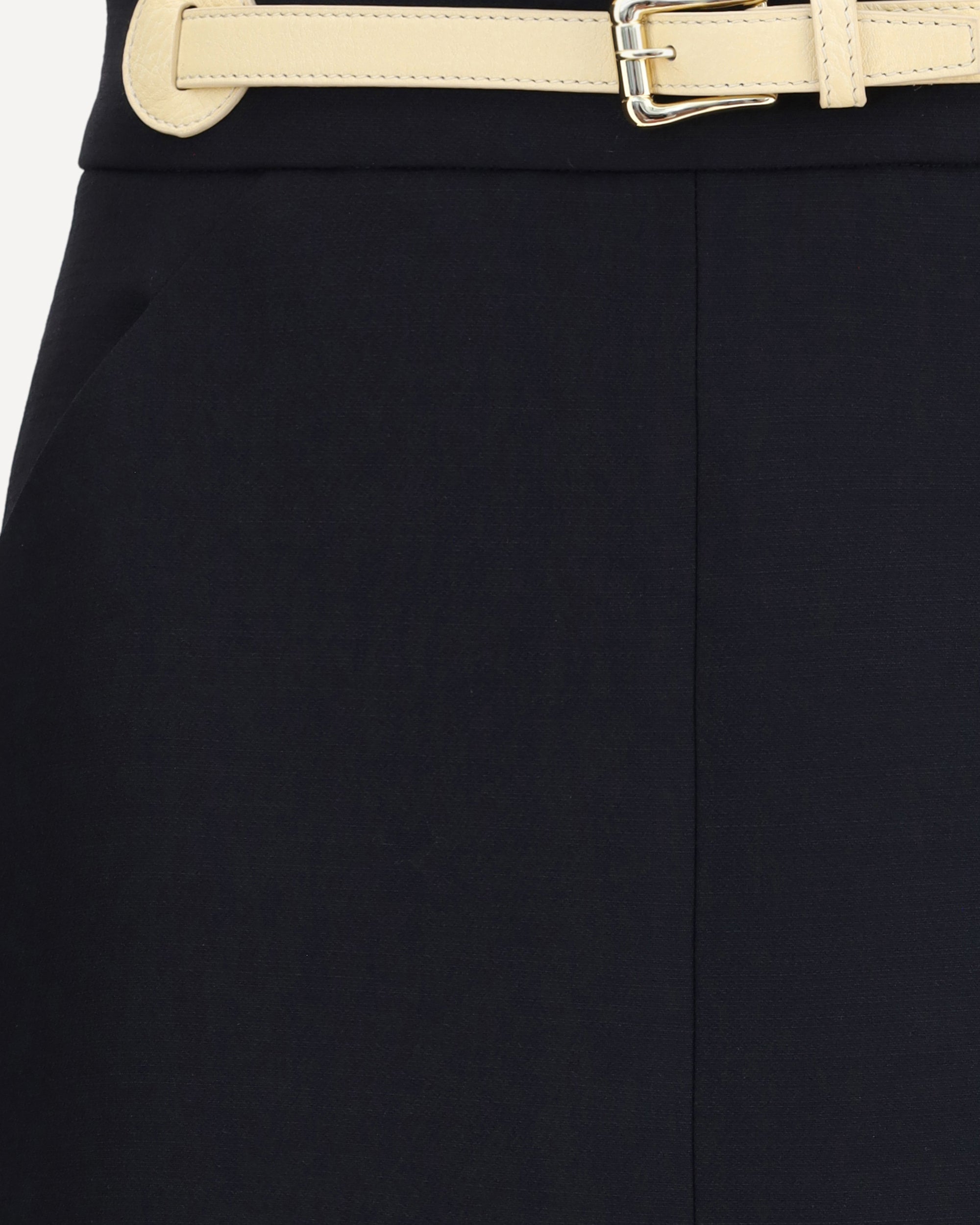 Valentino's midi Skirt combines elegance and functionality in a refined design. Featuring a back zipper closure, it has two side welt pockets and a built-in leather belt that enhances the waist. The front slit adds a feminine and contemporary detail, perfect for a sophisticated and versatile style.