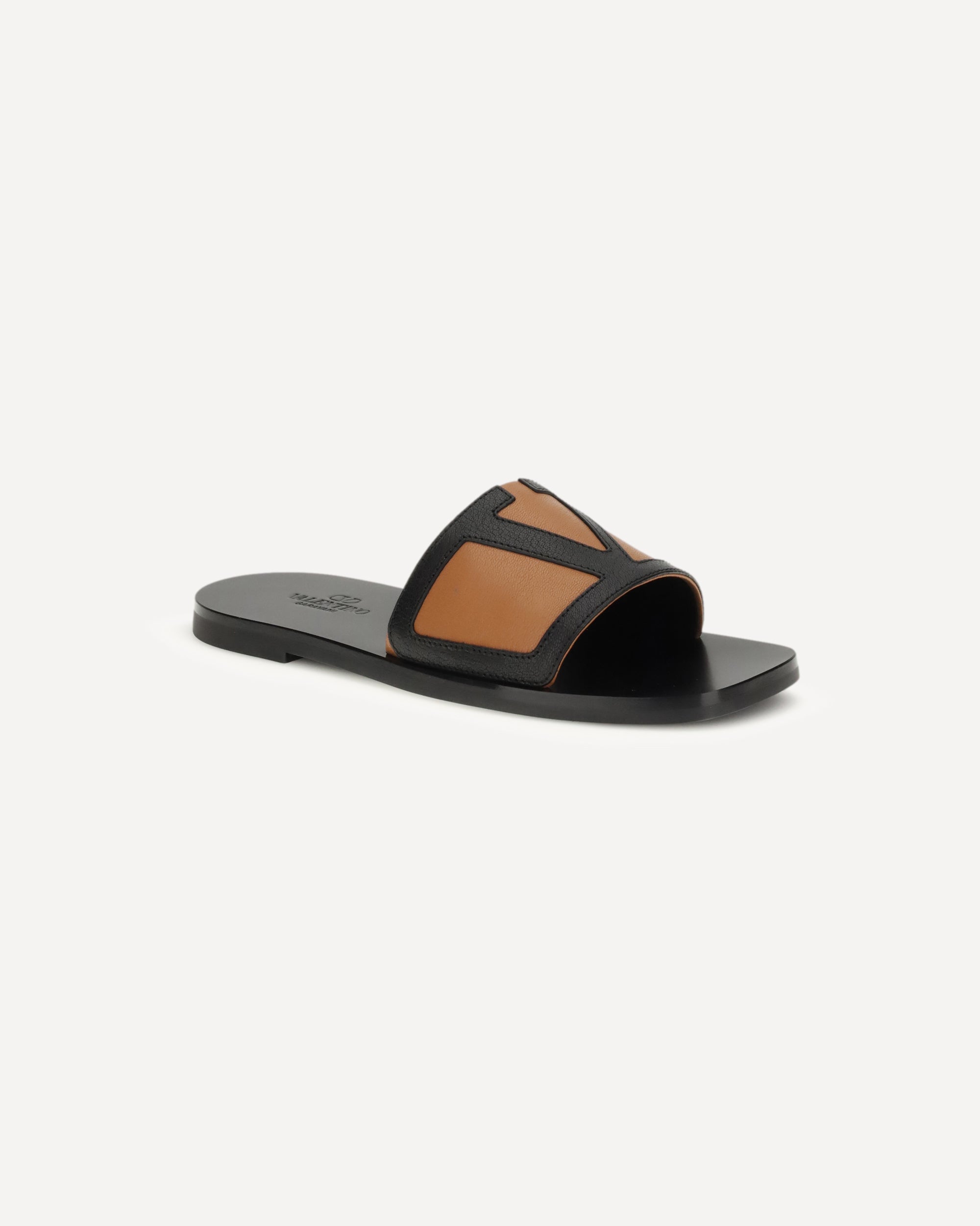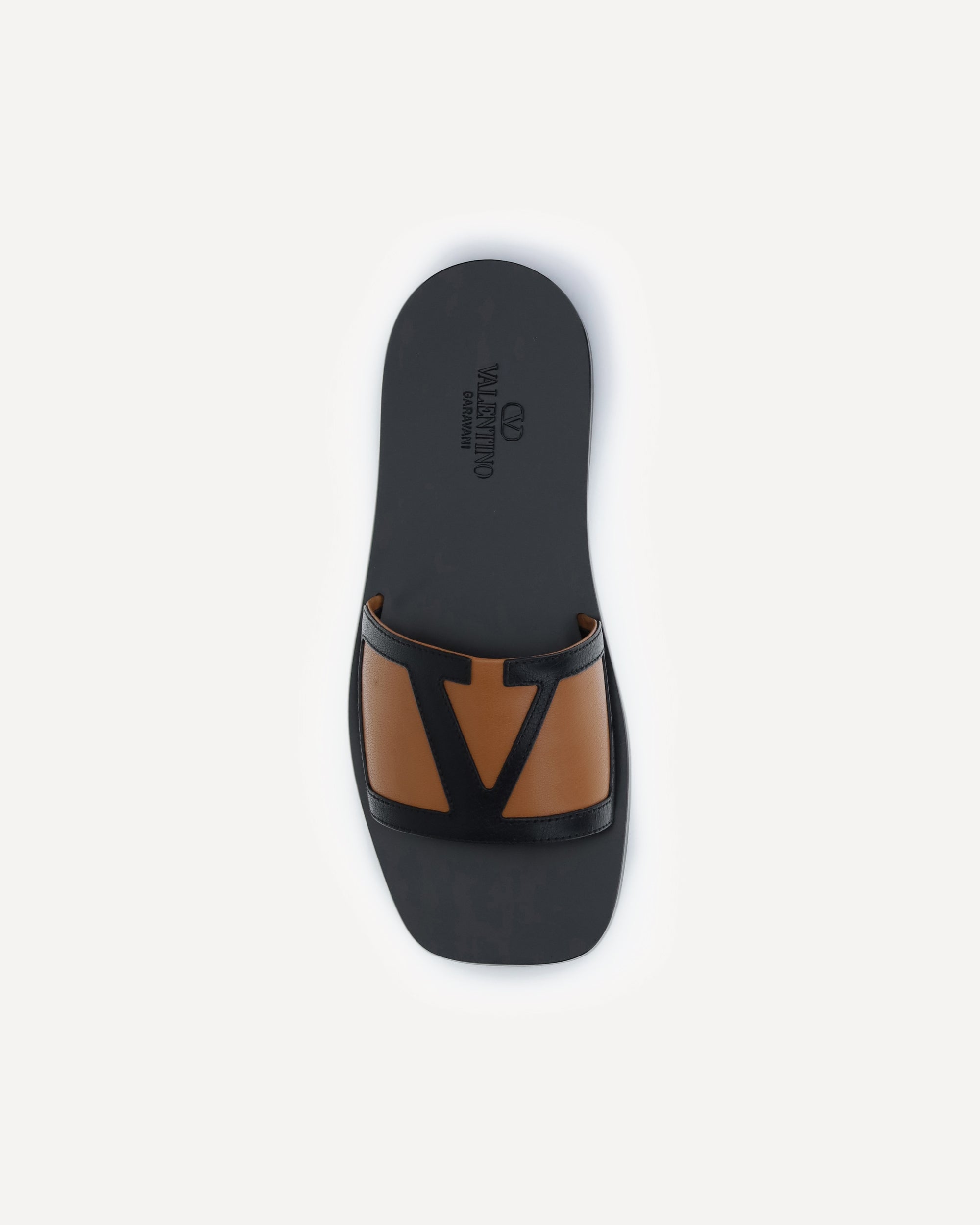 The Viva Superstar Slide Sandals by Valentino Garavani feature the Signature VLogo detail in contrasting color leather for a distinctive touch. The leather bottom, combined with the rubber sole, combines elegance and comfort for a practical and refined fit.