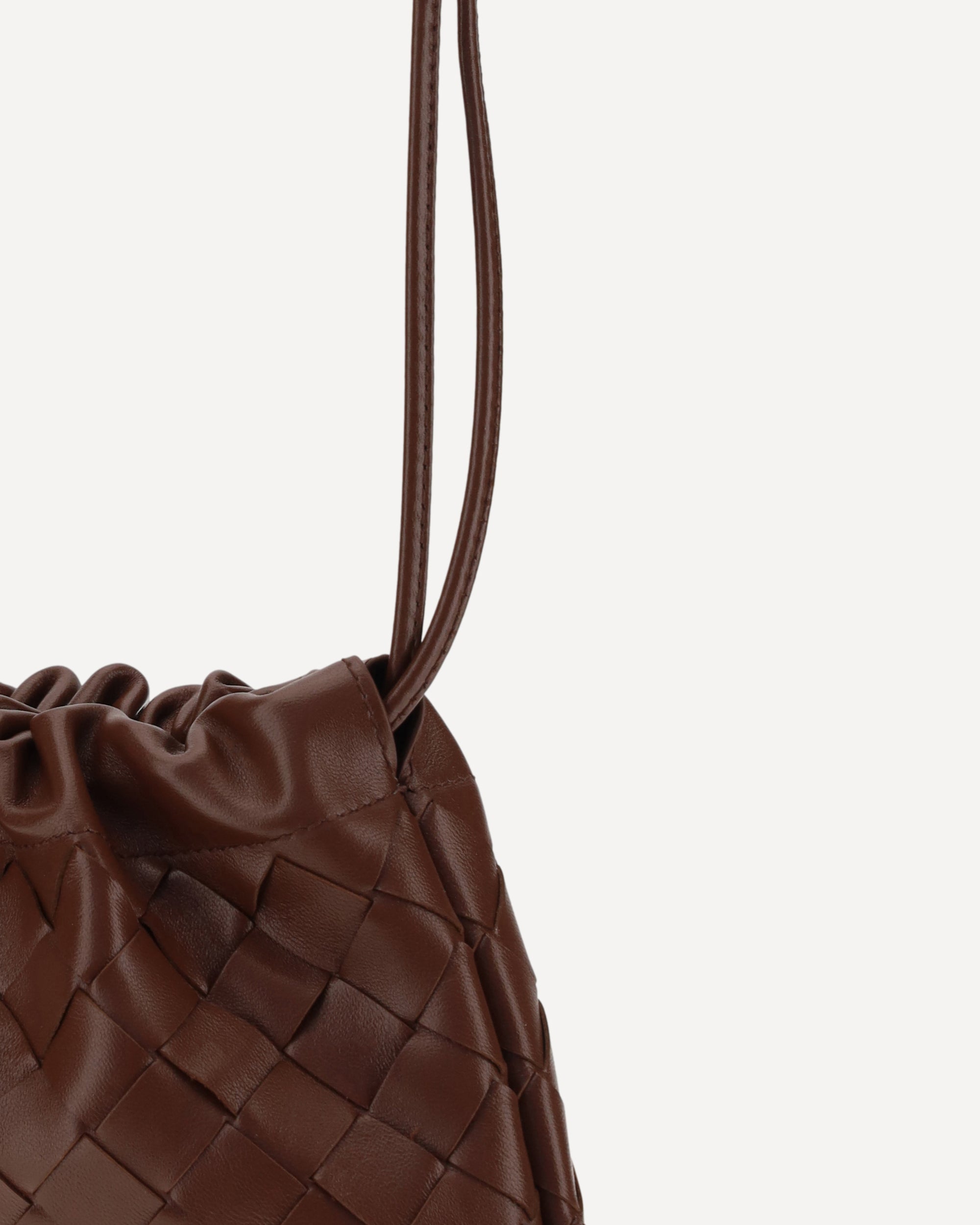 Bottega Veneta's leather Clutch Bag is a modern and sophisticated interpretation of the brand's famous intrecciato weave. Made of high-quality leather, the woven design covers the entire surface, giving it a luxurious and distinctive look. The drawstring closure at the top is ultra-practical and adds a dynamic touch, while the shoulder carry option makes it ideal for convenient daytime use. Inside, the bag features a single compartment, perfect for keeping everything in order.