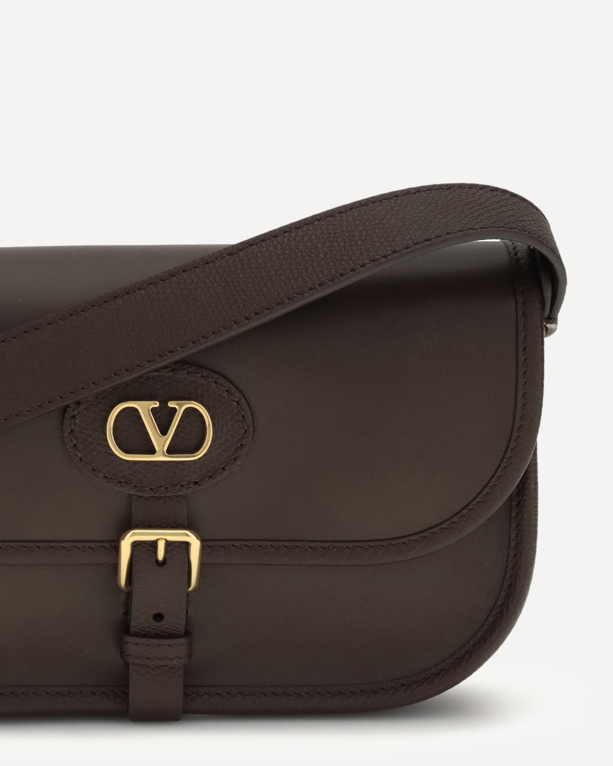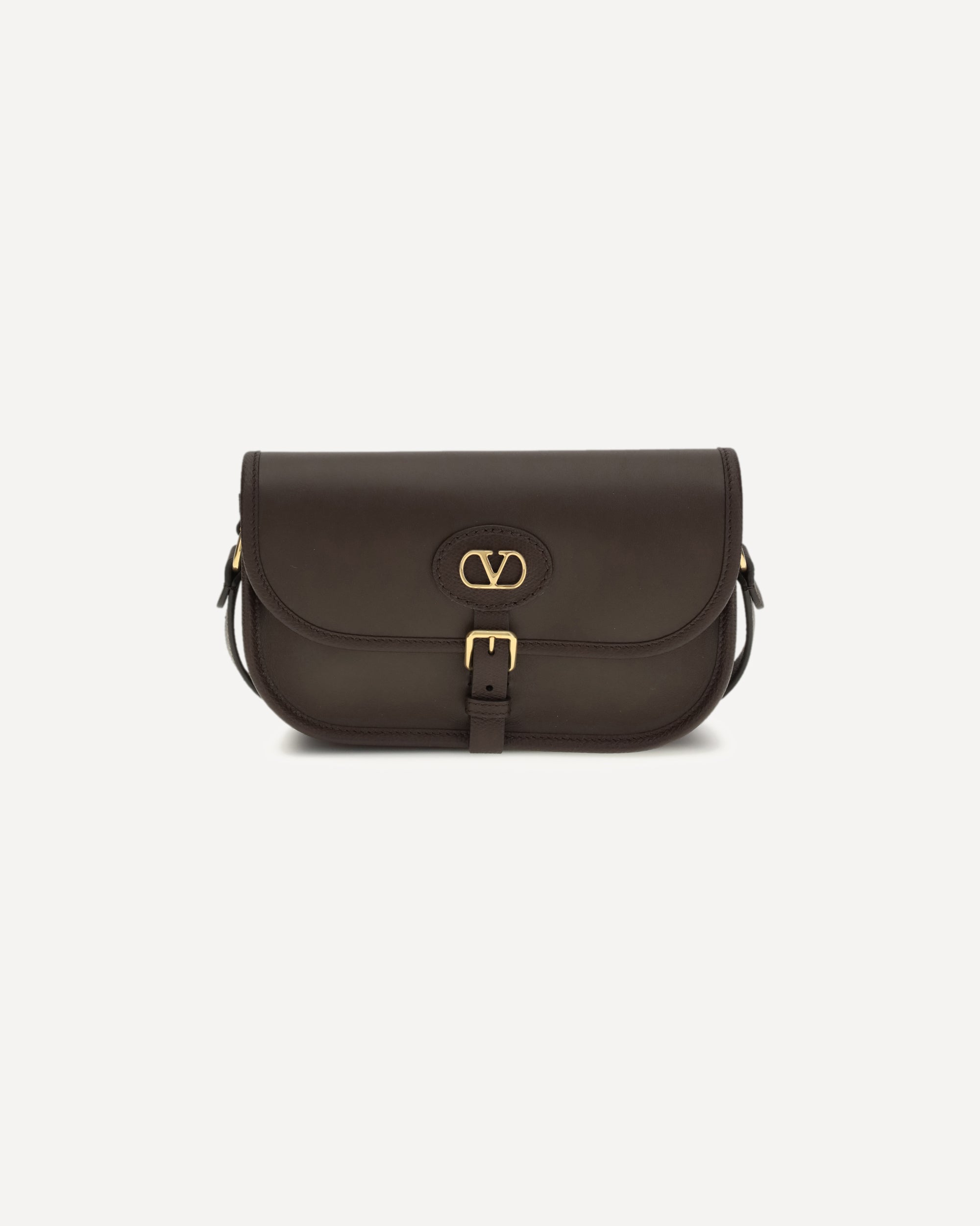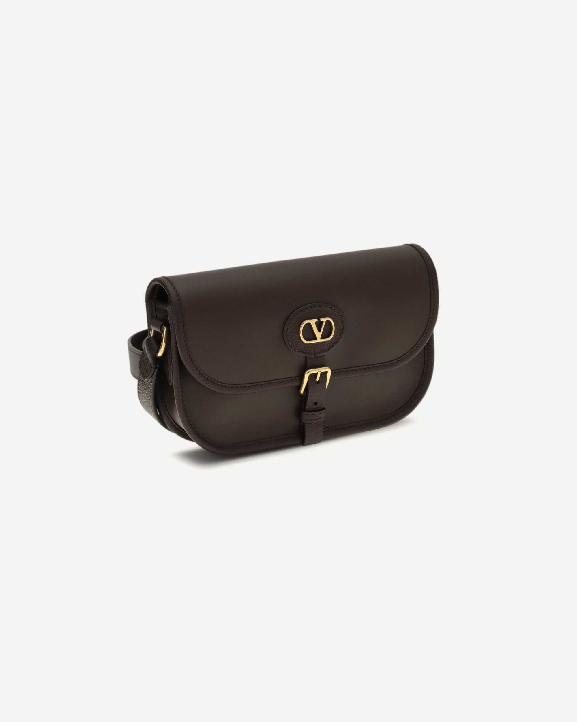 The small Antibes Shoulder Bag by Vavlentino Garavani is made of leather and embellished with the Signature VLogo metallic element. The adjustable leather shoulder strap allows it to be worn on the shoulder or cross-body, while the magnetic closure provides practicality. The suede-lined interior offers two card slots and a flat zippered pocket, complemented by the gold-finish metallic pieces that add an elegant touch of light.