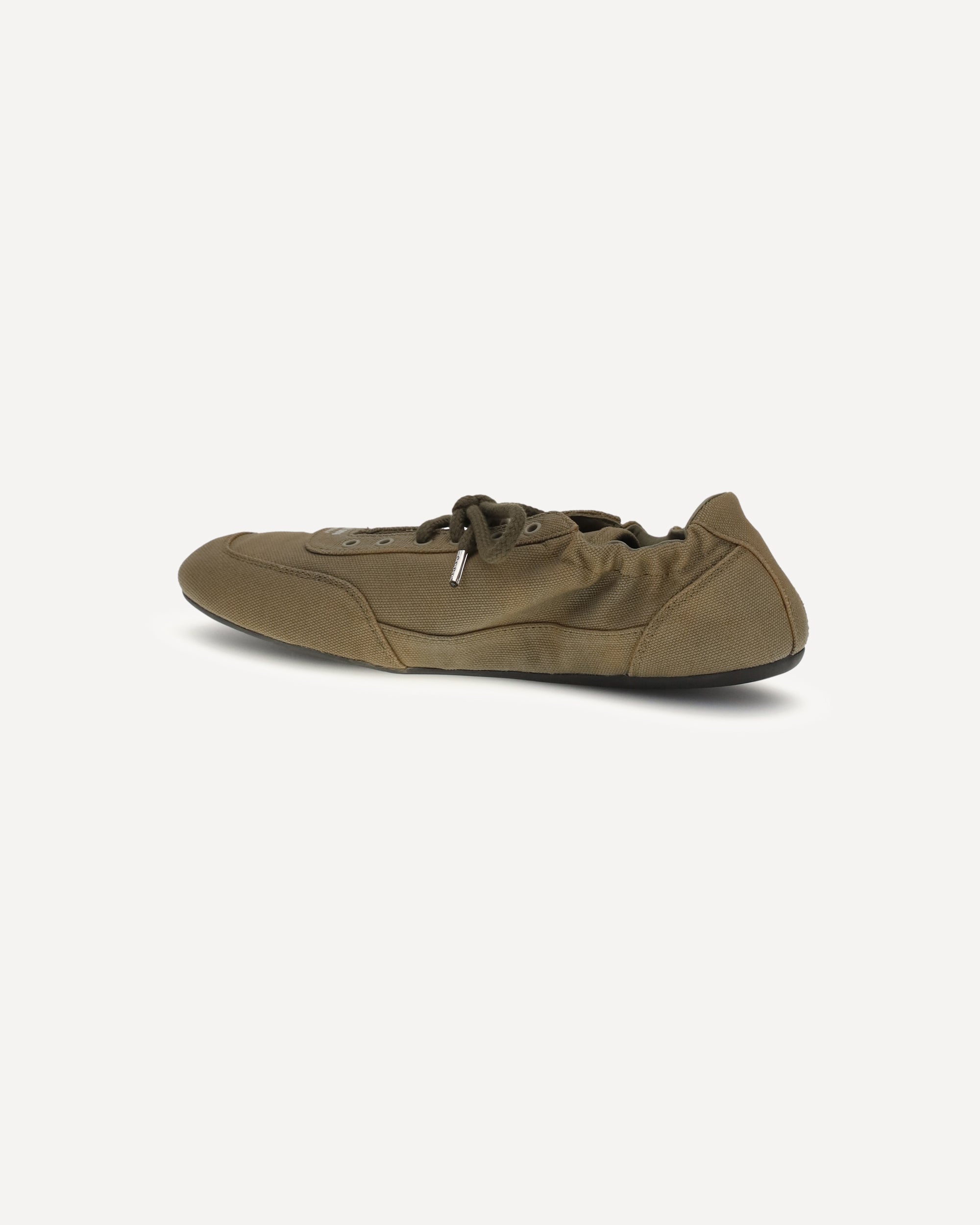 The Collapse Sneakers by Prada combine a minimalist aesthetic with a contemporary spirit, crafted from lightweight, durable canvas and featuring a laminated logo print on the instep for a distinctive, modern touch. The lace-up closure ensures an adjustable and comfortable fit, while the logo print on the inside completes the design with an iconic, refined detail, perfect for casual looks with a sophisticated style.