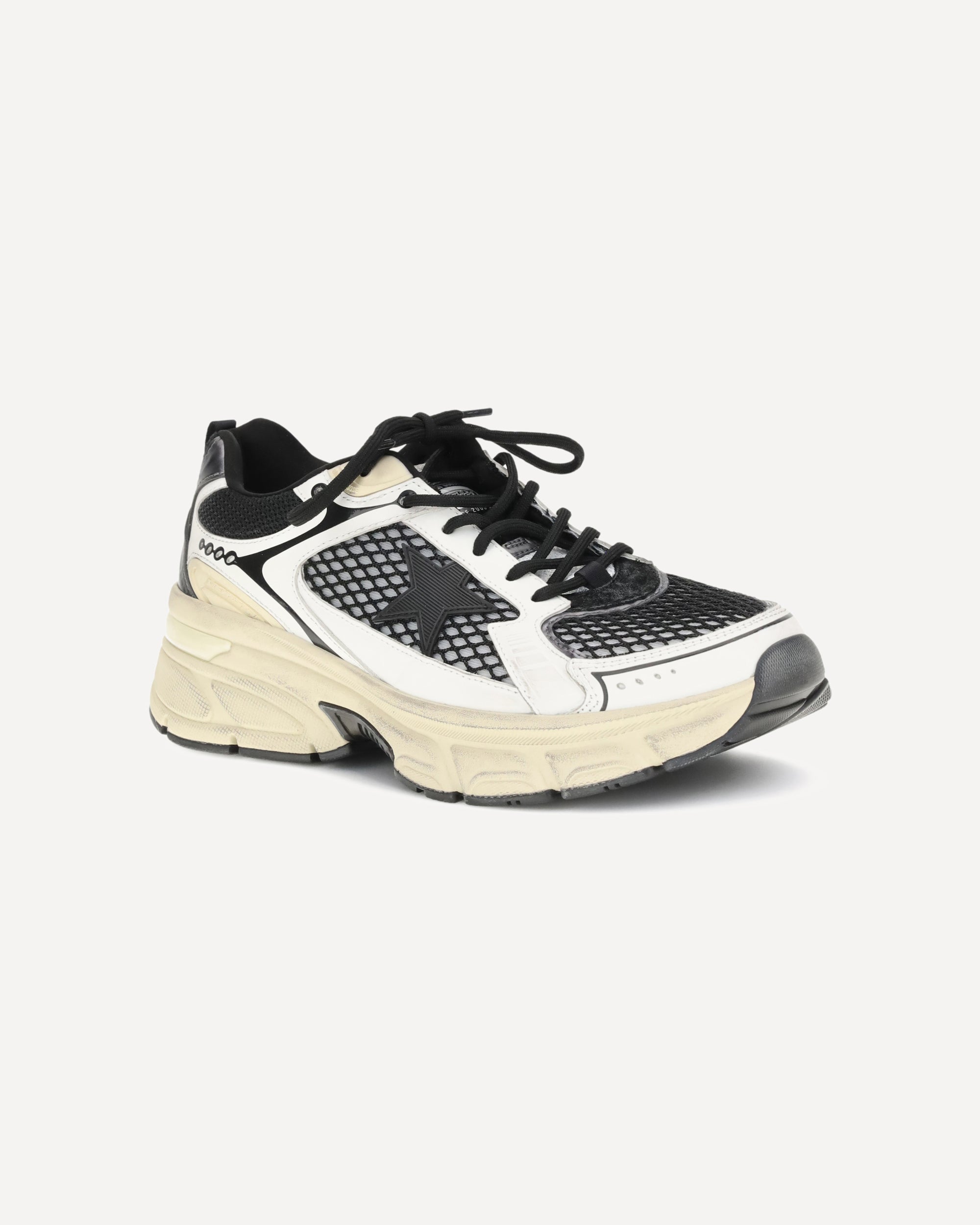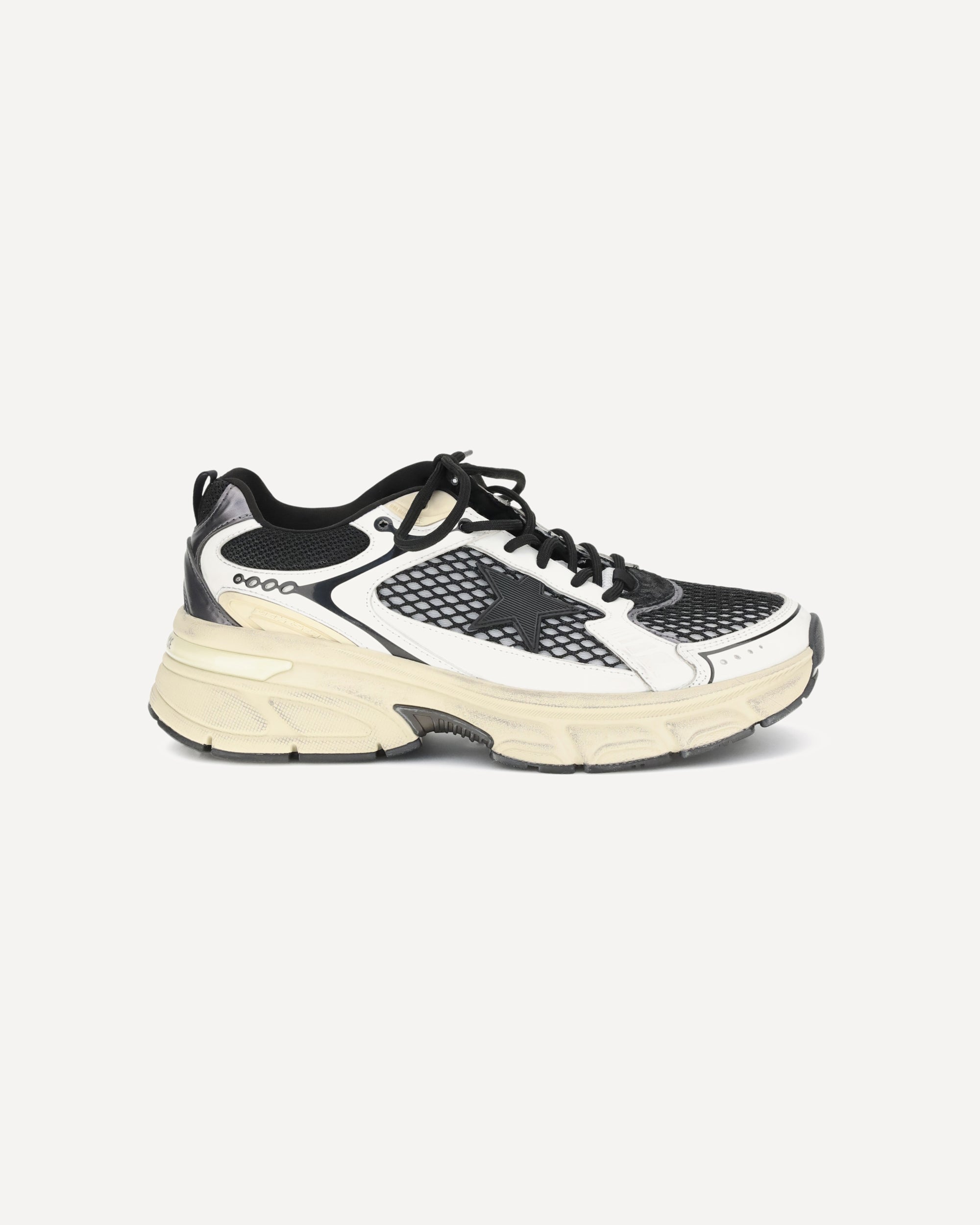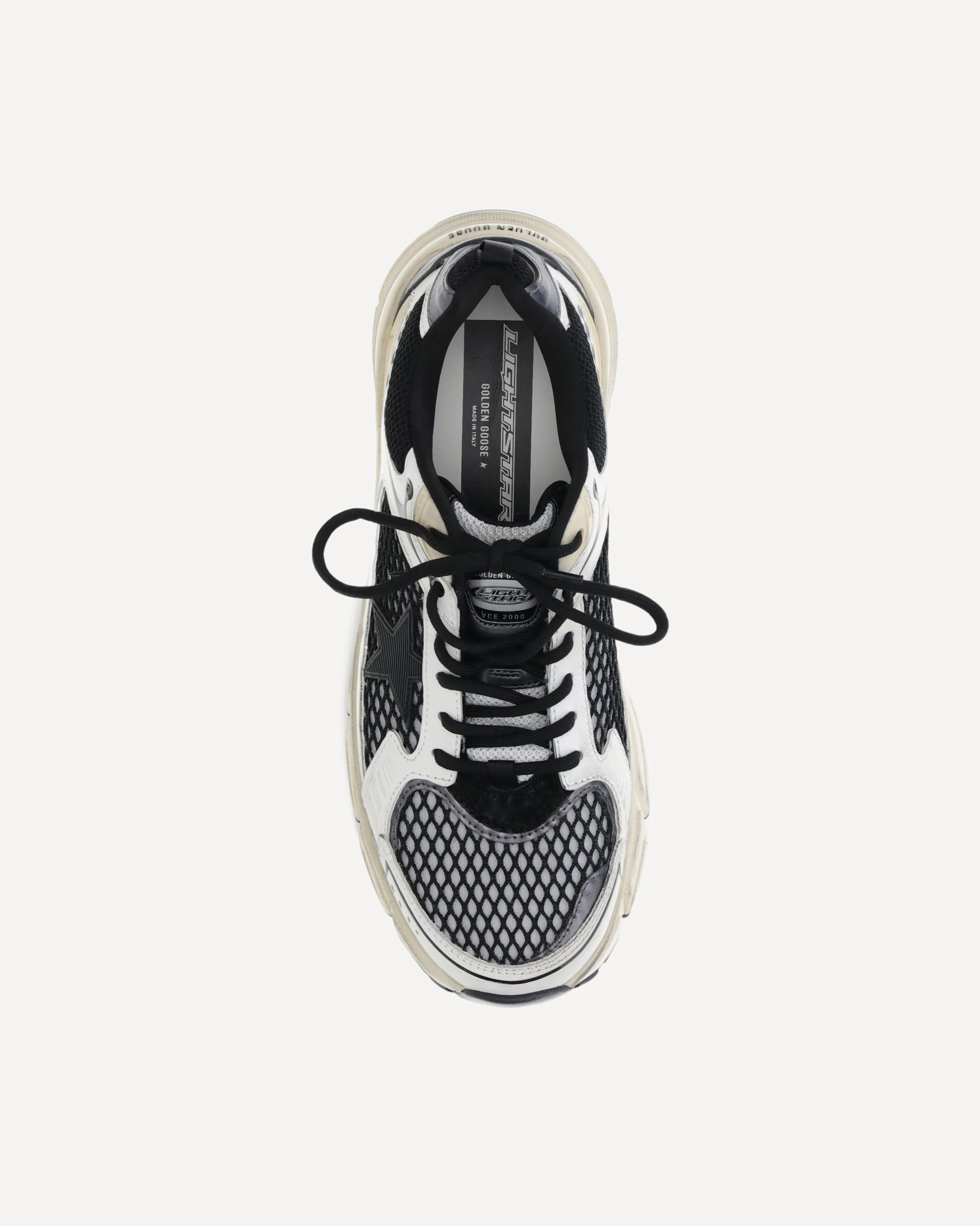 Golden Goose's Lightstar Sneakers combine refined materials and iconic details in a design with a contemporary spirit. The taupe leather and mesh upper is enhanced by the beige TPU star and rose gold laminated leather heel, matching the matching laces. An applique label on the tongue and logo on the heel complete the look, while the "Lightstar" insole ensures maximum comfort and lightness.