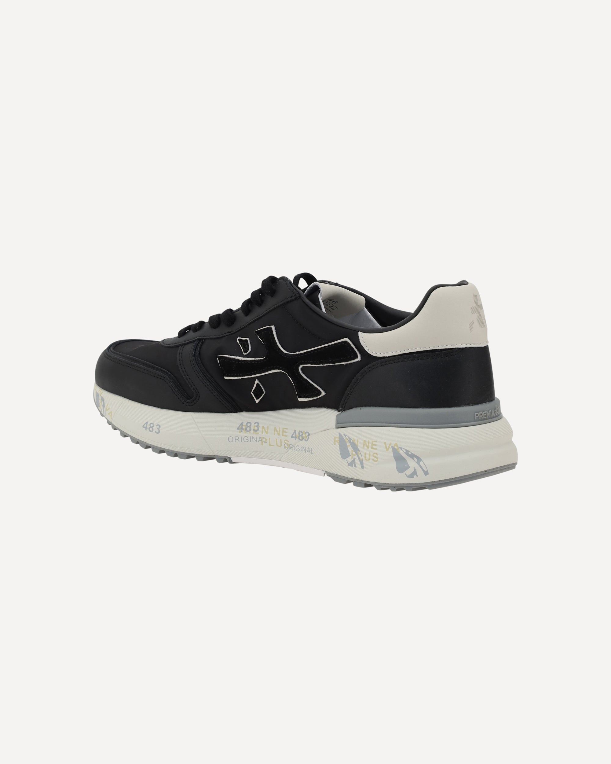 Premiata's Sneakers are the perfect blend of bold style and modern comfort. The multicolored paneled design immediately catches the eye, with the brand's iconic contrasting logo on the side panels adding a distinctive touch. The front lace-up closure allows for an adjustable and secure fit, while the press-on and contrasting prints on the sole give the shoe an added element of character. Suede details add a touch of luxury and depth to the design, while the contrasting branded insole is a sign of quality and attention to detail. These sneakers are perfect for those looking for a mix of comfort, originality and a bold style that won't go unnoticed.