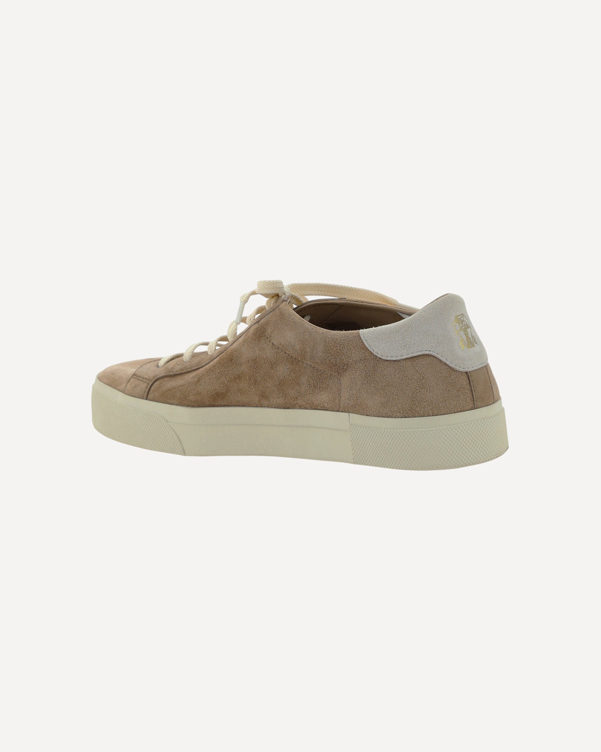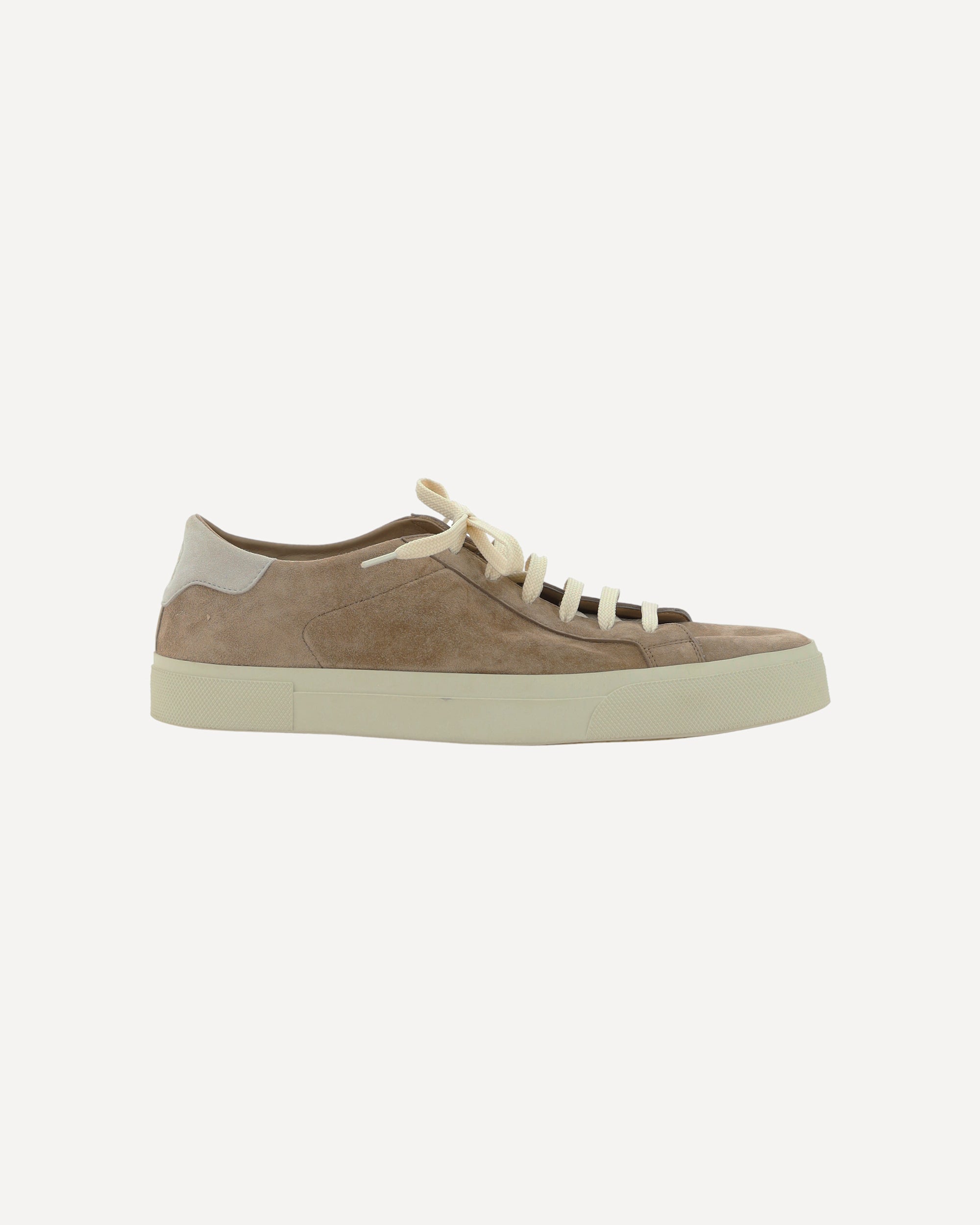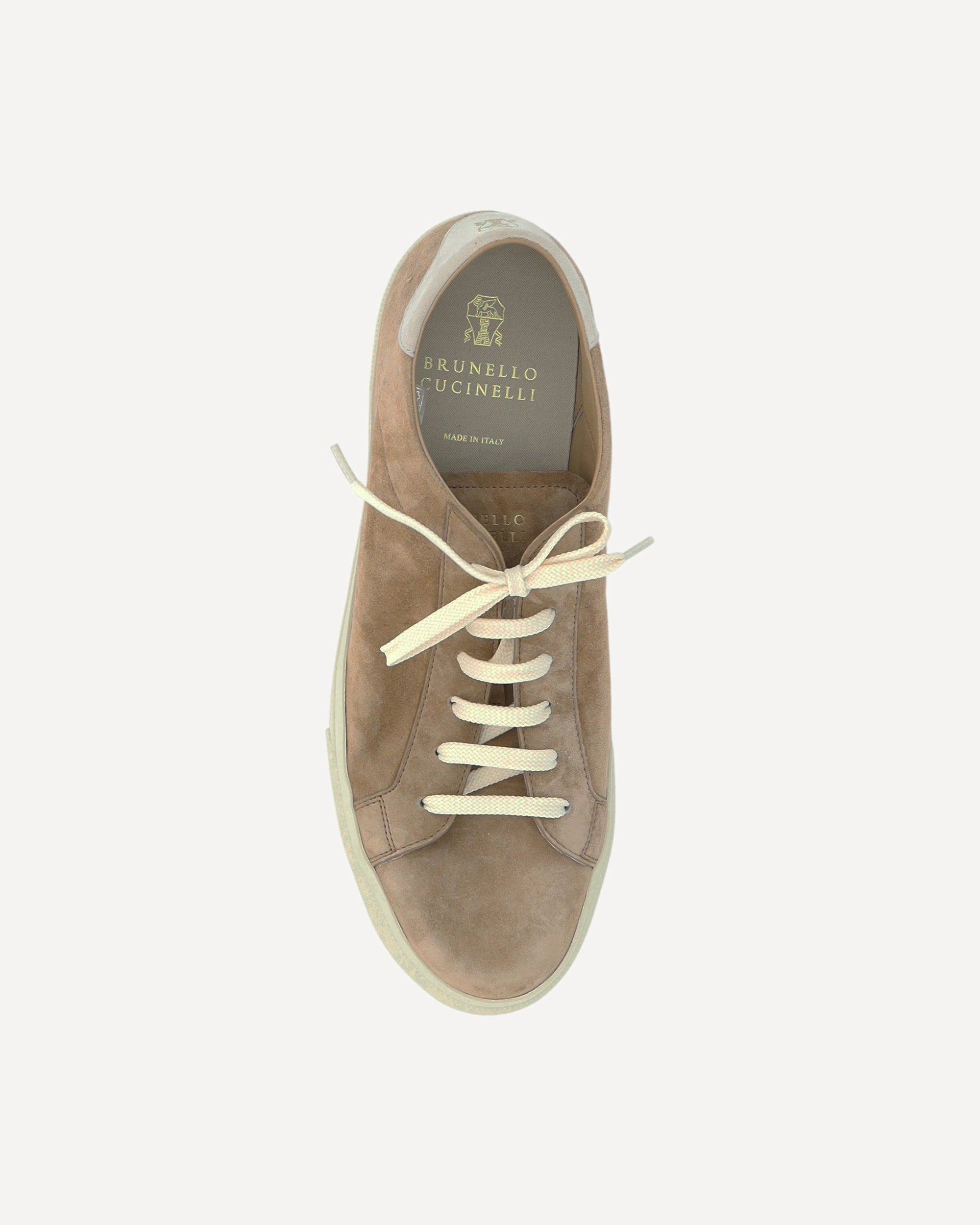 Calfskin Snekaers by Brunello Cucinelli featuring a round toe front, a suede design, a lace-up front fastening, a contrasting signature brand print label at the heel, and a branded insole.