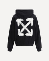 Off-White's cotton Hoodie is a garment with a distinctive urban style. It has an adjustable drawstring hood and a pouch pocket on the front. Ribbed hems and cuffs offer a comfortable fit. The brand's iconic spray-printed logo on the front and the iconic Arrow logo spray-printed on the back add a bold, modern touch. A perfect garment for those seeking a streetwear look that is both luxe and trendy.