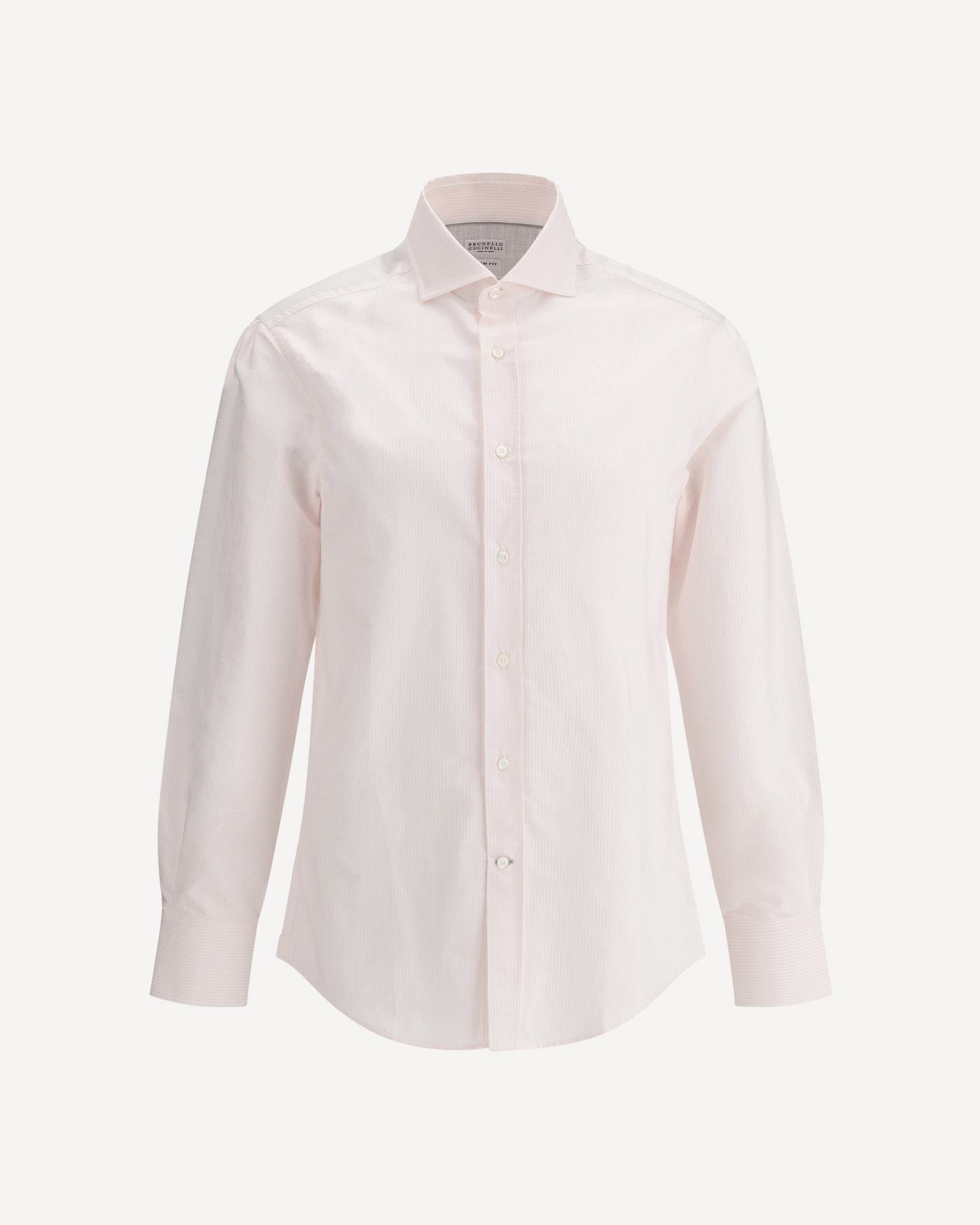 Brunello Cucinelli's cotton Shirt is a refined garment that combines simplicity and elegance. The classic collar lends a touch of sophistication, while the front button closure keeps the design clean and versatile. Adjustable button cuffs allow for a customizable and comfortable fit. The two-tone striped pattern adds an interesting visual detail that lends character to the shirt without being overdone.