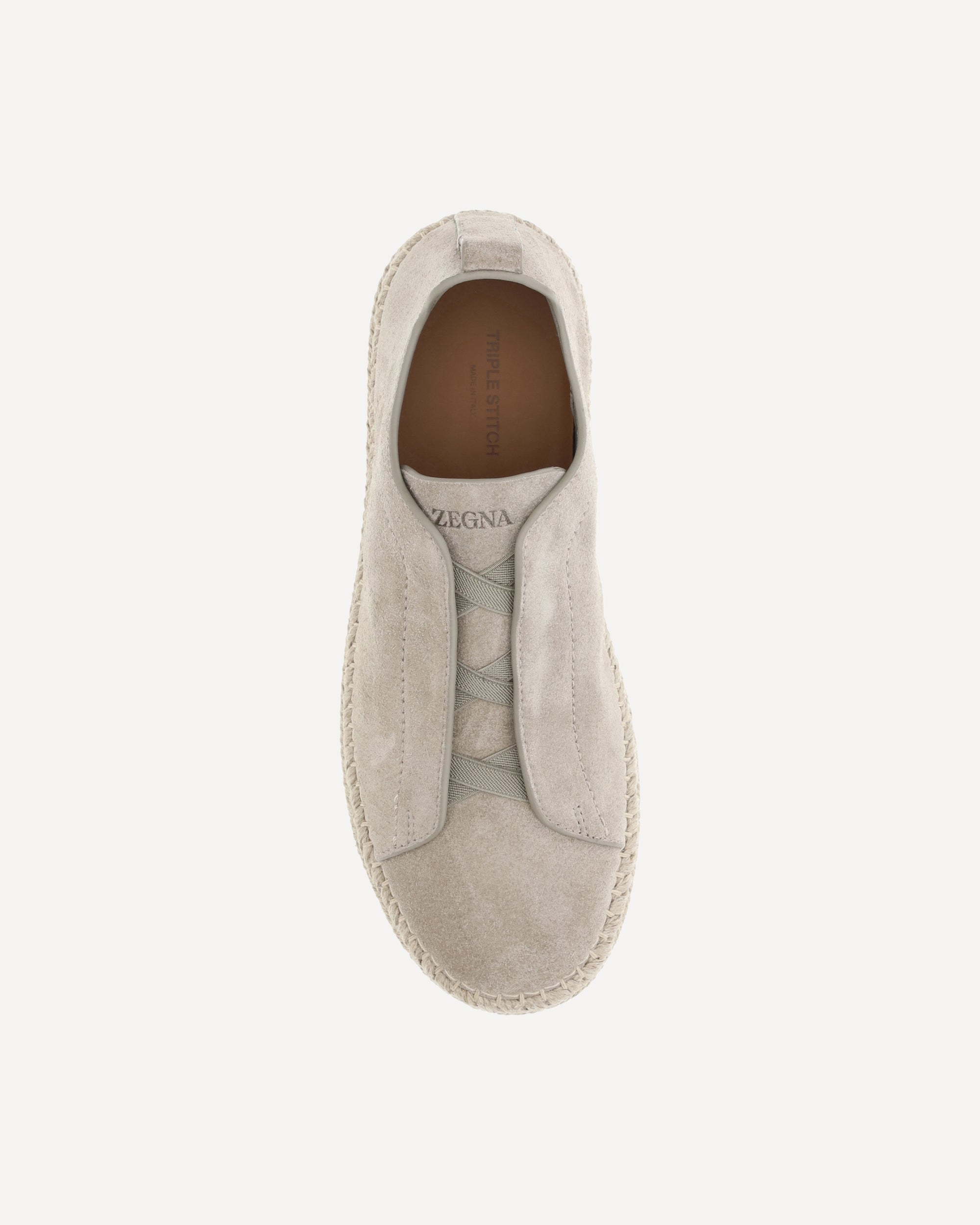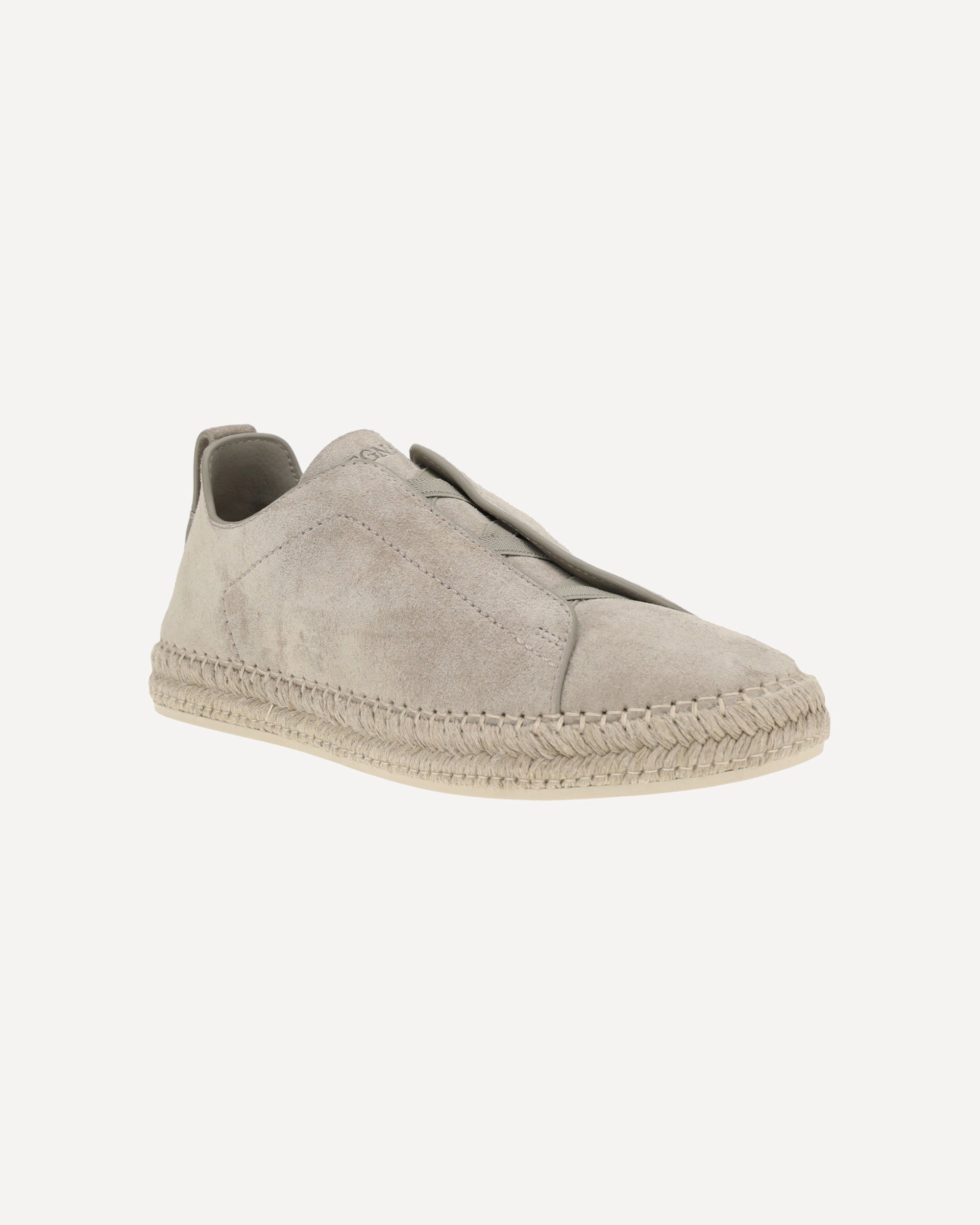 Zegna's leather Sneakers feature a sleek suede design with a flat sole made of rope that adds a natural, contemporary touch. The elongated toe and slip-on style offer practical and refined comfort, ideal for a casual yet sophisticated look.