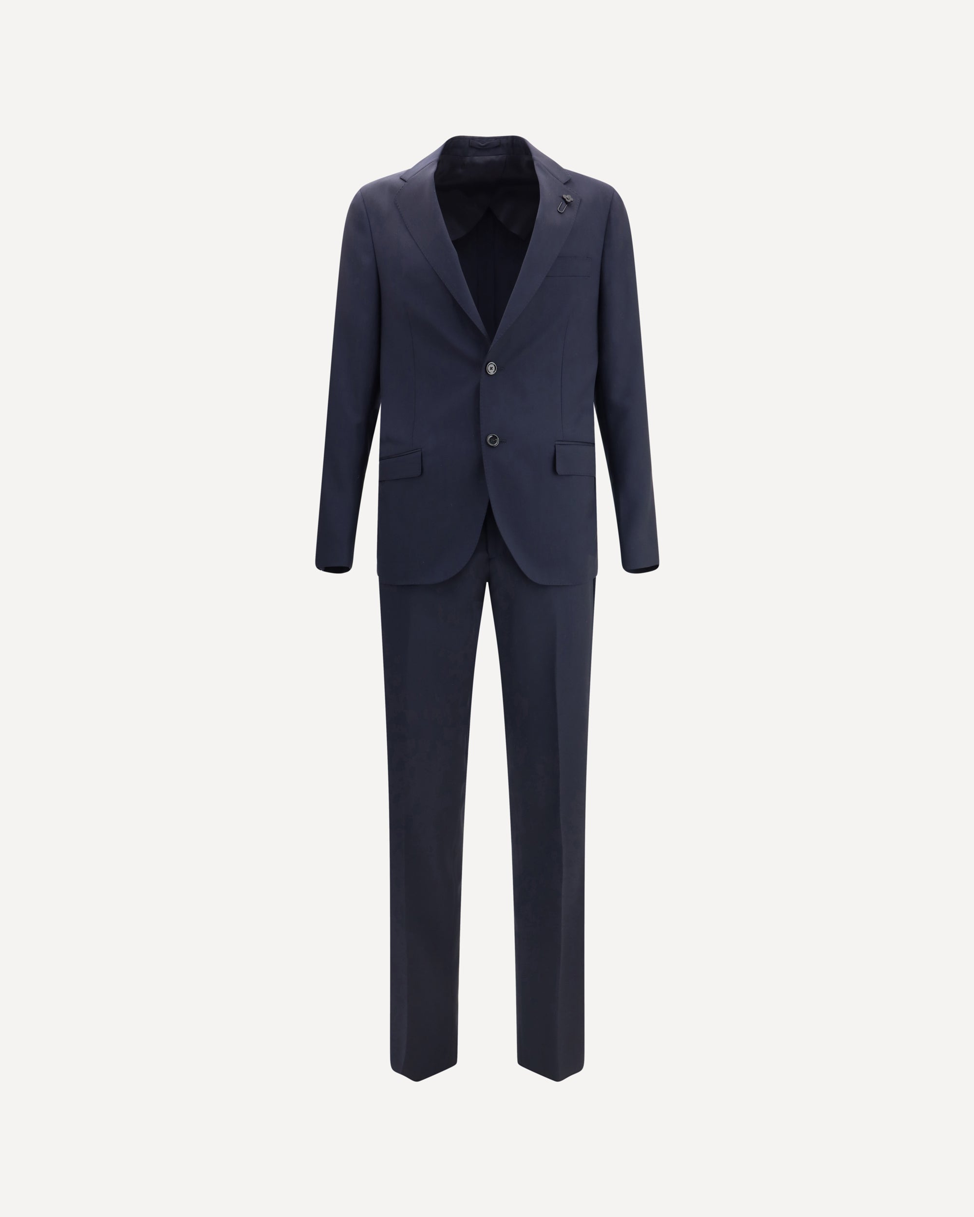 The Lardini virgin wool Suit is an elegant and sophisticated ensemble, perfect for formal occasions or for a refined everyday look. The blazer jacket features a front button closure and two patch pockets on the front, along with a slit pocket for a functional and aesthetic detail. The notched lapel, embellished with an iconic flower pin, adds a distinctive and luxurious touch. The classic trousers have a front zip and button closure, with two side slash pockets and two welt pockets on the back, for practicality without compromising on style. The belt loops at the waist complete the design, offering the possibility to add a personal touch to the ensemble. A suit that combines tradition, elegance and functionality.