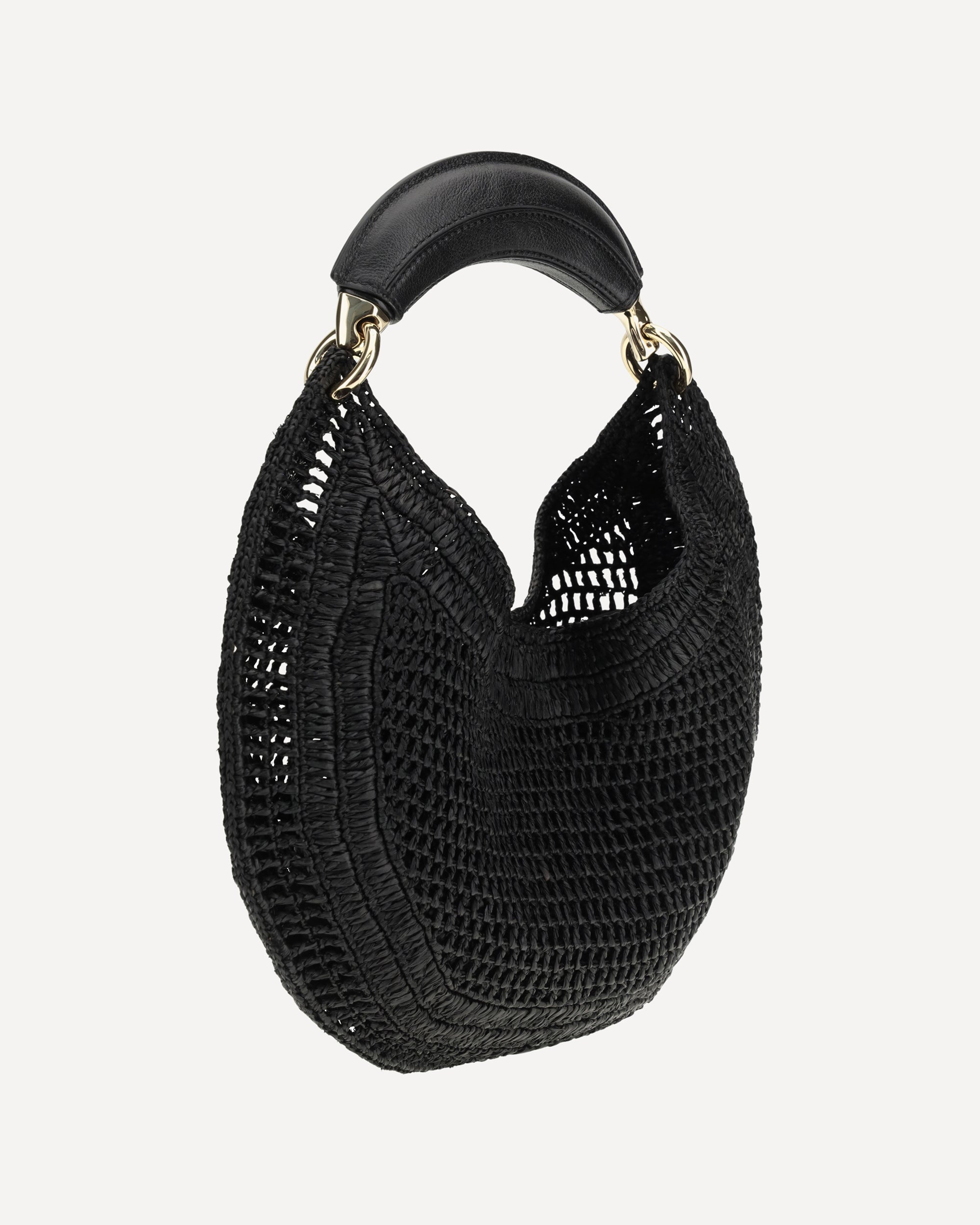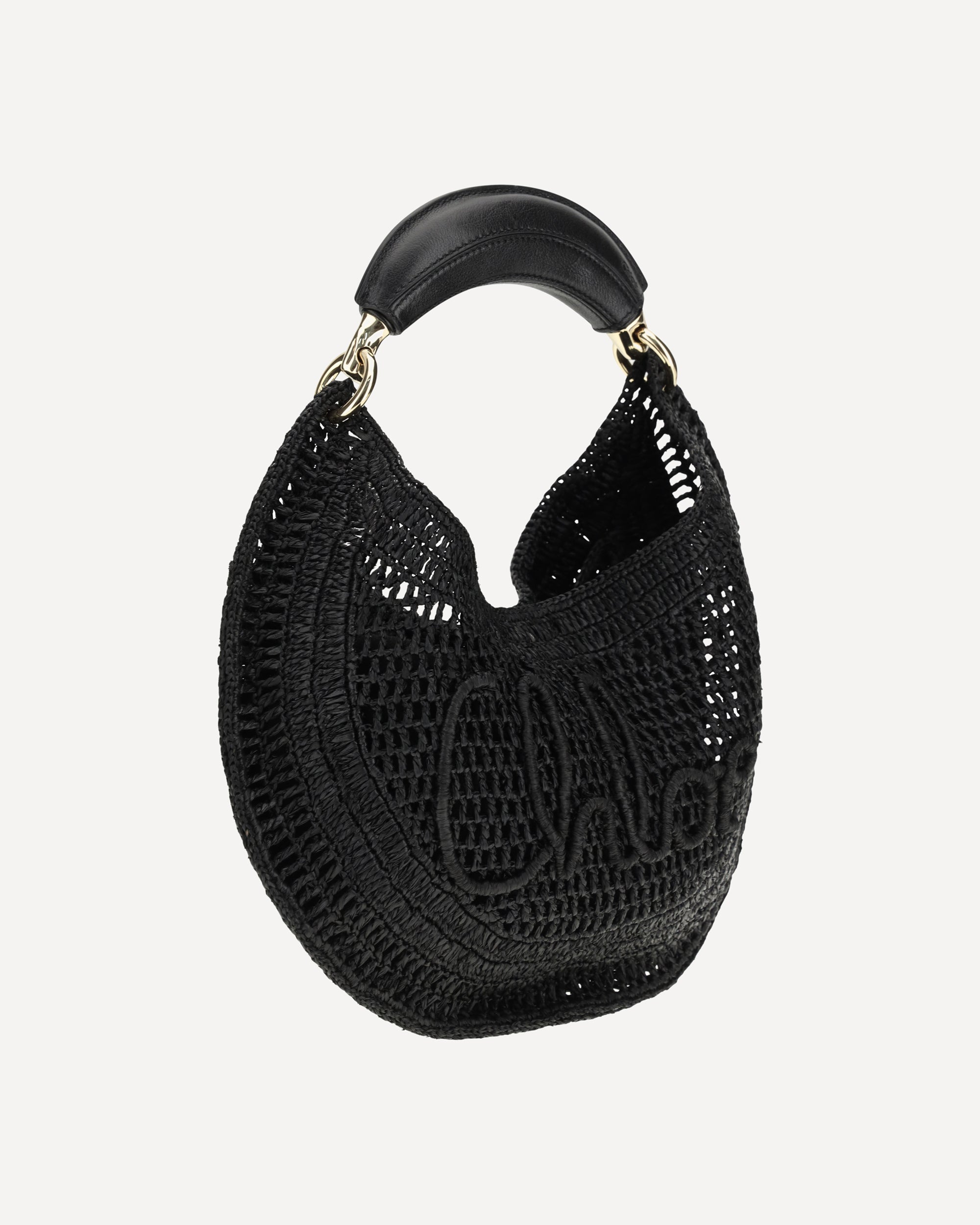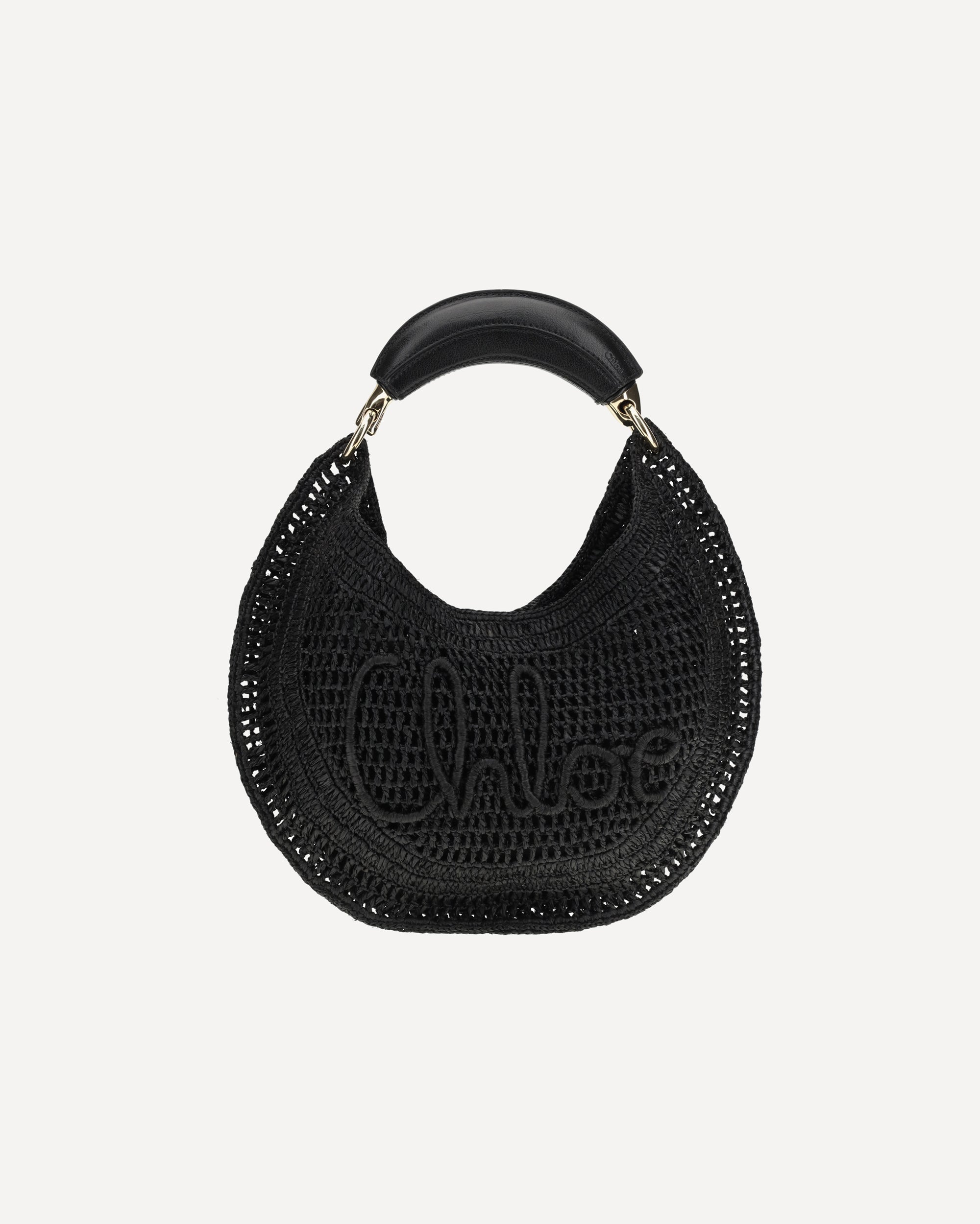 The Summer Banana Shoulder Bag by Chloé is an accessory with summery, bohemian appeal, perfect for adding a touch of coolness and style to your everyday looks. Made of raffia, the bag sports a light and natural design that is ideal for warmer seasons. The sturdy, single buffalo handle provides comfort and convenience, while the snap-button closure ensures security and ease of use. An elegant embroidery on the front panel, embellished with the brand's signature, lends a distinctive and sophisticated detail. This bag is the ideal accessory for those seeking a mix of casual elegance and craftsmanship, perfect for any summer occasion.