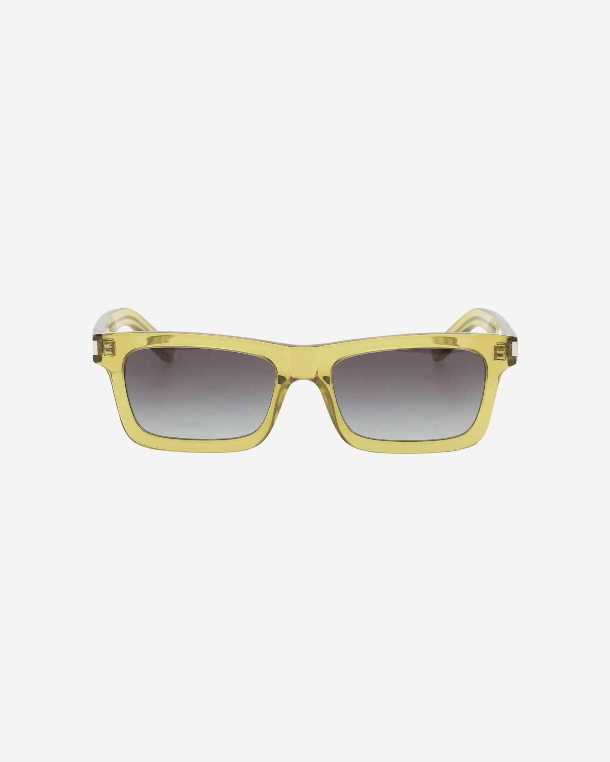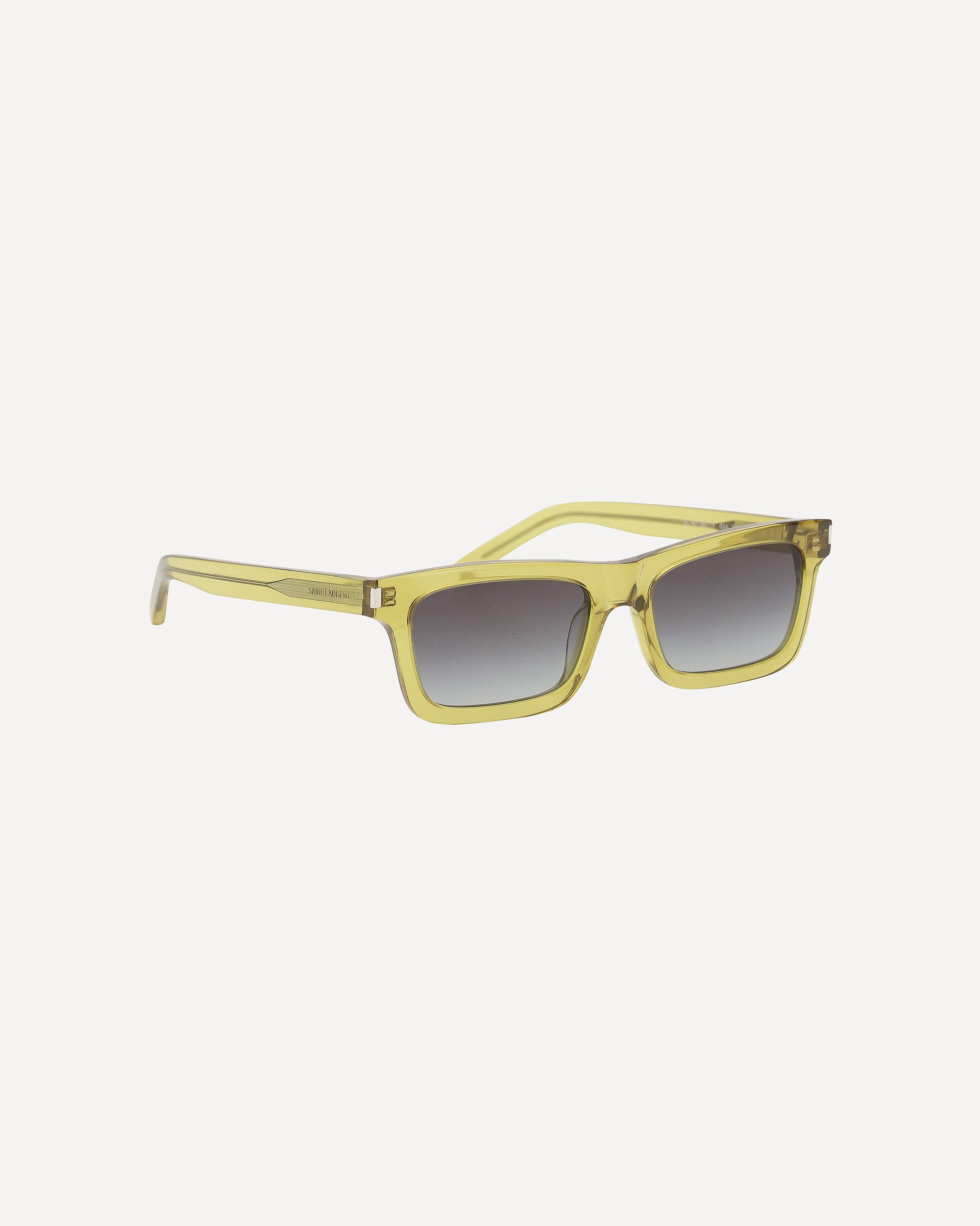 The Saint Laurent Sunglasses feature a transparent rectangular design that adds a touch of modernity and lightness to the look. The clear and minimalist frame makes these glasses versatile, perfect for adding a touch of sophisticated style to any outfit. The iconic signature of the brand, printed on the side, offers a distinctive detail that recalls the quality and timeless elegance of Saint Laurent. With their simple yet refined design, these sunglasses are ideal for those looking for a chic and classy accessory, which easily adapts to any occasion.