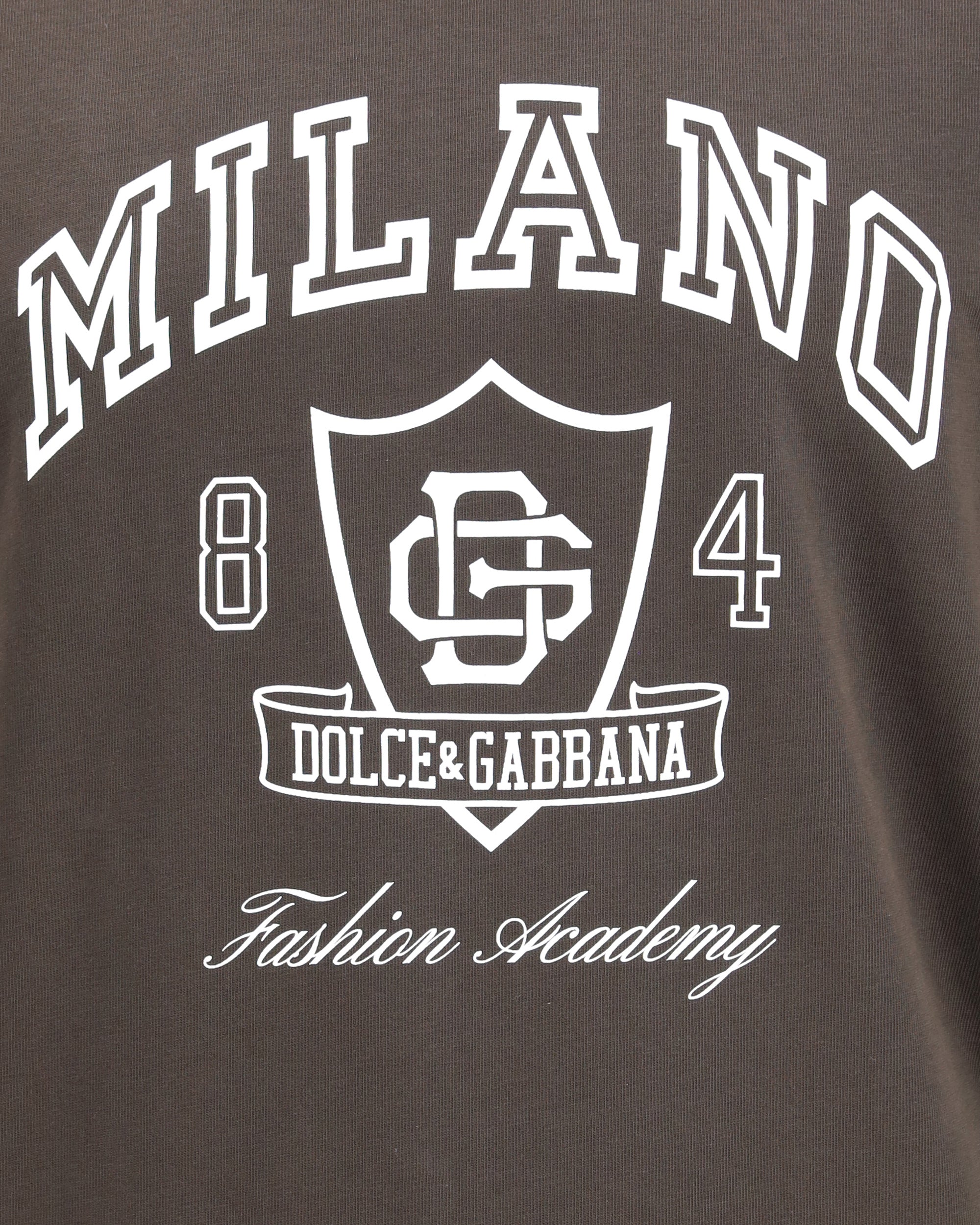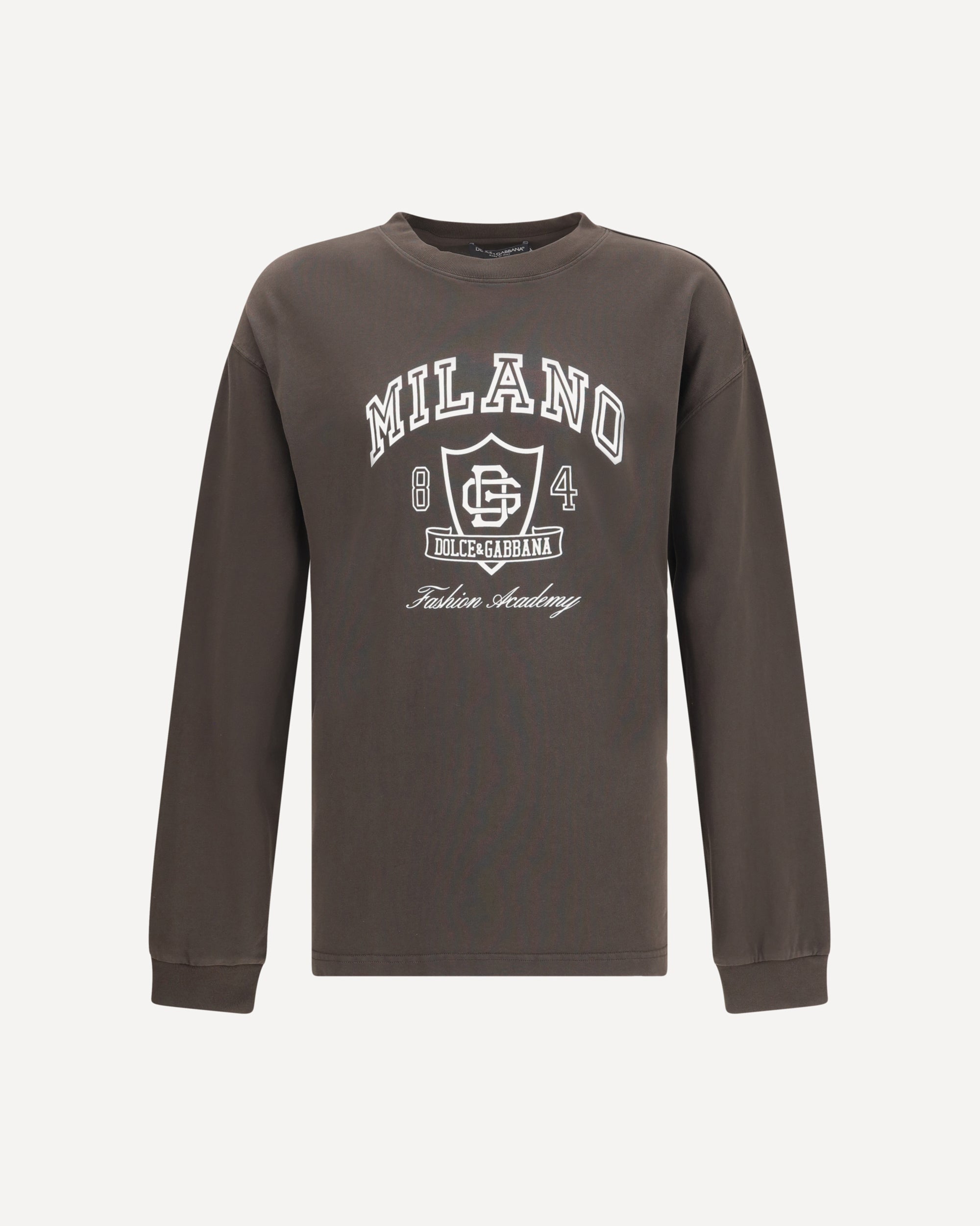 The Cotton Long-Sleeve T-Shirt by Dolce & Gabbana conveys an urban and distinctive aesthetic with its Milano logo print on the front. A ribbed crew neck and clean lines enhance its comfortable fit, making it a versatile piece that blends practicality with contemporary style.