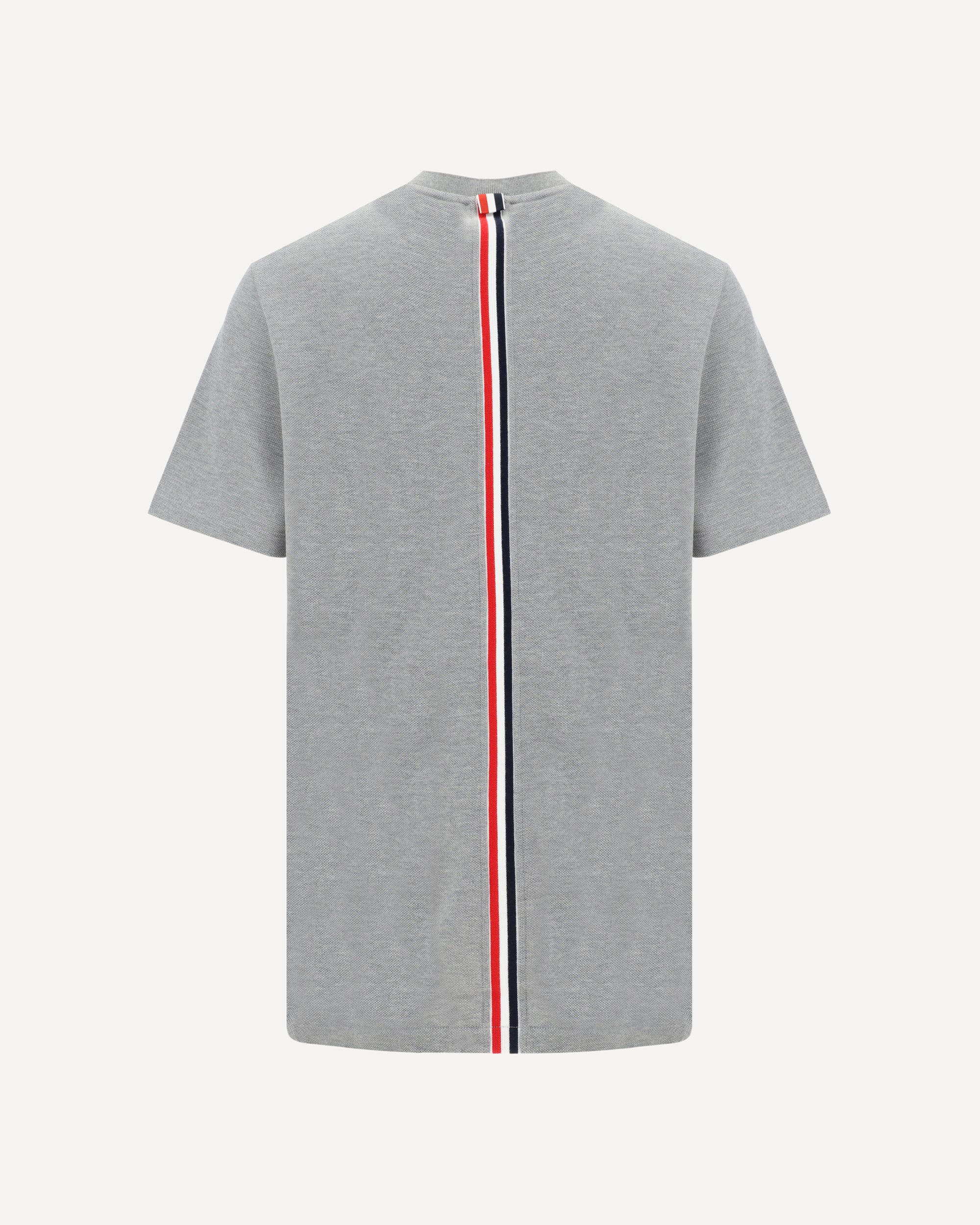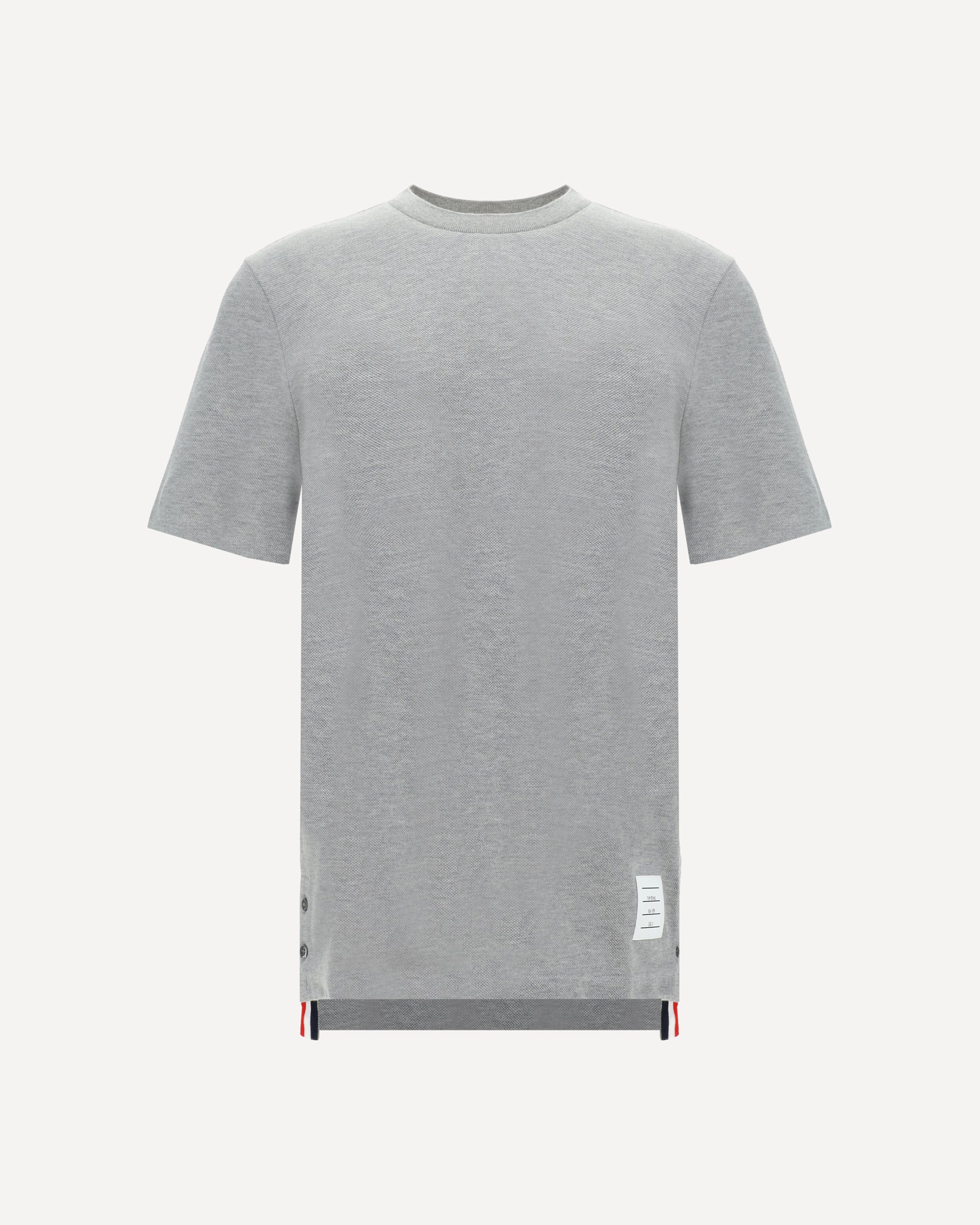 Cotton T-Shirt by Thom Browne, ribbed crew neck collar, lateral slits with buttons, back stripe bar.