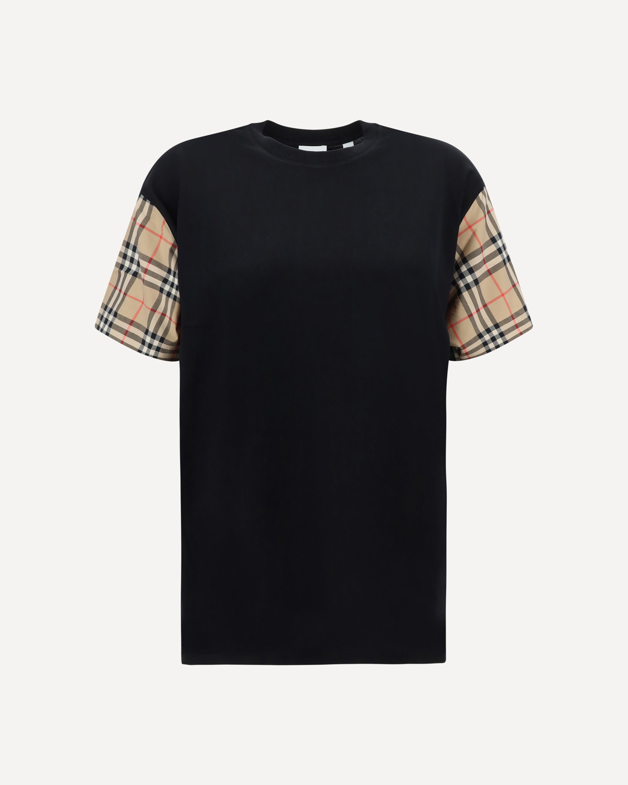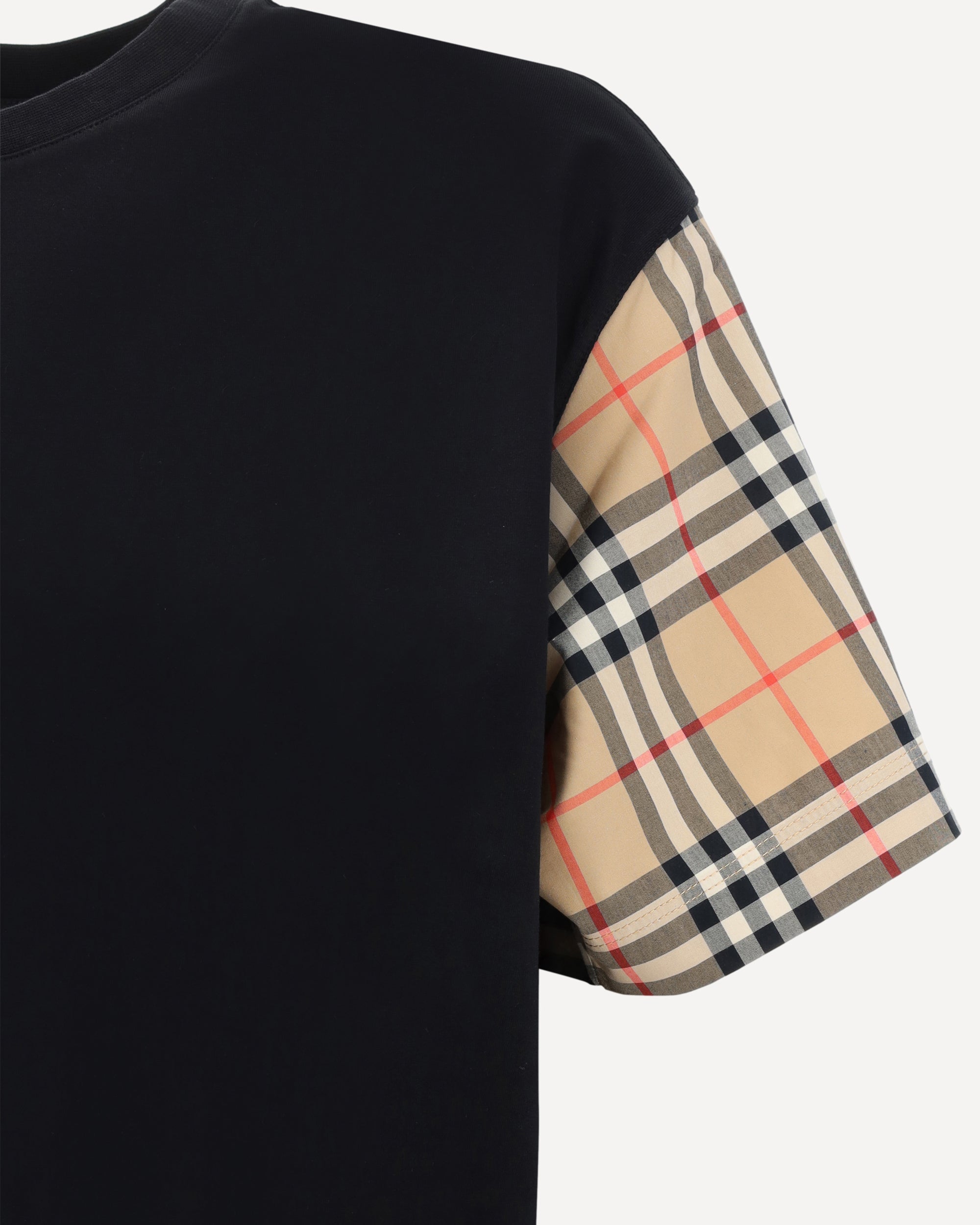 Cotton T-Shirt by Burberry, ribbed crew neck, contrast sleeves with iconic Check Archive pattern, regular fit.