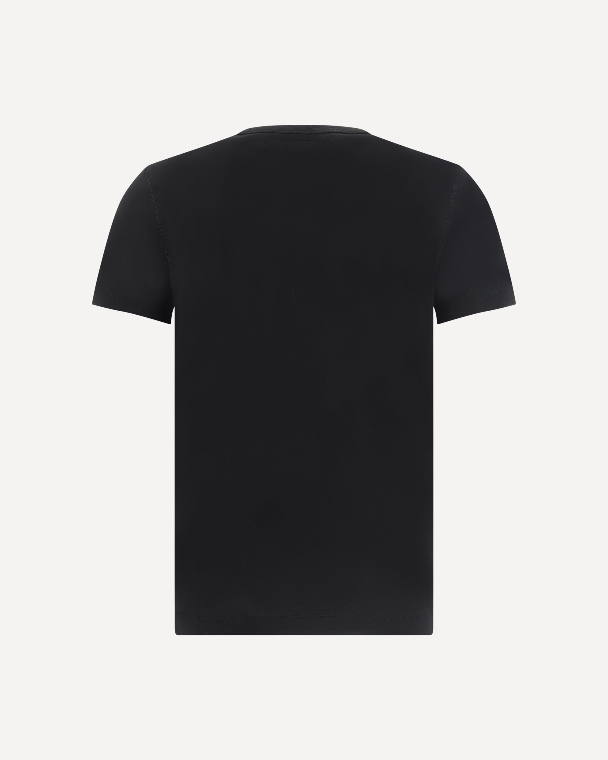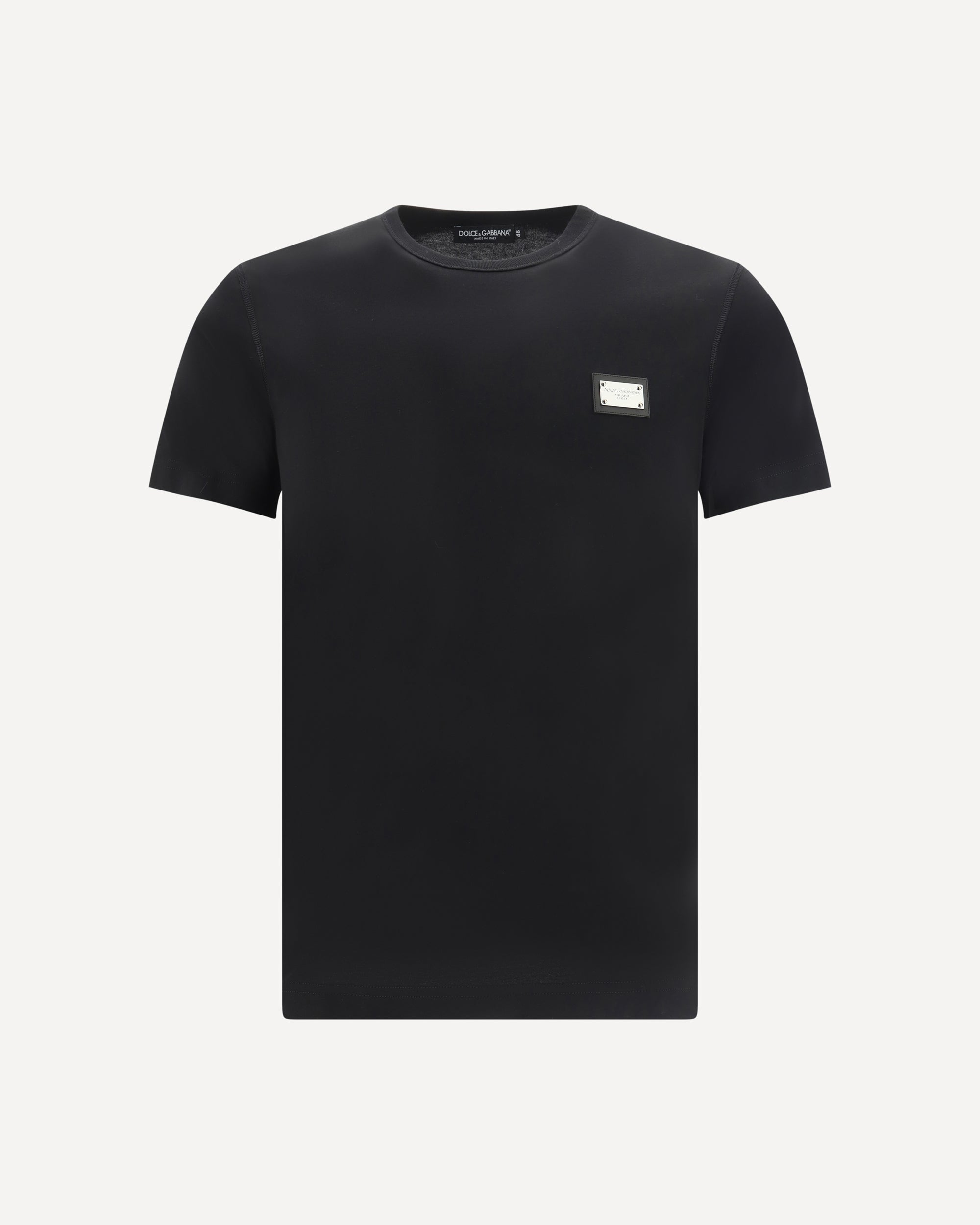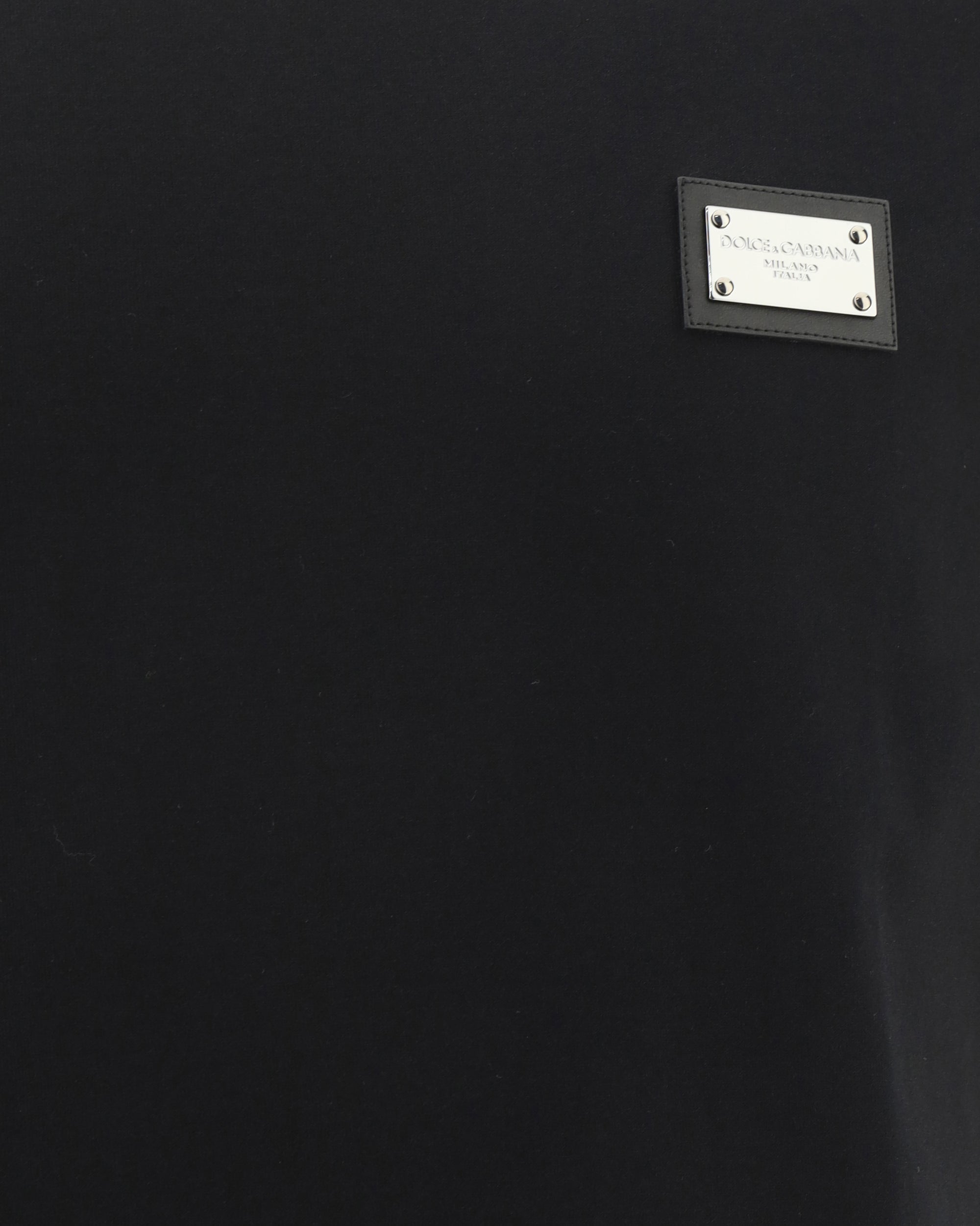 Cotton T-Shirt by Dolce&Gabbana, ribbed crew neck, metal plaque with the brand's iconic D&G monogram engraved and applied on the back, oversize fit.