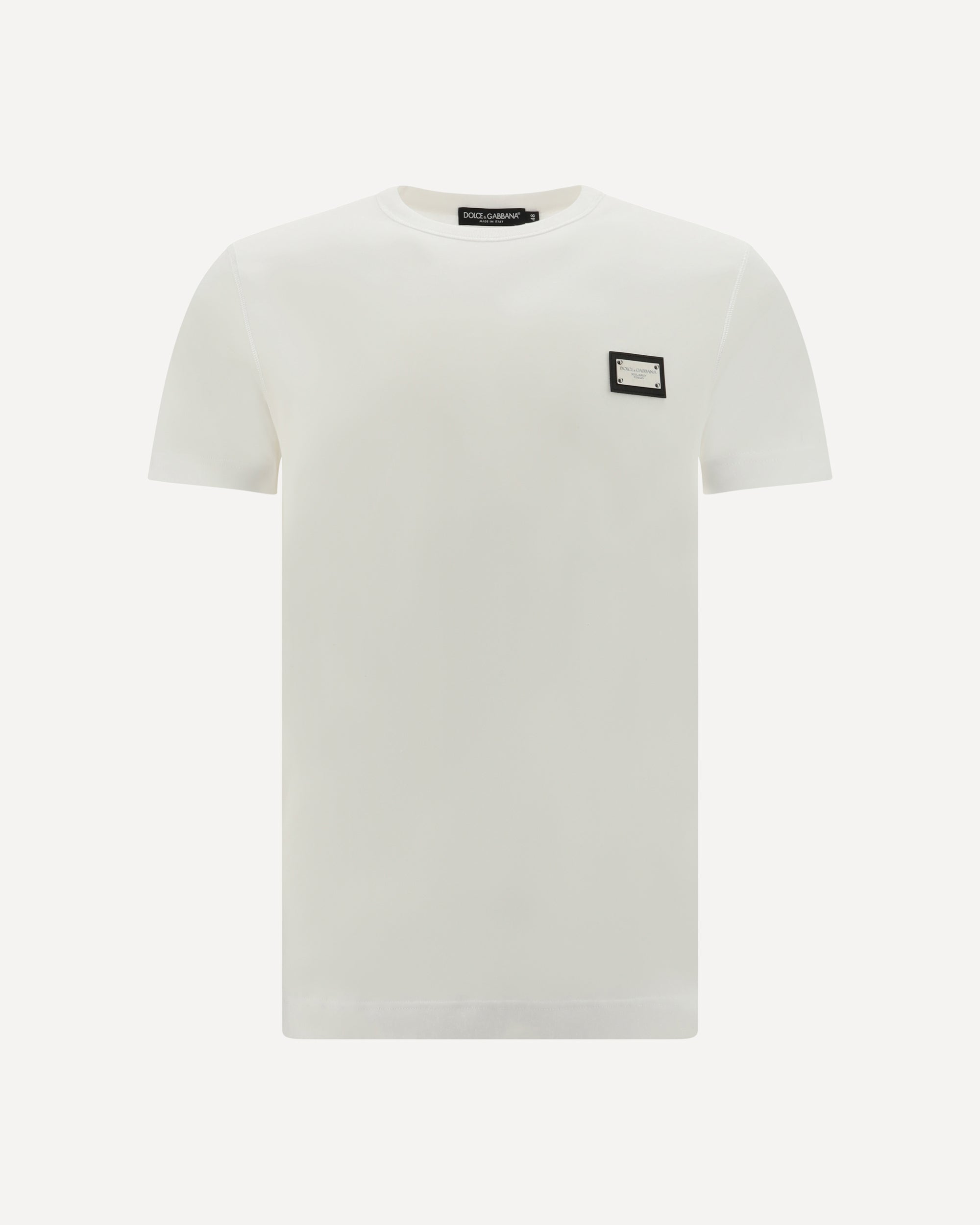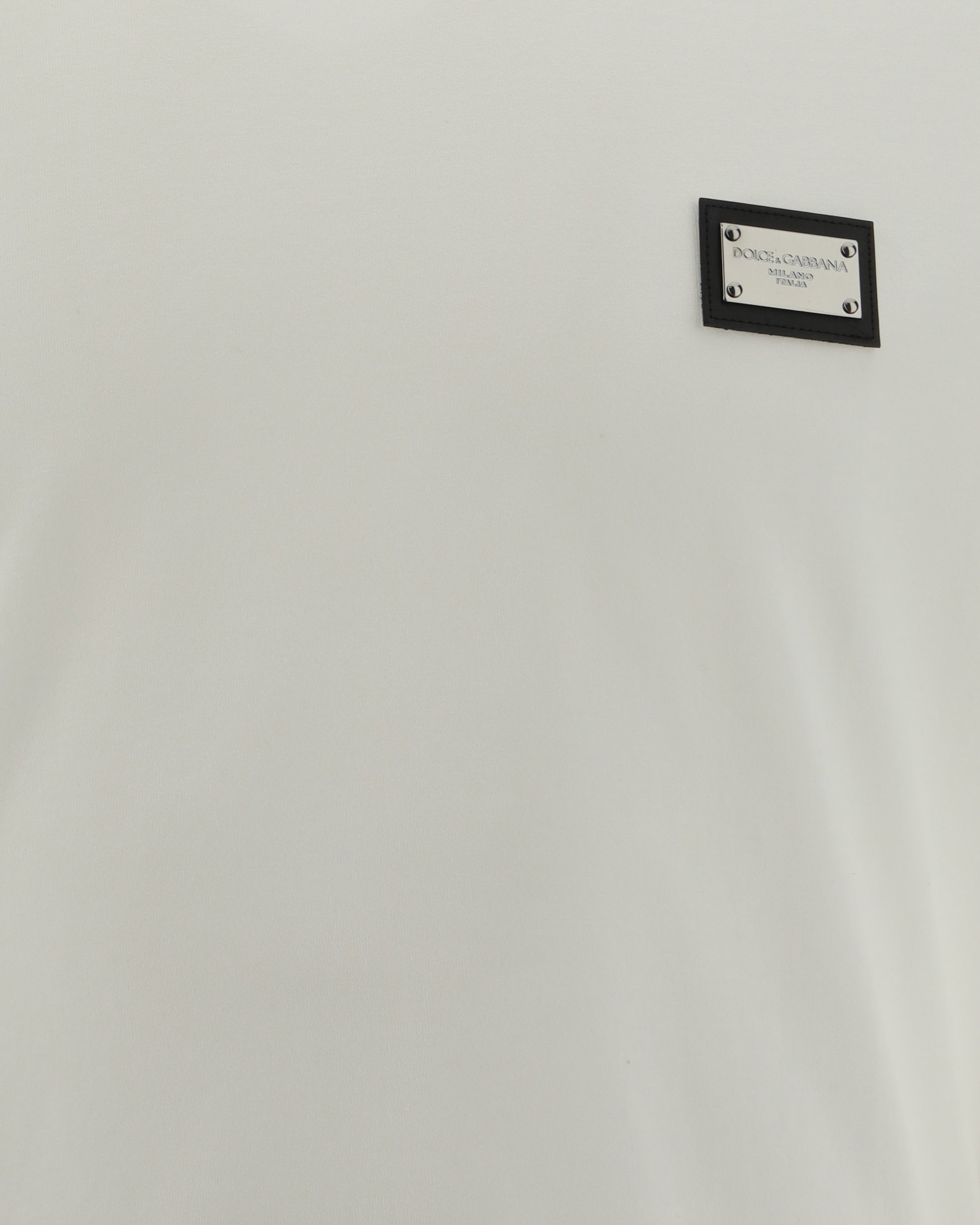Cotton T-Shirt by Dolce&Gabbana, ribbed crew neck, metal plaque with the brand's iconic D&G monogram engraved and applied on the back, oversize fit.