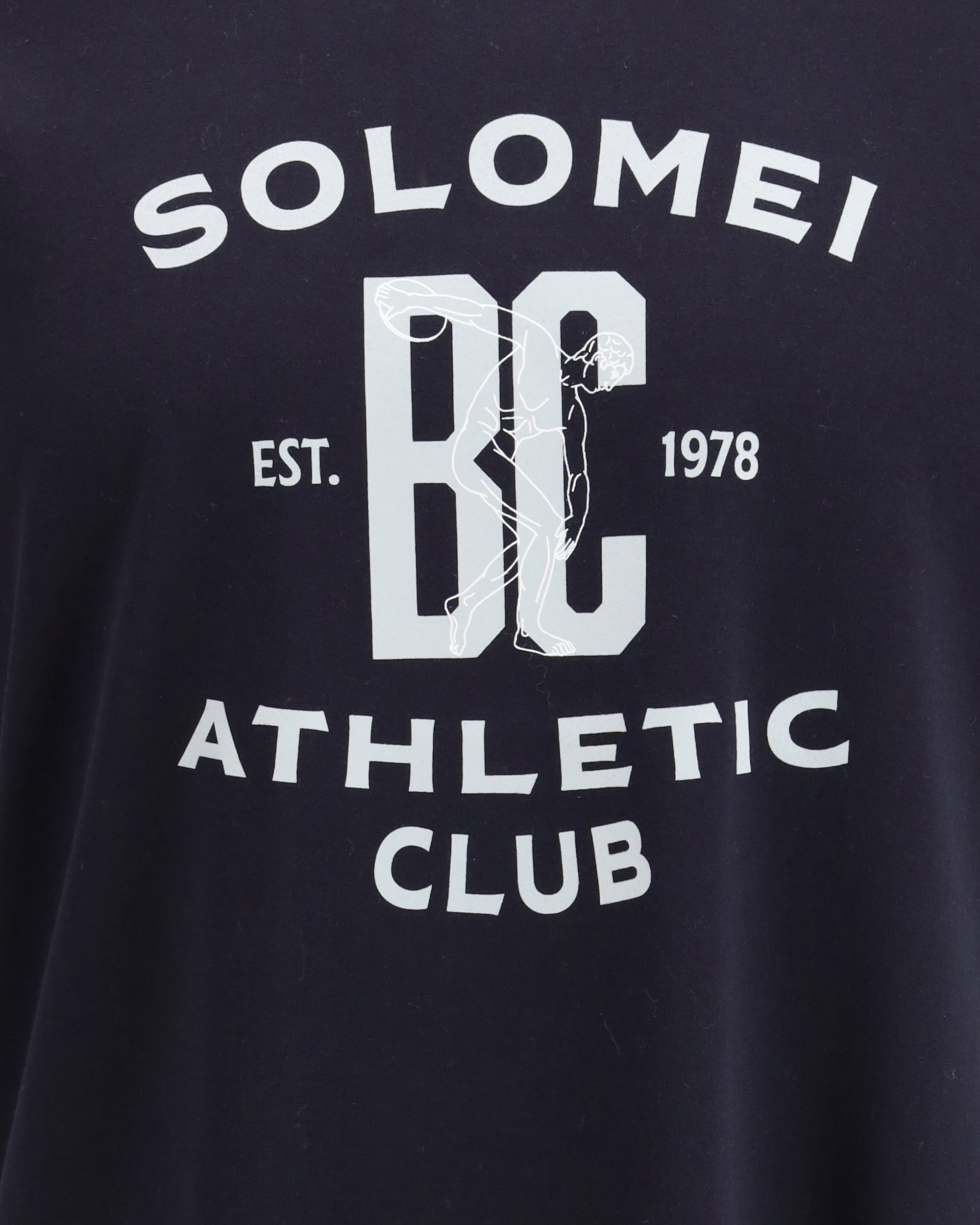 The cotton jersey T-shirt by Brunello Cucinelli balances comfort and understated style with refined ease. The “Solomei Athletic Club” print on the front celebrates the fusion of artisanal elegance and athletic spirit, hallmarks of the Maison. A ribbed crew neck and short sleeves with stitched hems create a clean silhouette, while small side slits offer ease of movement. A piece that embodies relaxed sophistication and timeless versatility.