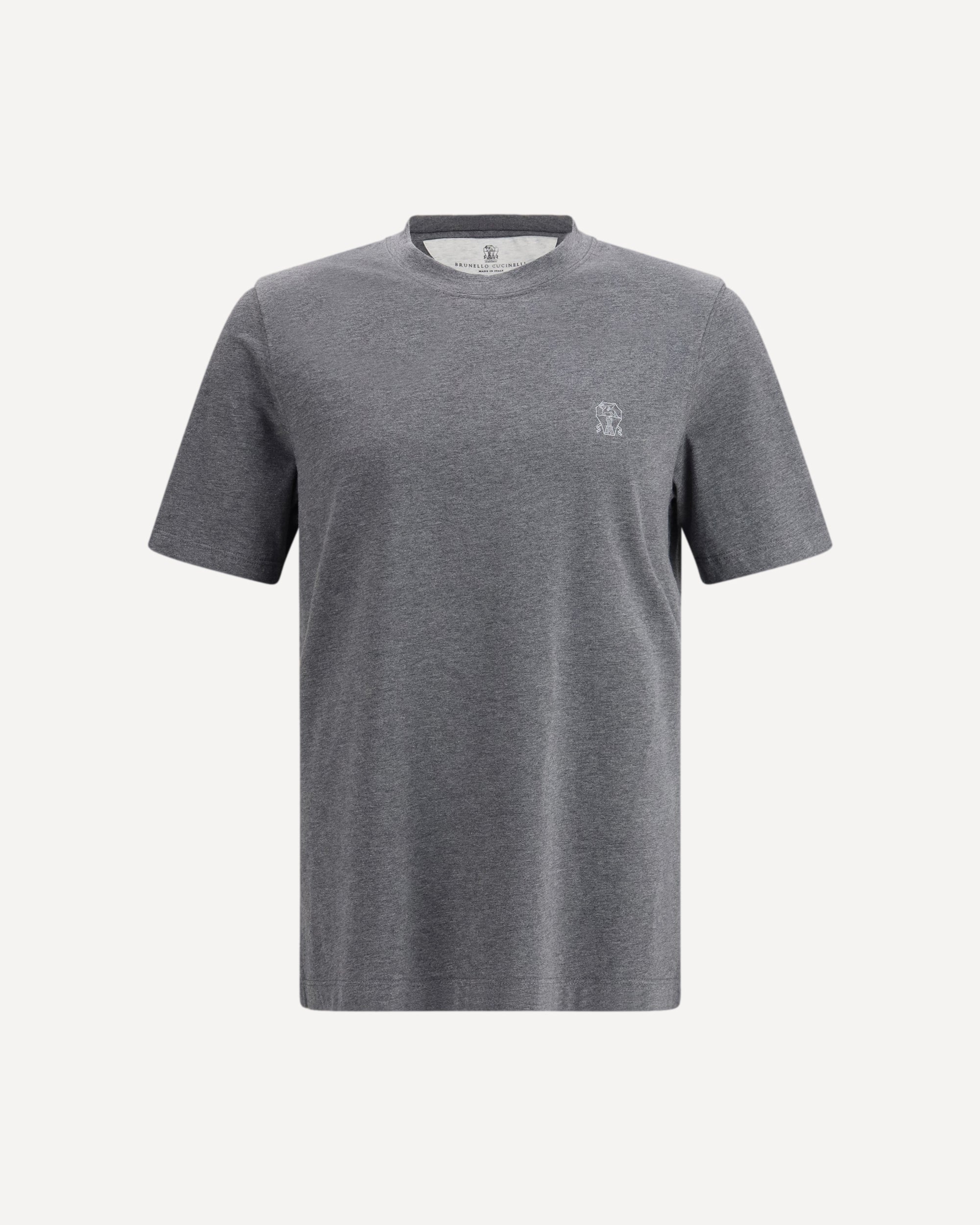 The Brunello Cucinelli cotton T-Shirt you describe is an elegant and simple yet refined garment, perfect for those seeking comfort and style. The monochrome design suggests a clean and versatile look, suitable for various combinations. The contrasting logo on the front, typical of the brand, adds a distinctive touch without being too obtrusive, maintaining elegance. The regular fit ensures a good fit, making it ideal for different body types.