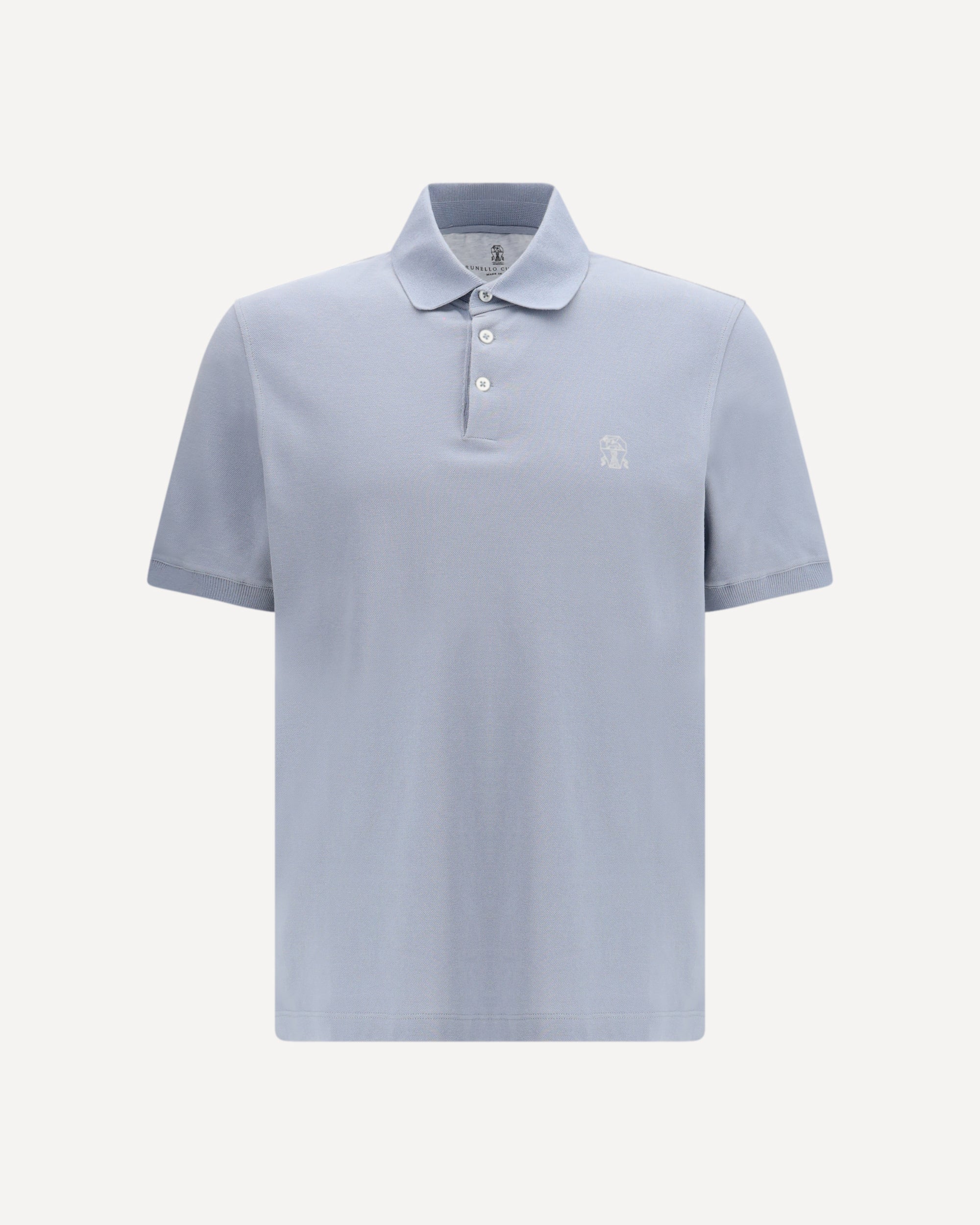 The cotton polo Shirt by Brunello Cucinelli embodies refined simplicity, featuring a ribbed classic collar and front buttons. The contrasting signature logo adds a distinctive touch, while the ribbed sleeves with contrasting trim enhance the clean, monochrome design. The regular fit completes a versatile and polished piece.