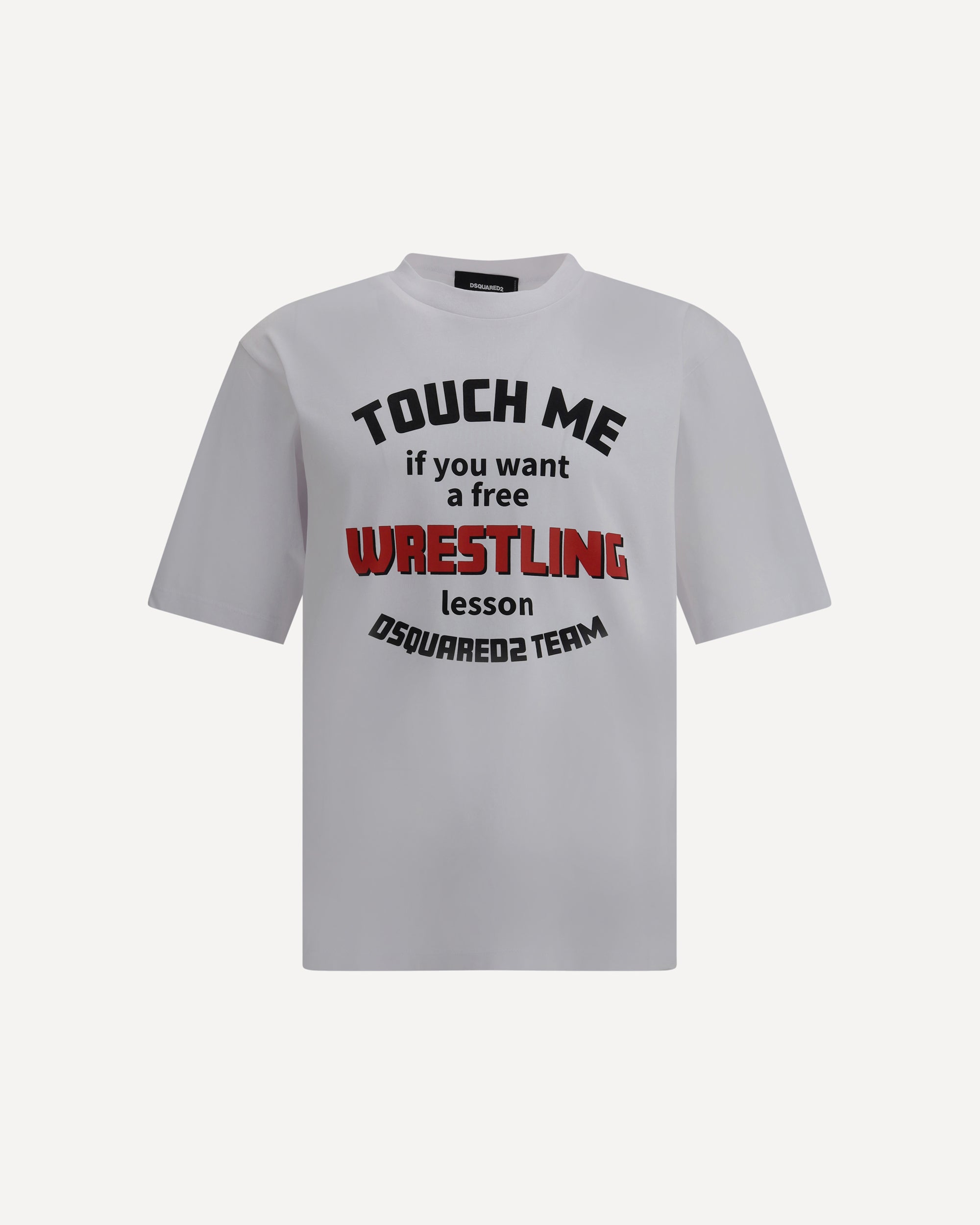 The Dsquared2 cotton T-Shirt is a modern piece with a strong character. The ribbed crew neck offers a comfortable and refined fit, while the front features a maxi writing that captures attention, accompanied by the iconic monogram of the brand, which adds a touch of recognisability and style.