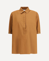 Cotton Teano Blouse by Max Mara features a sophisticated and modern design. Featuring short balloon sleeves, a classic collar and a half-bust closure with concealed buttons. The two side slits and oversized fit give the garment an elegant and casual look, perfect for any occasion.