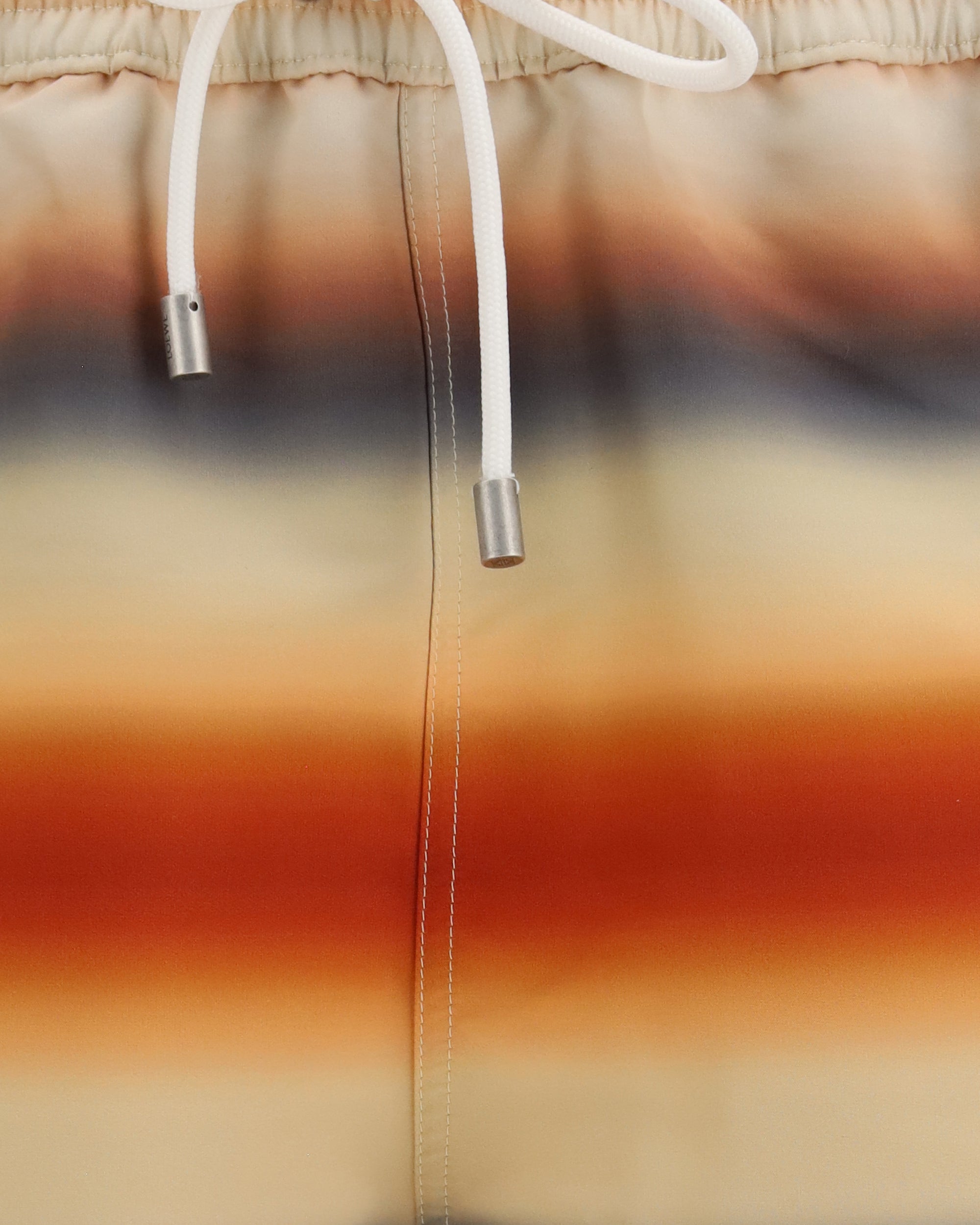 The technical swim Shorts by Loewe x Paula’s Ibiza stand out for their fresh and contemporary design, perfect for refined beachwear styling. Crafted from lightweight technical fabric, they feature an elegant striped print that adds a dynamic and modern aesthetic to the piece. The regular fit and short length ensure comfort and freedom of movement, while the elasticated drawstring waistband provides a practical and adjustable fit. The design is completed by a back flap pocket with velcro closure and functional eyelets, enhanced by an applied Anagram snap button that signs the piece with the Maison’s iconic detail. The technical mesh lining completes the style, ensuring comfort and practicality during wear.