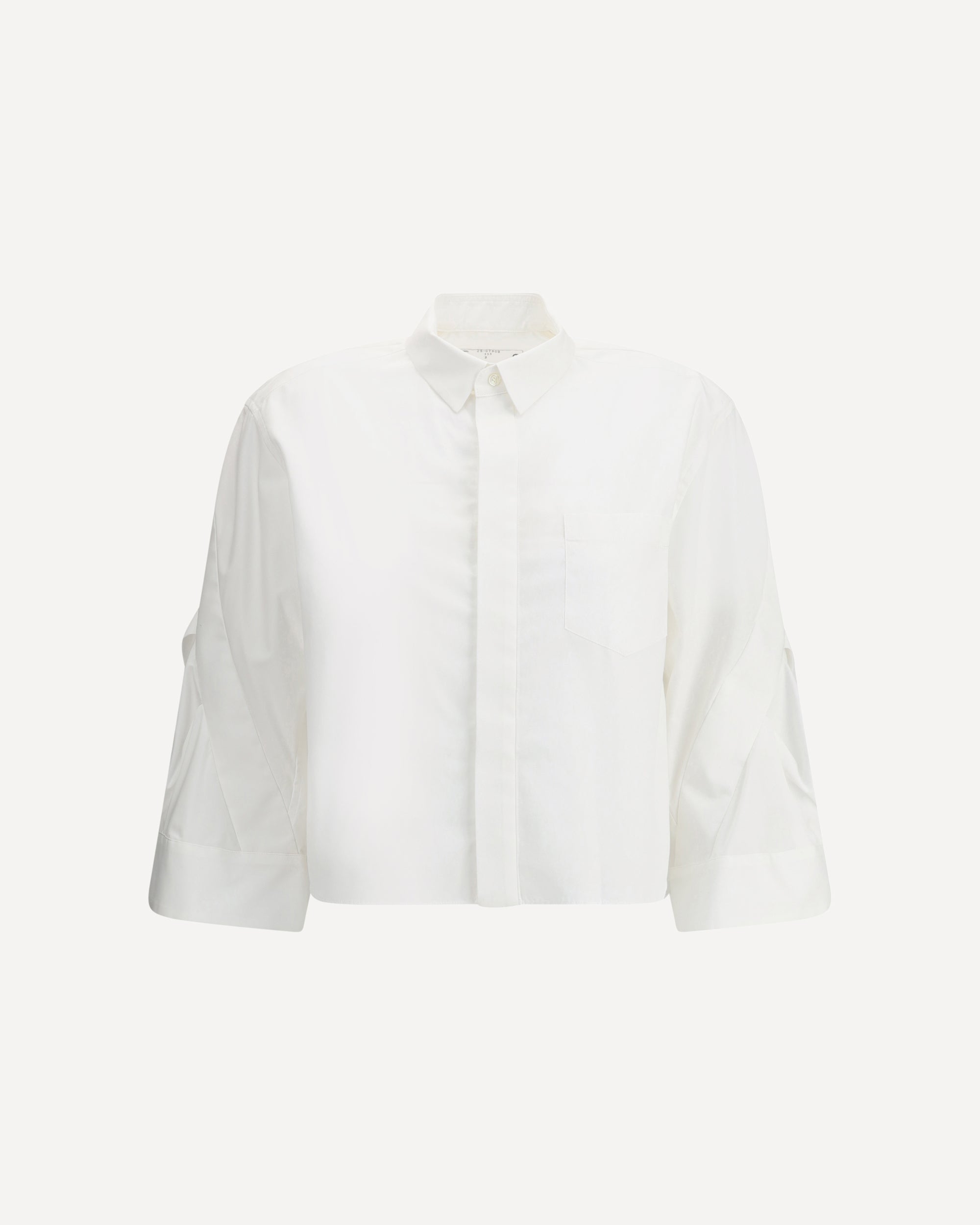 Cotton shirt by Sacai has an original and contemporary design. Featuring three-quarter sleeves with wide cuffs, classic collar and front button closure. An applied welt breast pocket completes the look. The loose fit ensures comfort and casual elegance.