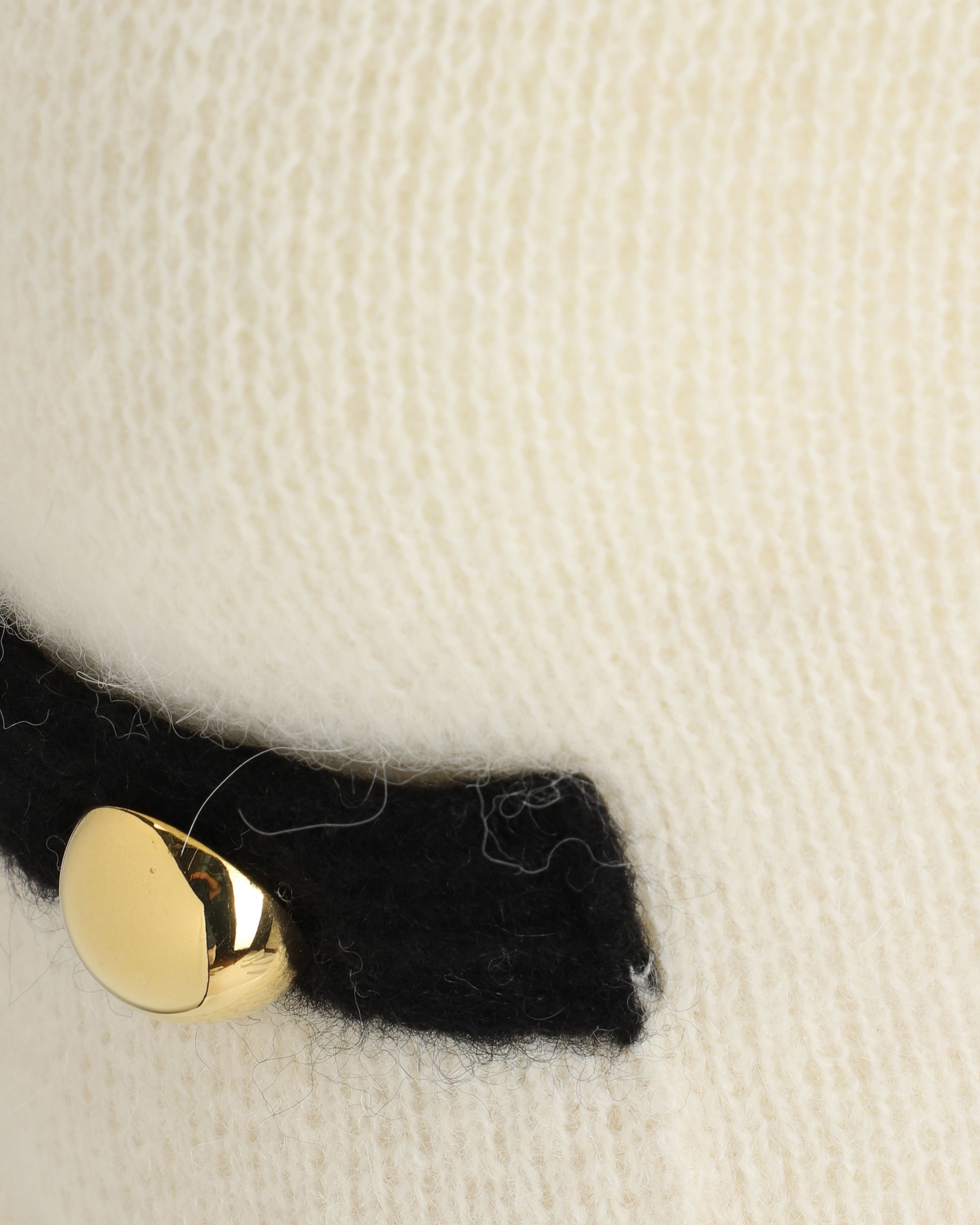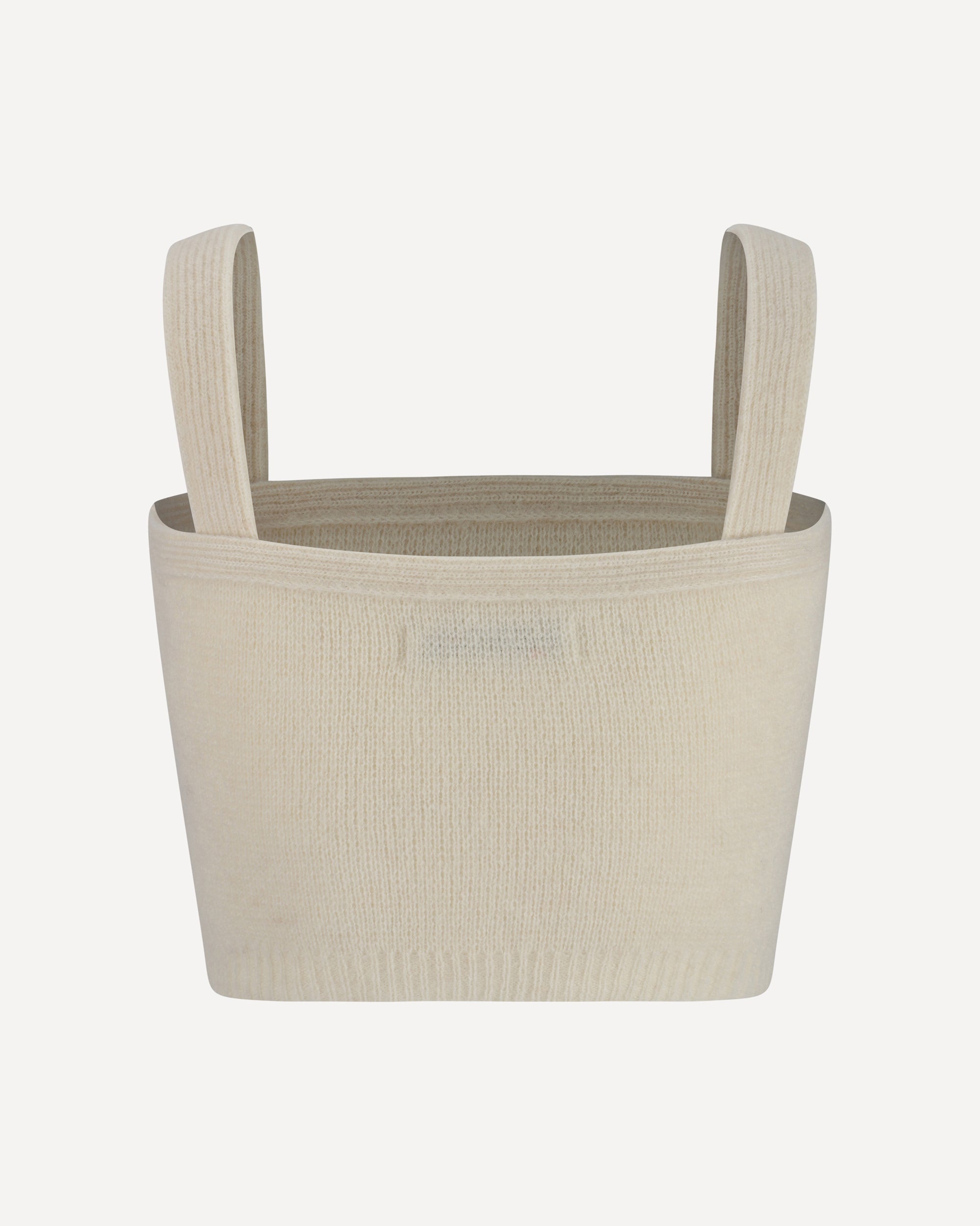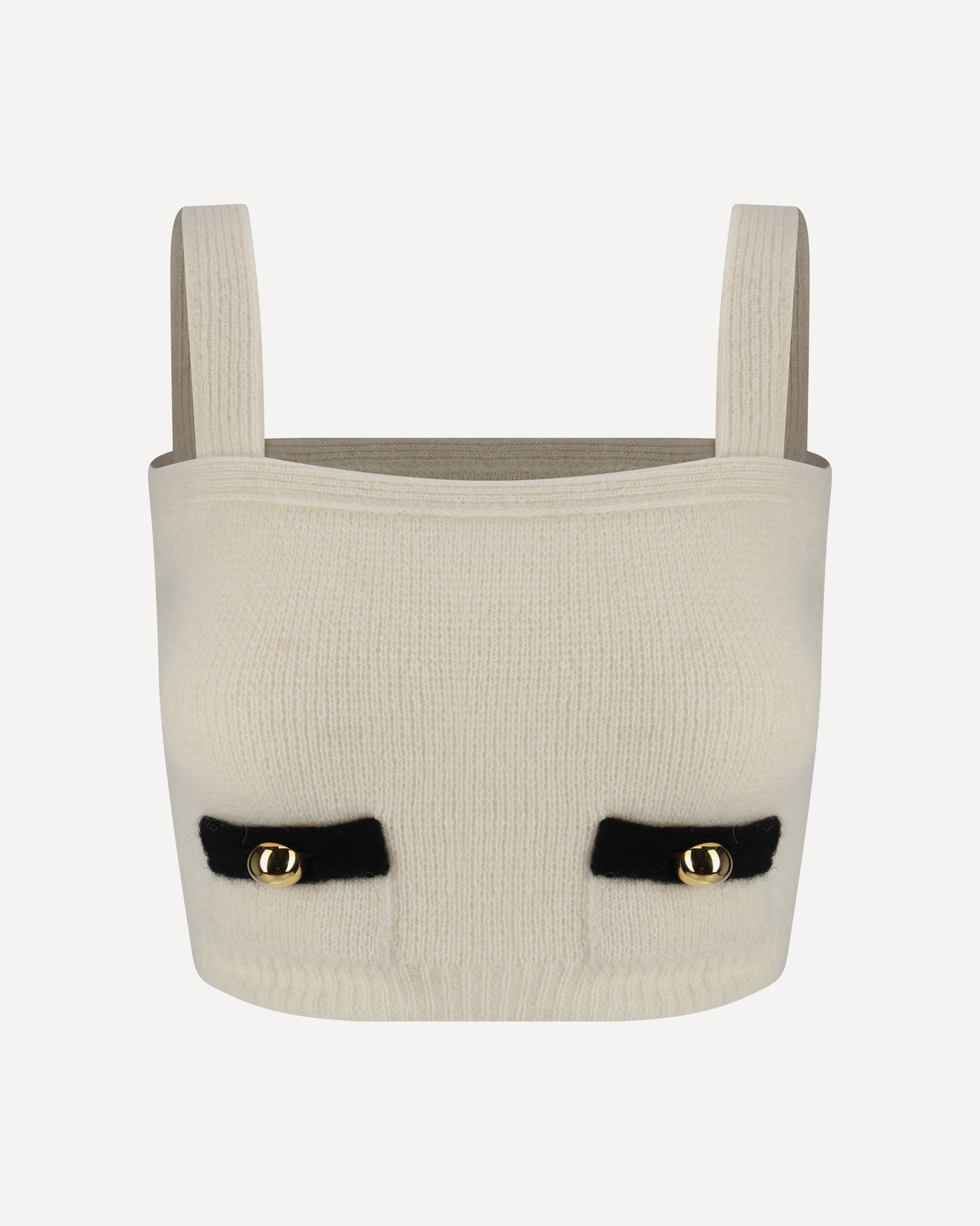Alpaca Wool Top by Alessandra Rich, cropped sleeveless design, geometric neckline, two welt patch pockets on front with contrasting detail, ribbed hem, monochrome pattern, regular fit.