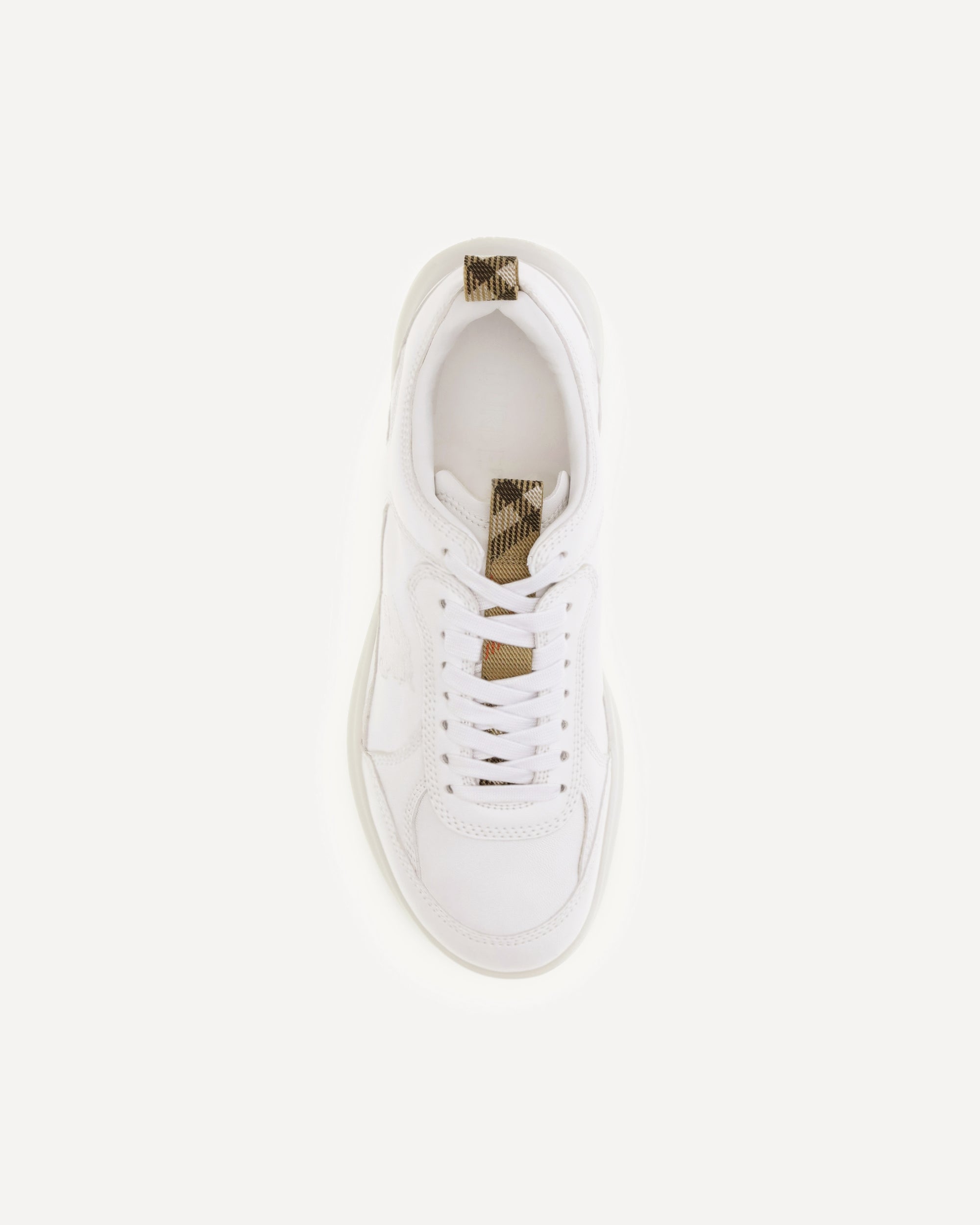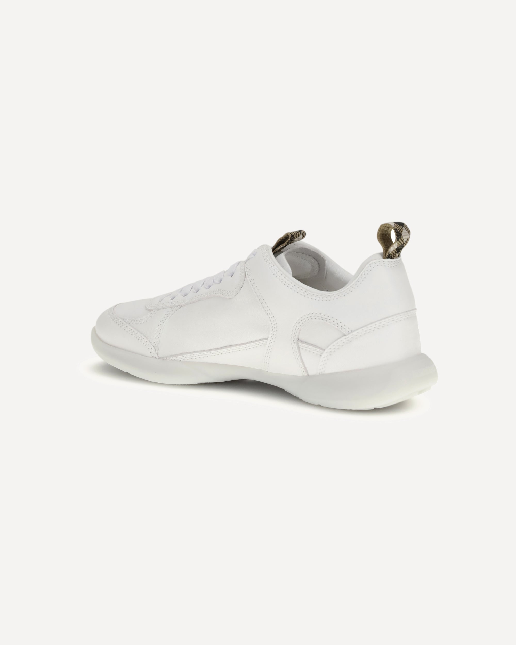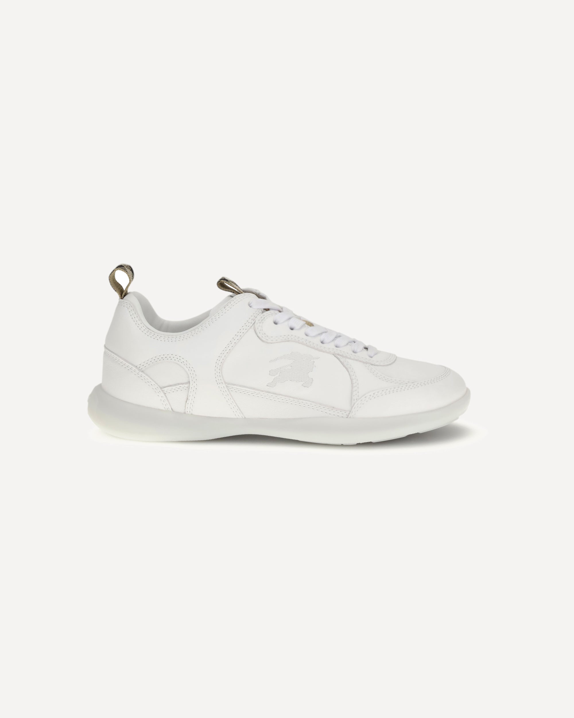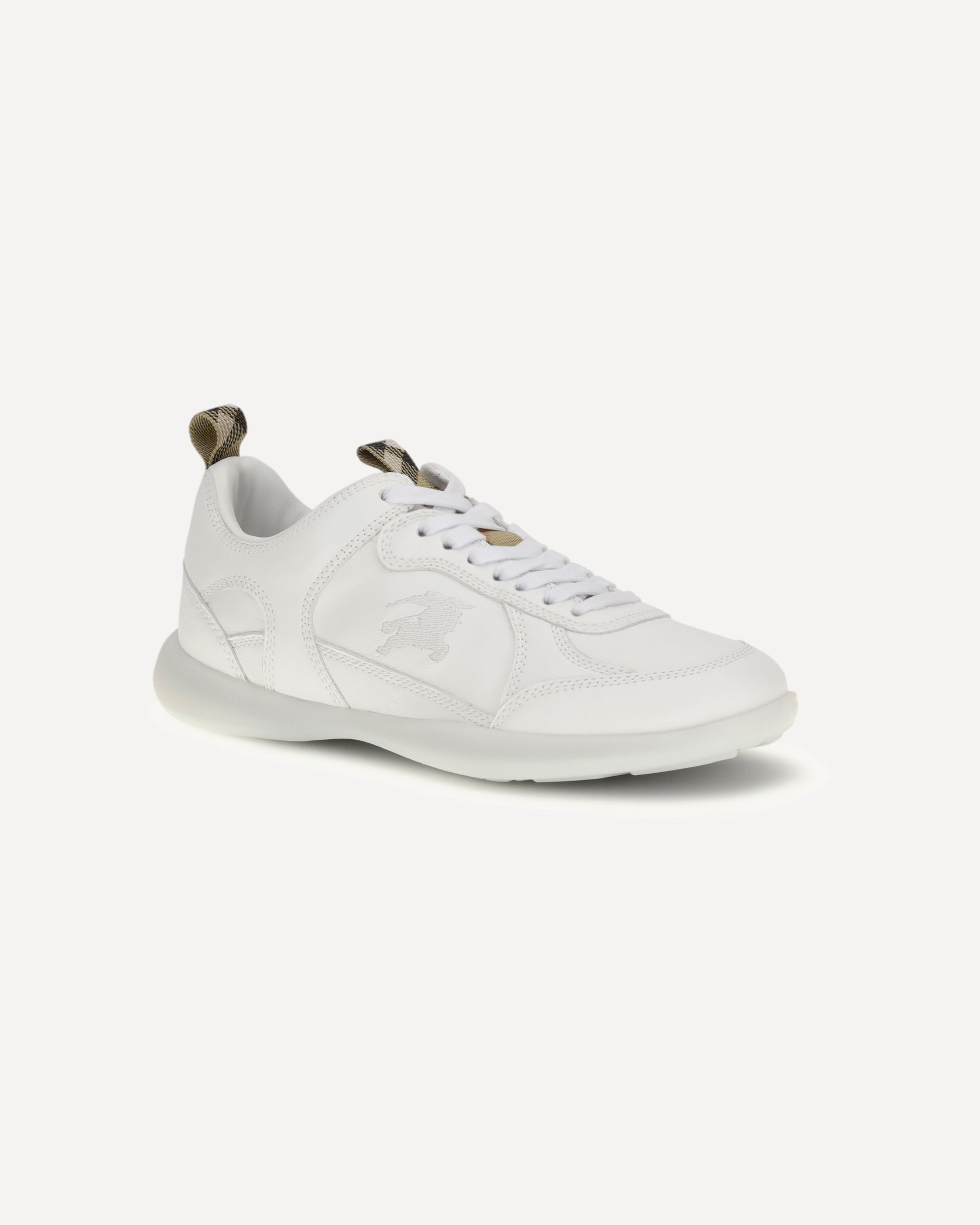 The Matrix Sneakers by Burberry combine the sartorial elegance of the British fashion house with the sporty soul of contemporary footwear, crafted in fine leather with tone-on-tone stitching that echoes the dynamic lines of the athletic world, they feature a lightweight sole that ensures comfort and flexibility in every stride and are distinguished by tabs in iconic Burberry Check that lend a distinctive touch to the refined design, while the Equestrian Knight Design embroidered on the side and echoed on the sole celebrates the brand's heritage and unmistakable style in a perfect balance of tradition and modernity.