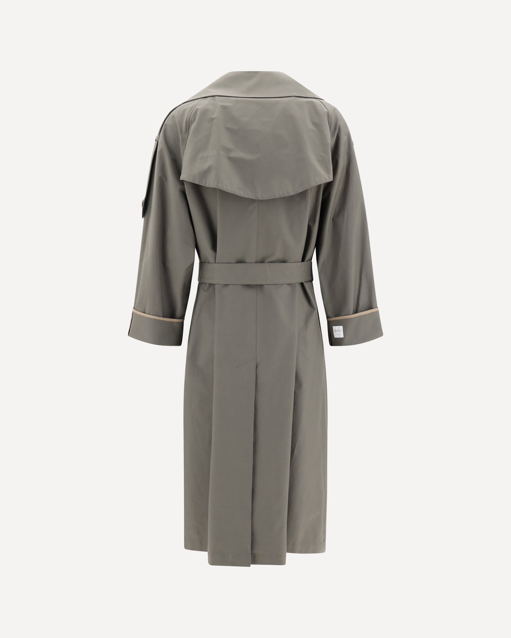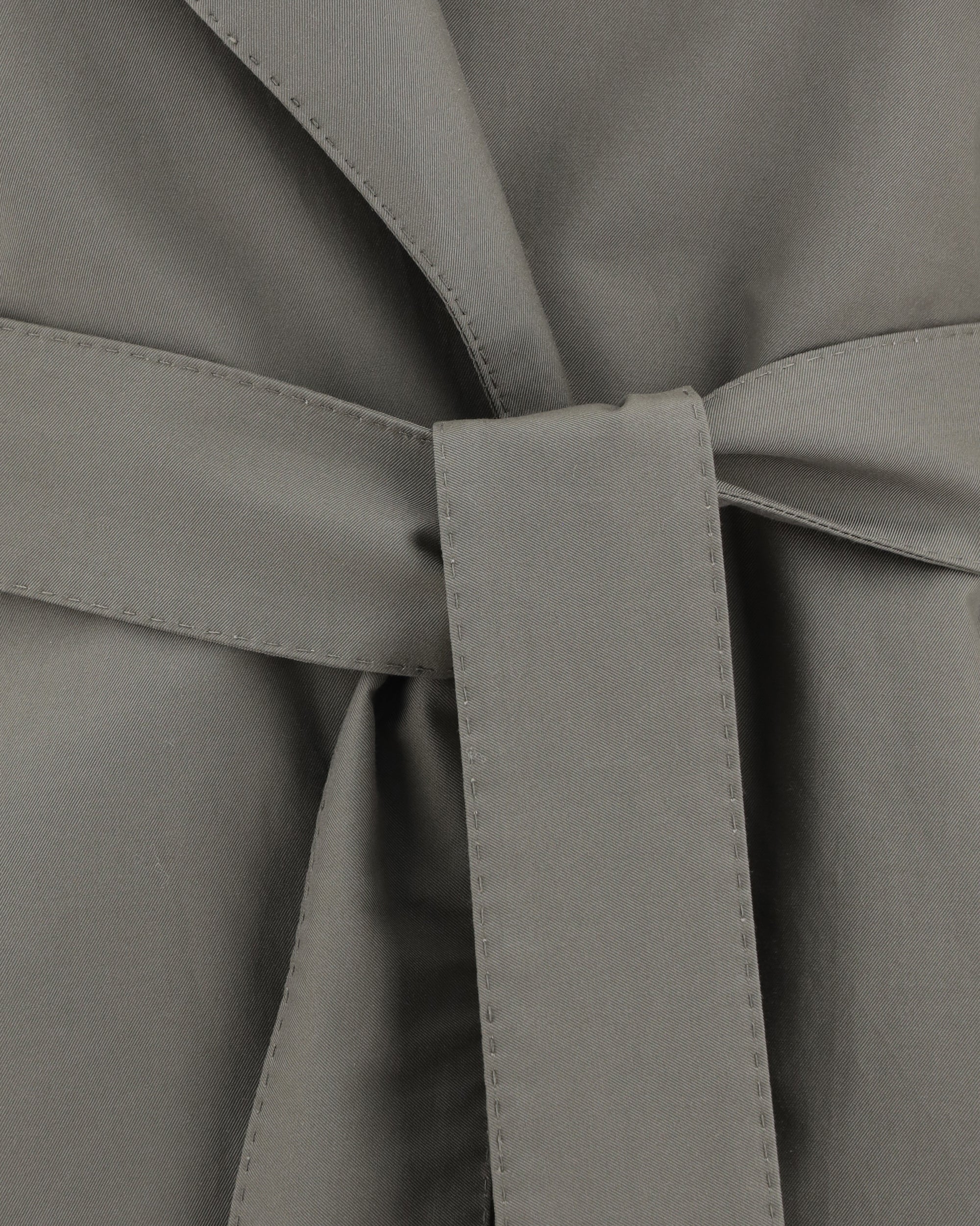 Max Mara's The Cube long Utrench Trench by Max Mara is an elegant and versatile garment perfect for adding a touch of class to any look. The wide lapels and welt side flap pockets lend a sophisticated and functional design, while matching zippered waist belt loops allow you to customize the fit, creating a defined silhouette. The knotted, removable belt adds versatility, while the back slit provides greater freedom of movement and an accent of dynamism to the garment.