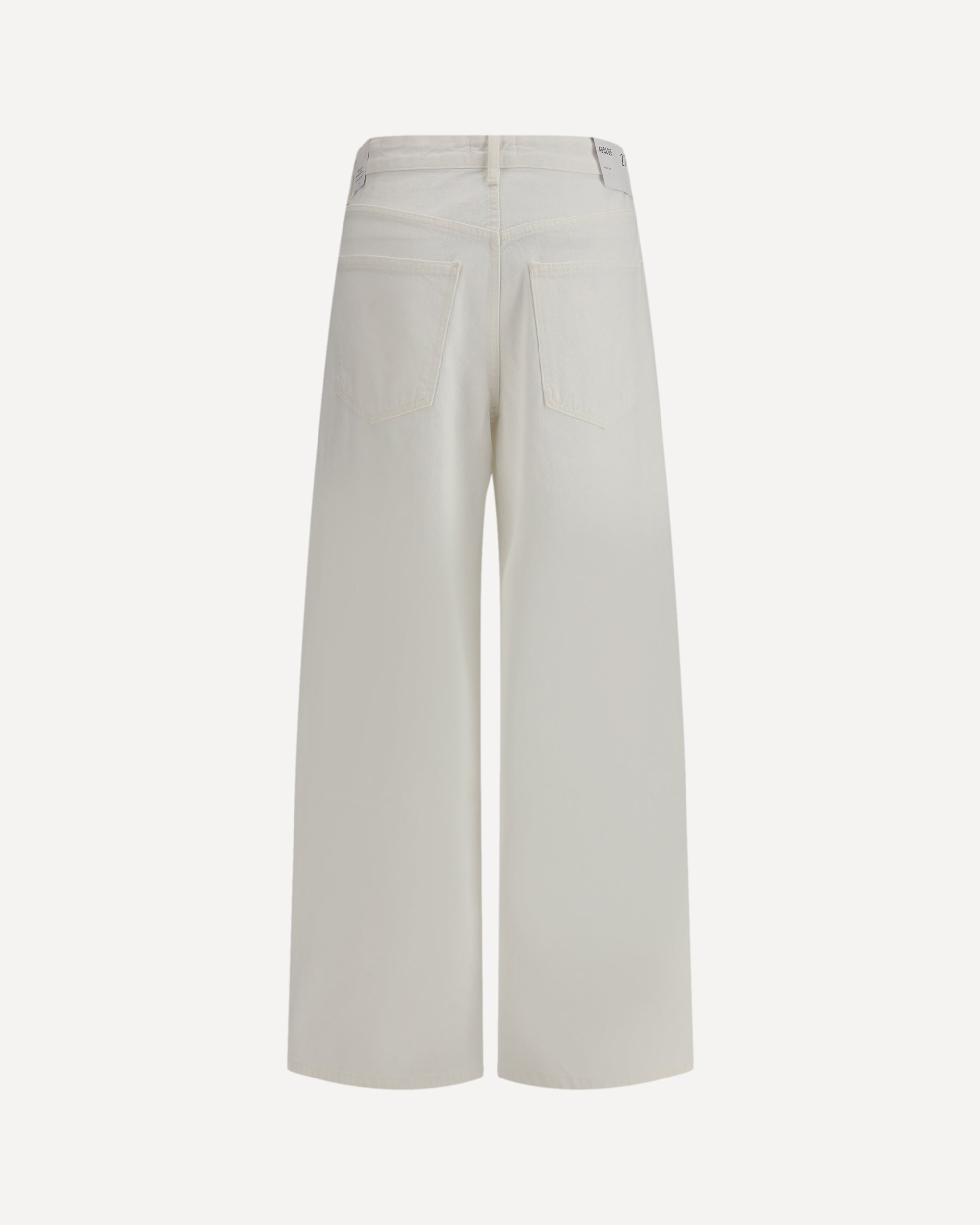 The Vana Fold Jeans by Agolde, crafted from white regenerative cotton denim that blends style with sustainability. The signature “fold” closure, low-slung rise, and full, roomy leg define its effortlessly oversized silhouette. Clean and modern, this piece pairs easily with a graphic tee and sneakers or a breezy button-up and slides for a relaxed, sunny-day look.