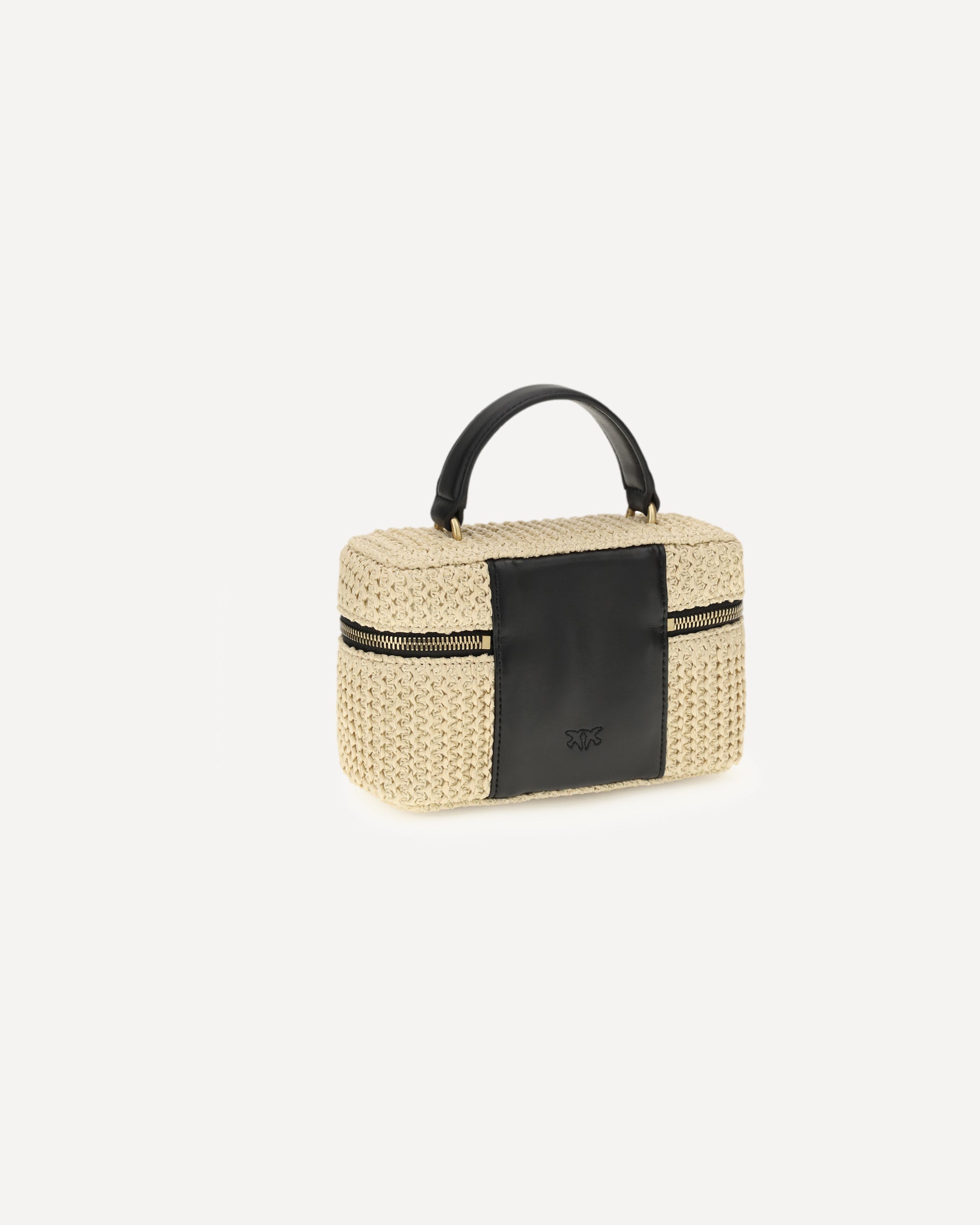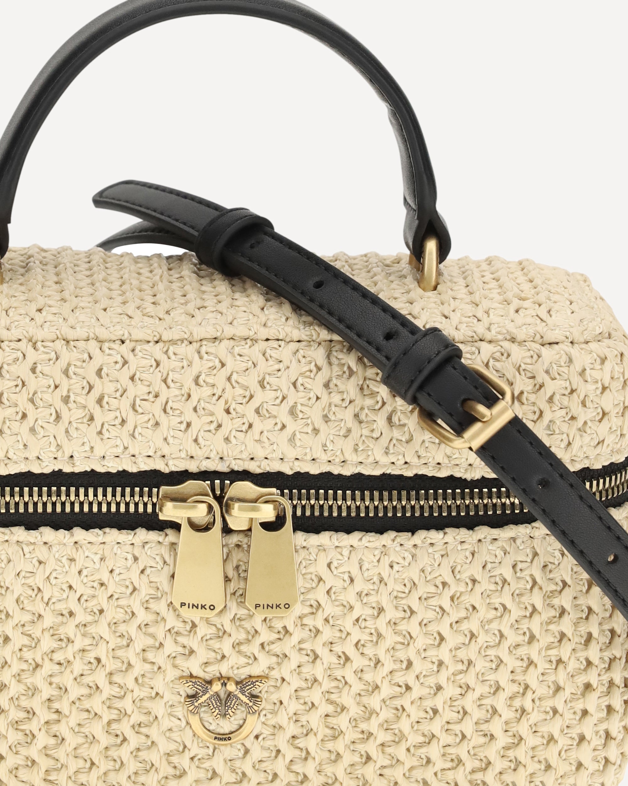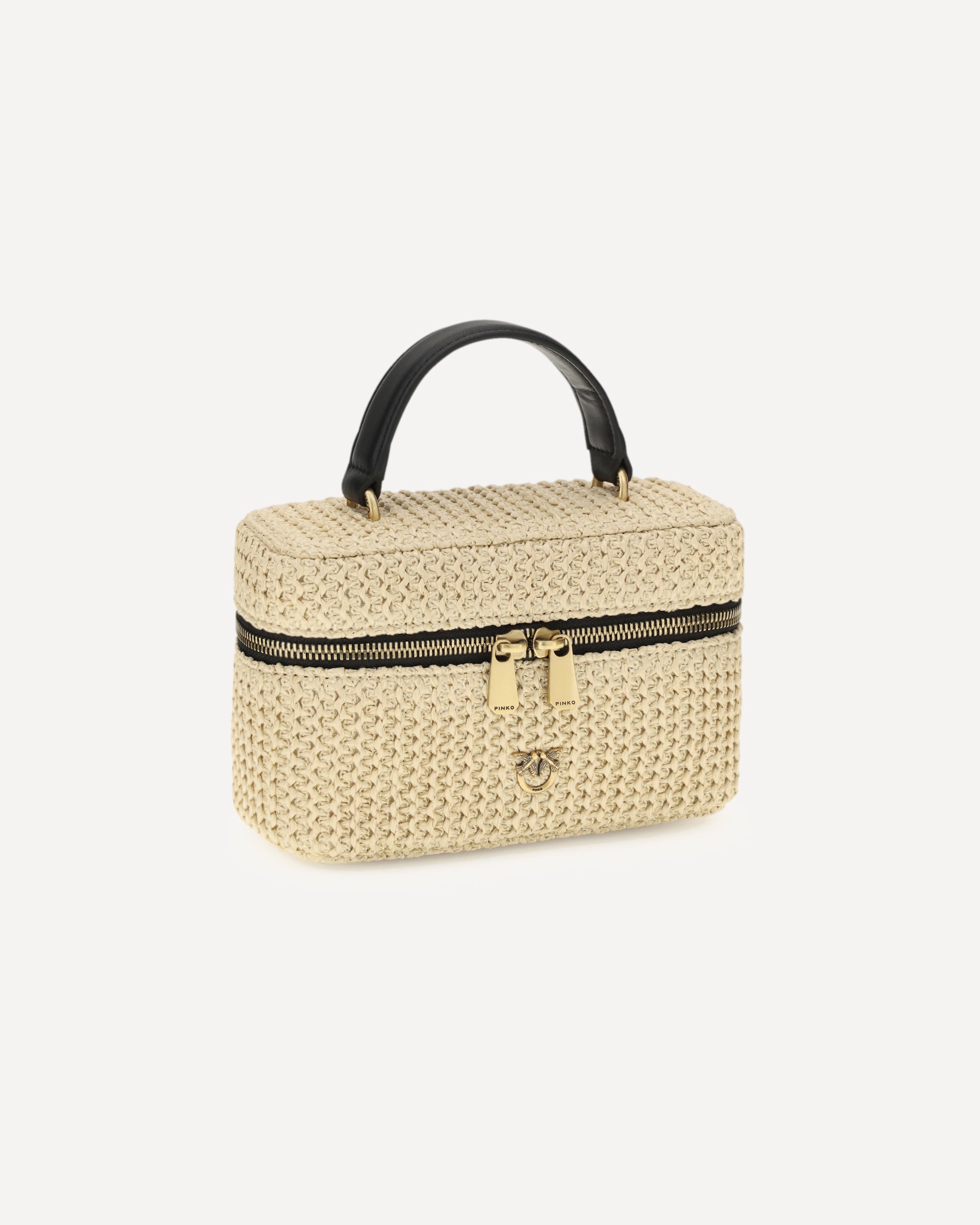 The Vanity Handbag by Pinko is an elegant and versatile accessory. With a leather handle and double zipper closure, it features the Love Birds logo on the front. It comes with an adjustable and removable leather shoulder strap to suit any style need.
