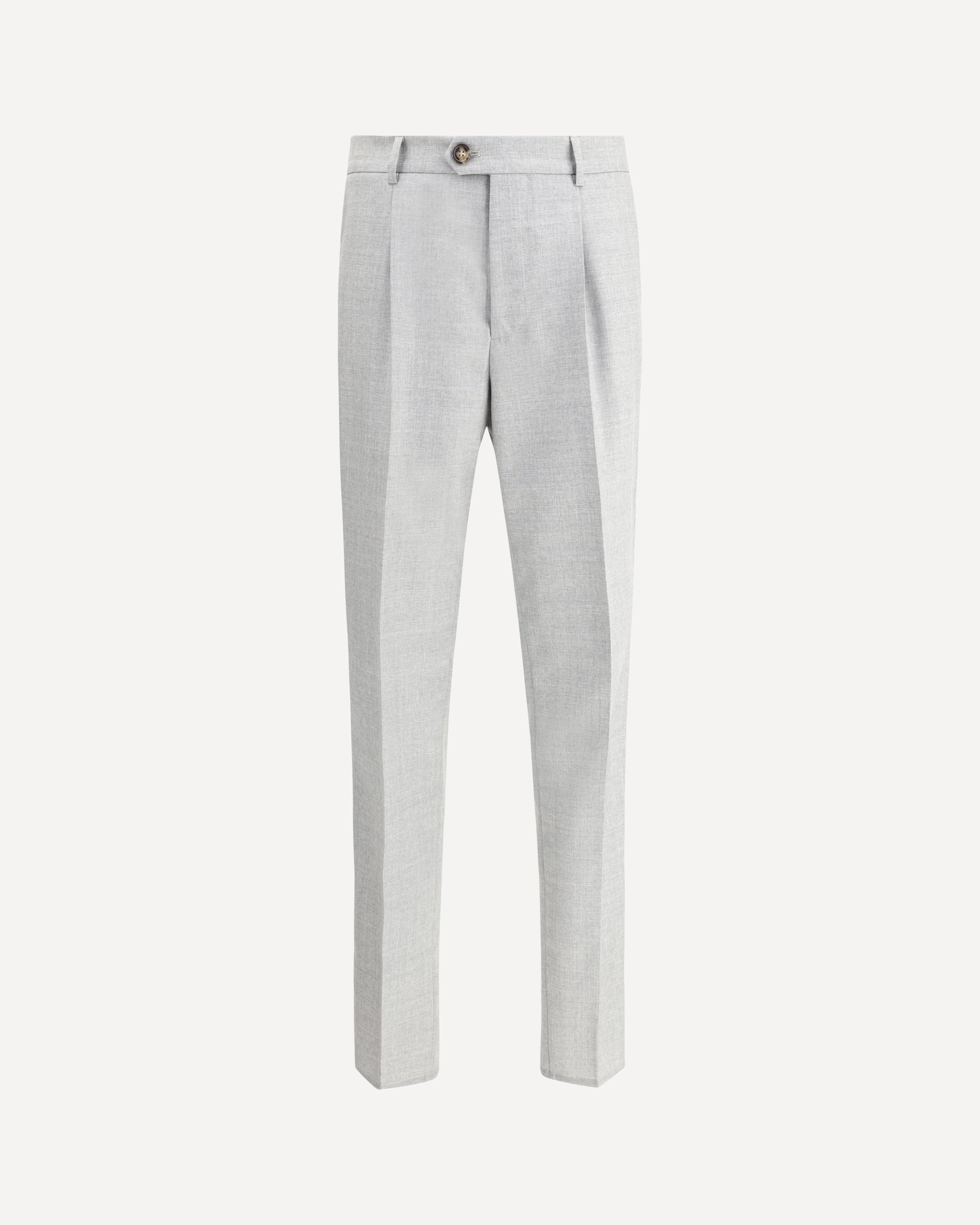 Brunello Cucinelli's virgin wool Pants feature a button-and-zip front closure for a secure and sophisticated fit. The two side slash pockets and back welt pockets offer practicality without sacrificing style. The waistband has belt loops, allowing you to customize the fit.