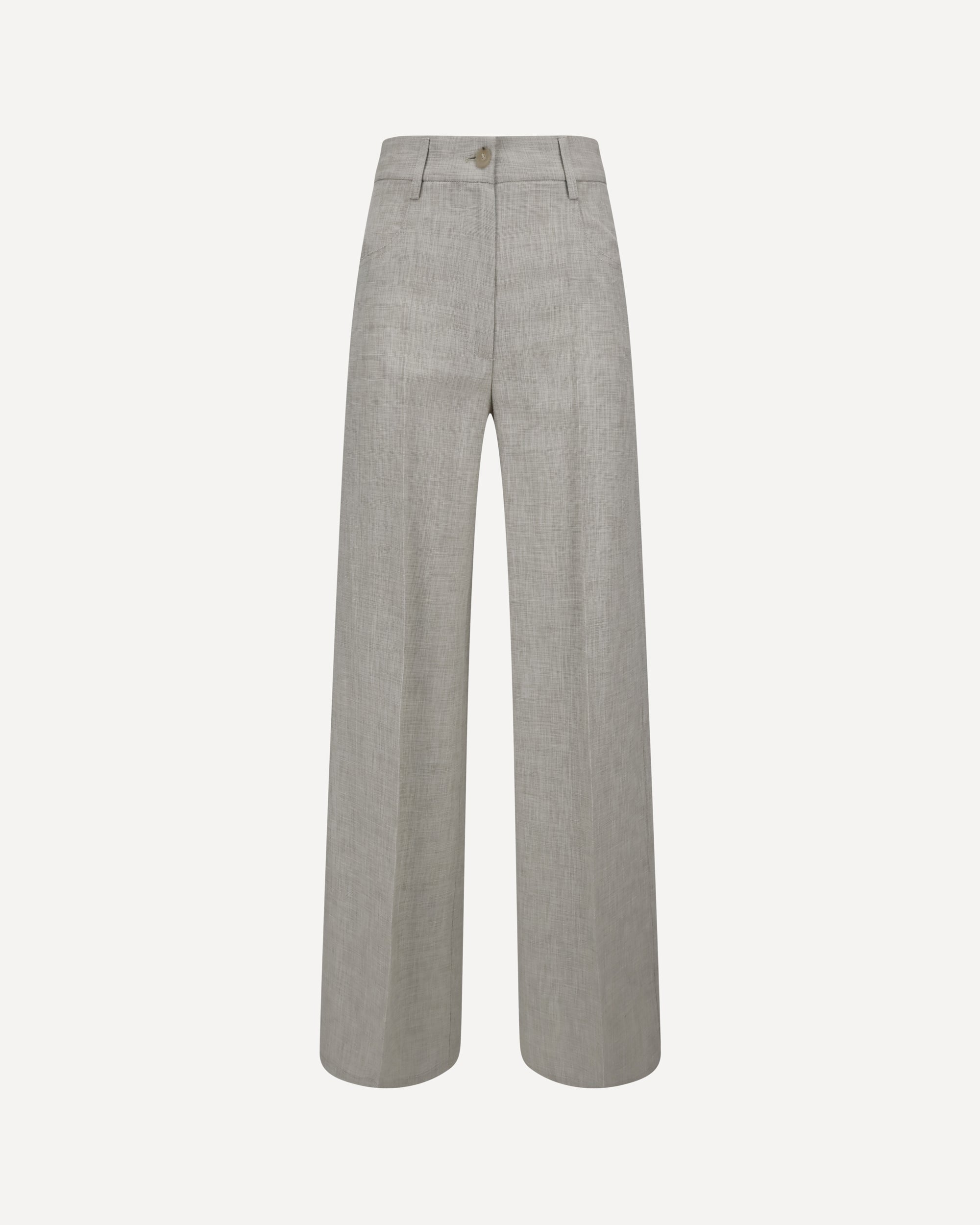 Forte_Forte's Fil à fil Pants combine casual elegance and quality craftsmanship in a garment with refined construction. Made from a fine fil à fil fabric of viscose and linen, they feature a light, breathable texture perfect for warm weather. The high waist and soft fit enhance the silhouette without constriction, while the front zipper-and-button closure ensures a precise fit. Two side welt pockets, two back patch pockets and belt loops complete the design for an ideal balance of functionality and style.