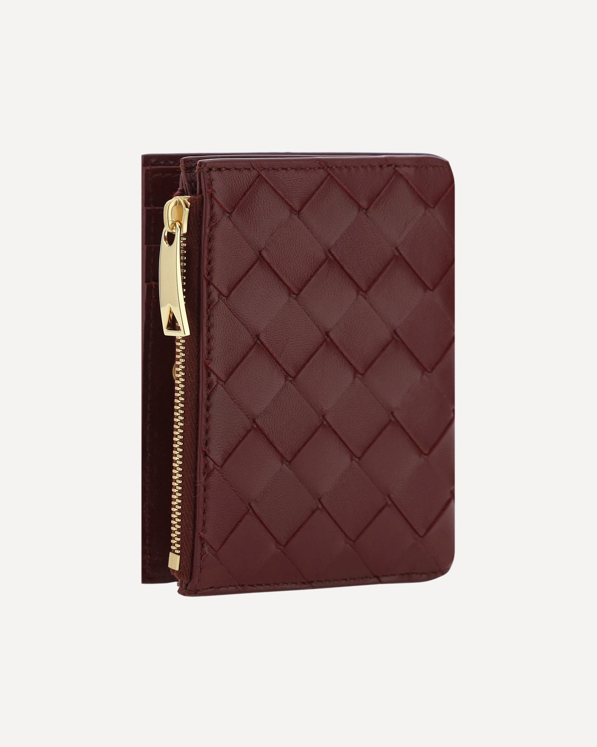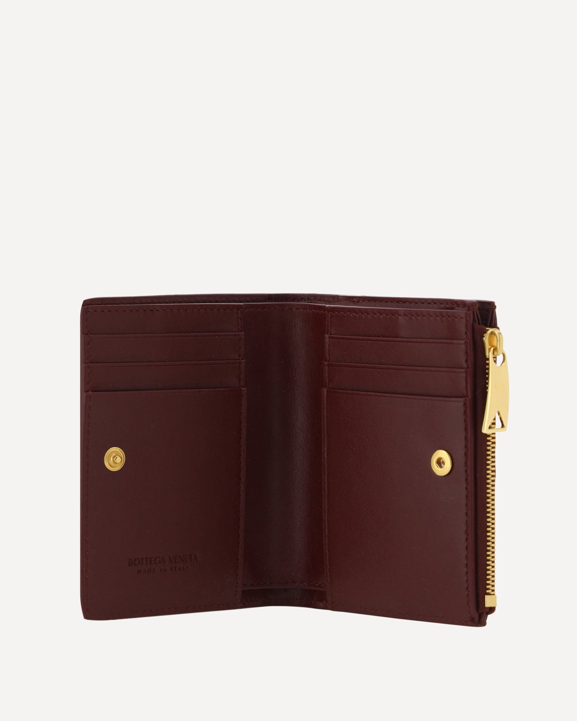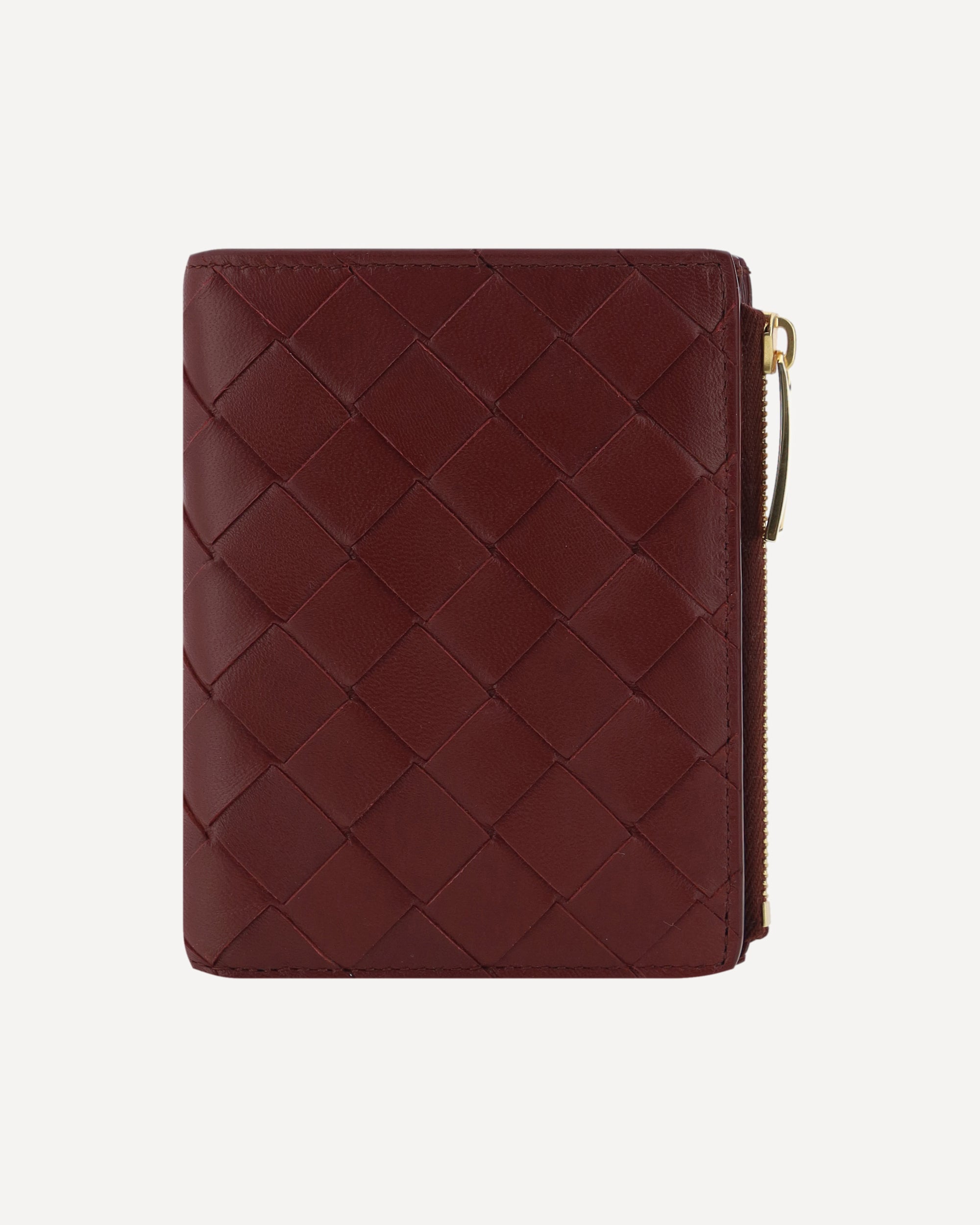 The lambskin Wallet by Bottega Veneta combines elegance and functionality with its iconic all-over intrecciato motif. Featuring a double card slot, a bill compartment and a zipped coin pocket, it features a snap button closure and the brand's monogram printed inside. A compact and sophisticated accessory, perfect for those seeking style and practicality.