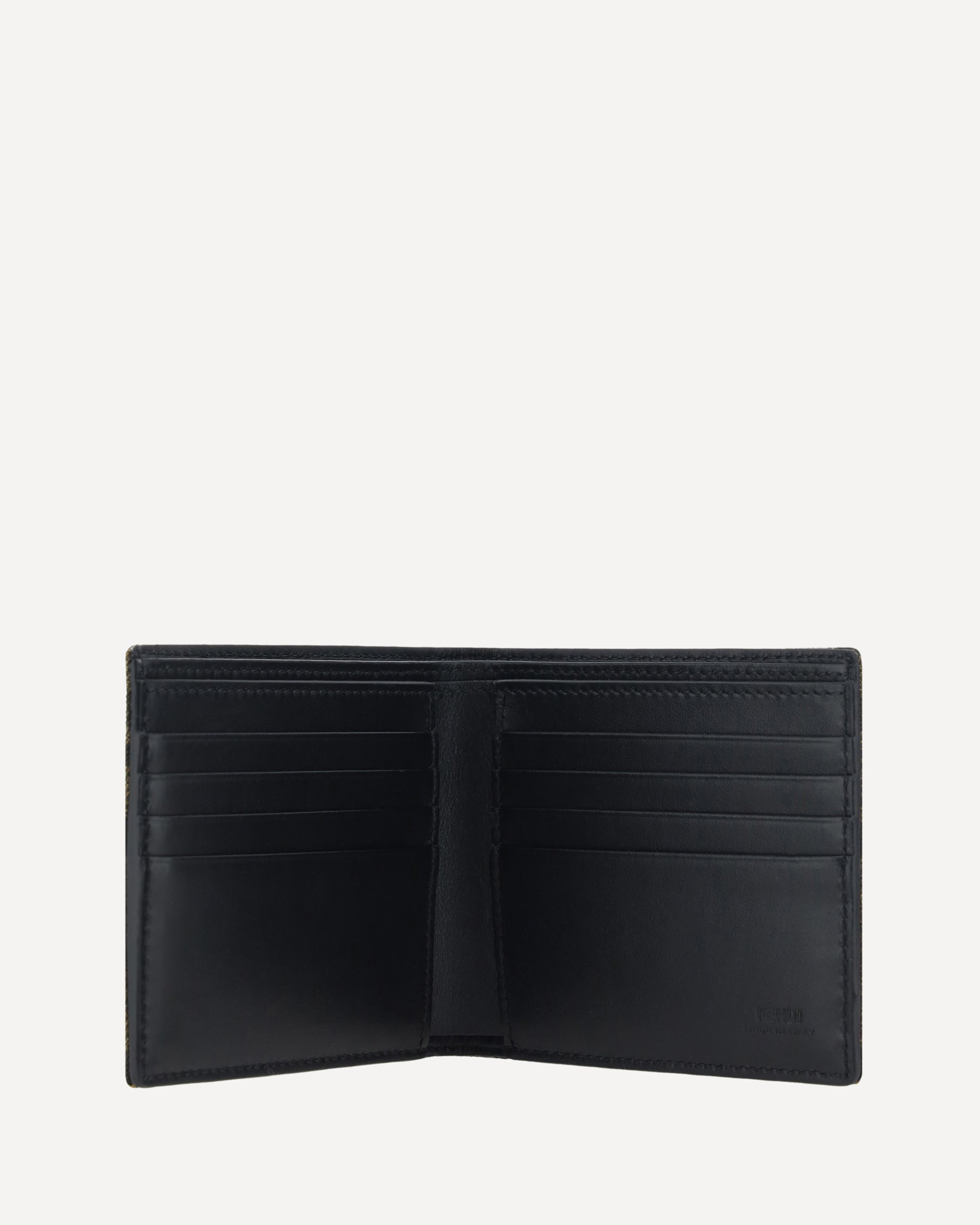The Fendi Leather Wallet is an elegant and functional accessory. It features a double internal card slot for convenient organization, a compartment for banknotes and a design characterized by the iconic brand logo repeated all-over, which enhances its distinctive style. The iconic brand monogram applied on the front adds a touch of luxury and recognizability. Perfect for those looking for a compact but practical wallet, which combines functionality and the sophisticated style of Fendi.
