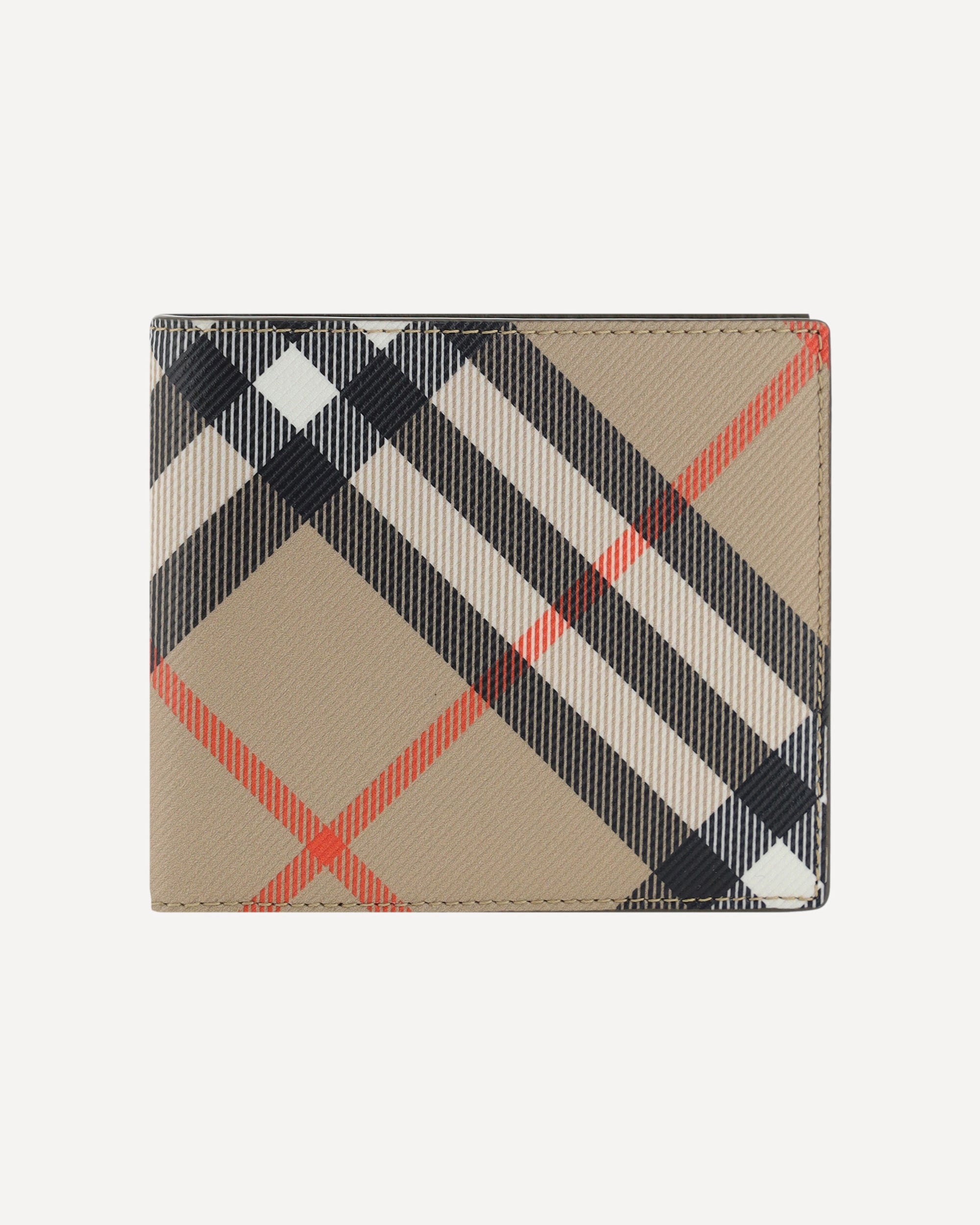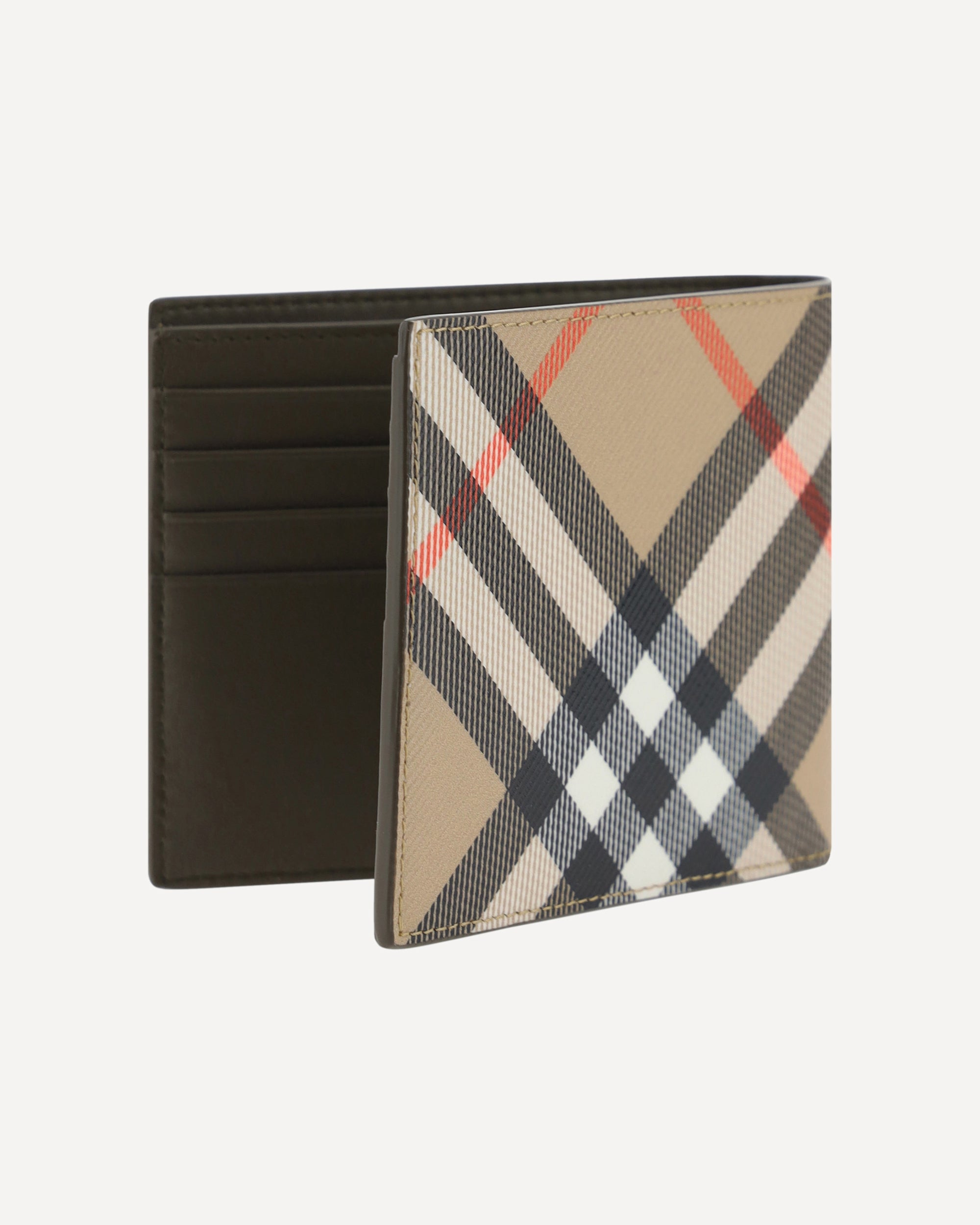 Wallet by Burberry, interior card slot, bill compartment, iconic Check pattern of the brand.